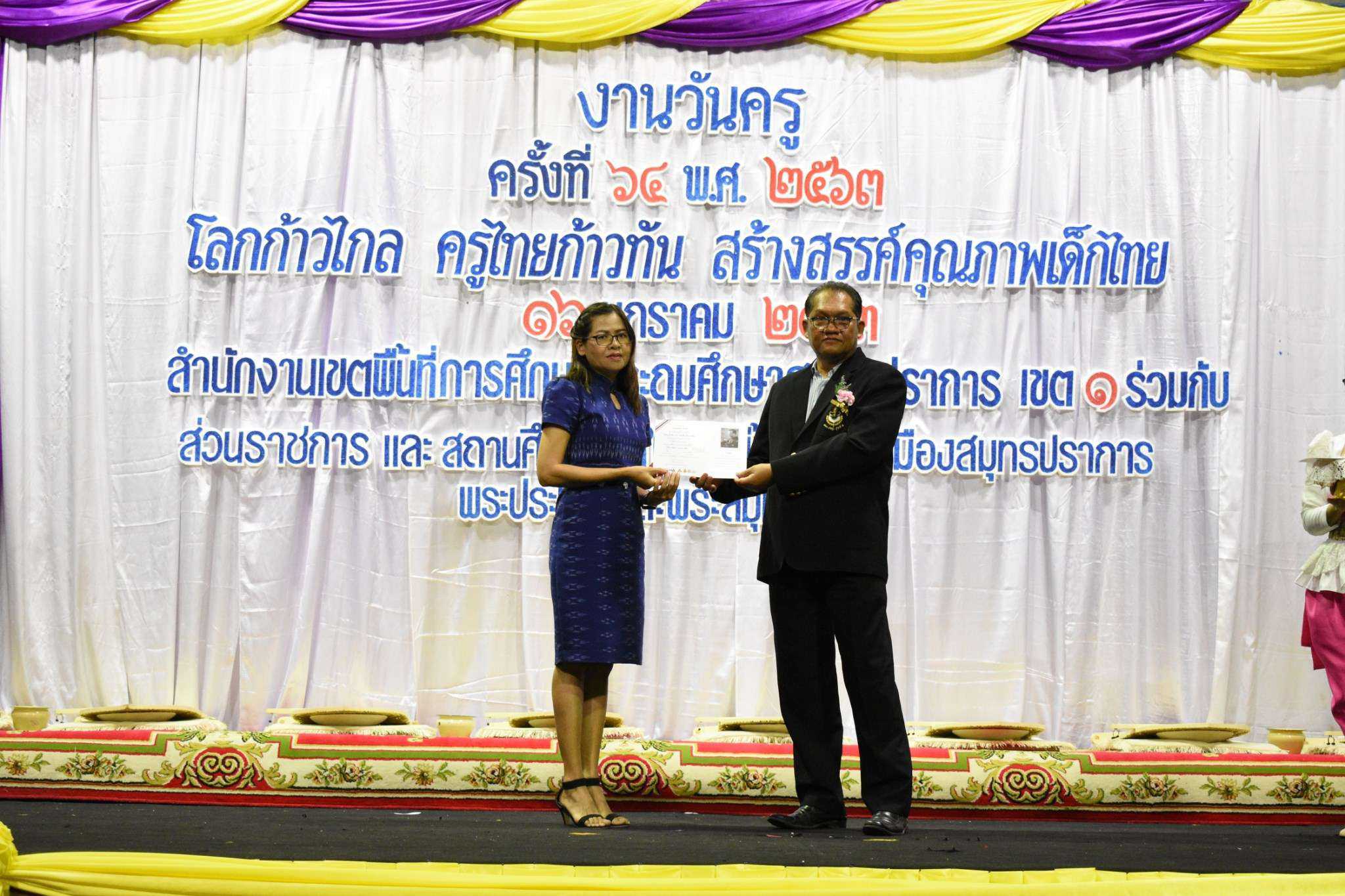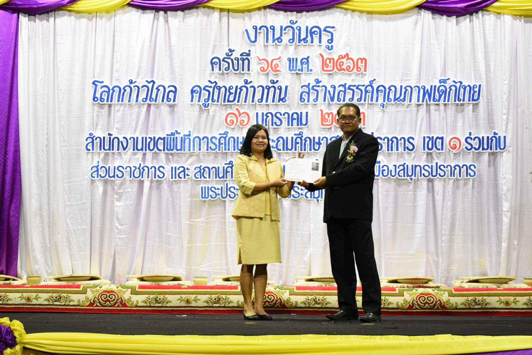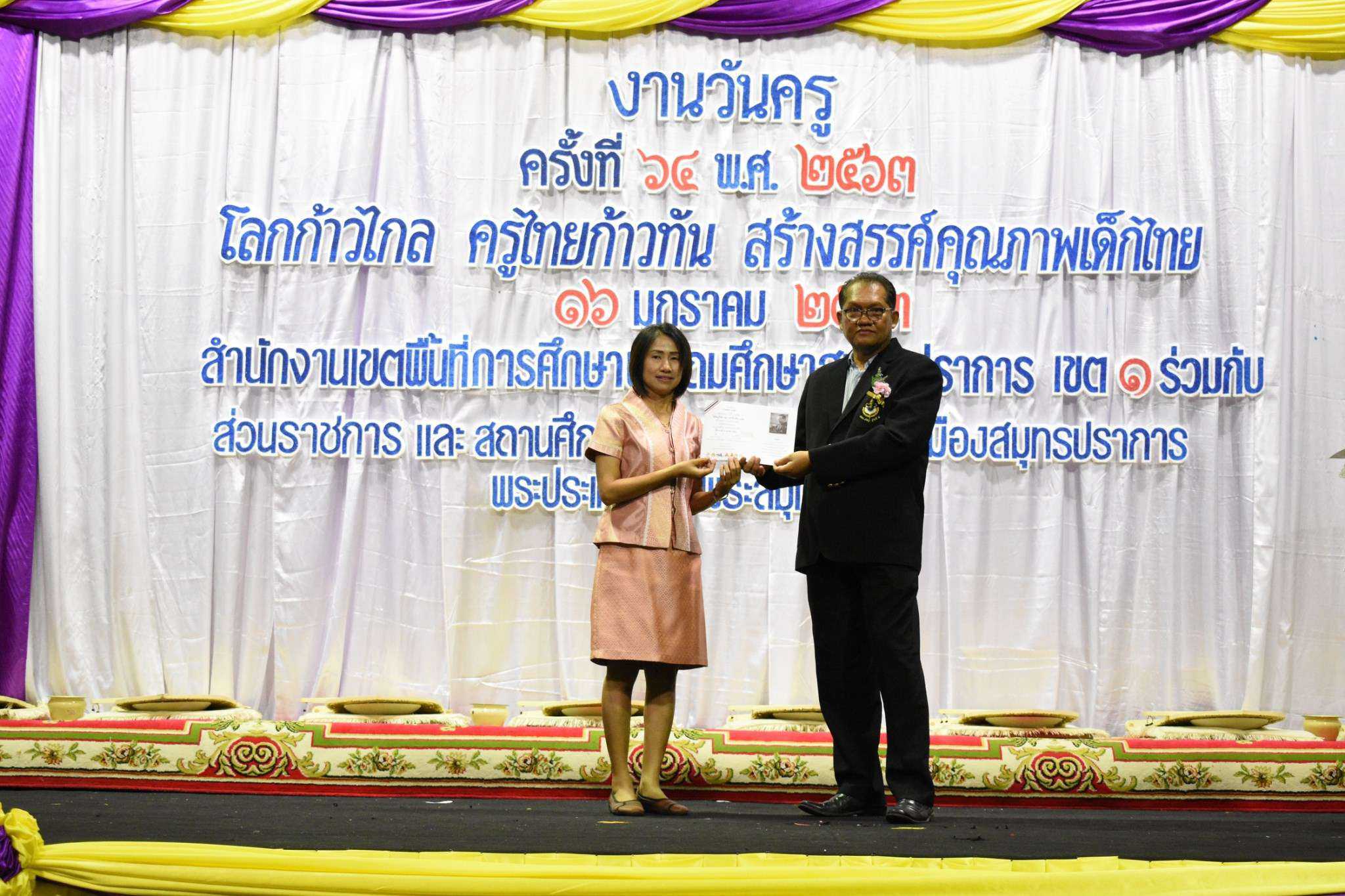 วันพฤหัสบดีที่ 16 มกราคม พ.ศ.2563 นางรัชนี อุทัยรัตน์ ผู้อำนวยการโรงเรียนวัดตำหรุ มิตรภาพที่ 65 พร้อมด้วยคณะครู เข้าร่วมงานวันครู ครั้งที่ 64 ปีพุทธศักราช 2563 ในหัวข้อ ?โลกก้าวไกล ครูไทยก้าวทัน สร้างสรรค์คุณภาพเด็กไทย? ณ ห้องประชุมคอนเวนชั่นฮอลล์ ชั้น 6 ห้างสรรพสินค้าอิมพีเรียล เวิลด์ สำโรง อำเภอเมืองสมุทรปราการ จังหวัดสมุทรปราการ โดยสำนักงานเขตพื้นที่การศึกษาประถมศึกษาสมุทรปราการ เขต 1 ร่วมกับส่วนราชการ และสถานศึกษาในเขตพื้นที่อำเภอเมืองสมุทรปราการ อำเภอพระประแดง และอำเภอพระสมุทรเจดีย์ โดยมีนายธฤต สำราญเวทย์ รองผู้ว่าราชการจังหวัดสมุทรปราการ เป็นประธานในพิธี มีนายกอบกิจ สิทธิธนกานต์ รองผู้อำนวยการสำนักงานเขตพื้นที่การศึกษา รักษาราชการแทนผู้อำนวยการสำนักงานเขตพื้นที่การศึกษาประถมศึกษาสมุทรปราการ เขต 1 กล่าวรายงาน ทั้งนี้ผู้อำนวยการโรงเรียน และคณะครู ได้เข้ารับเกียรติบัตรรางวัล S:1