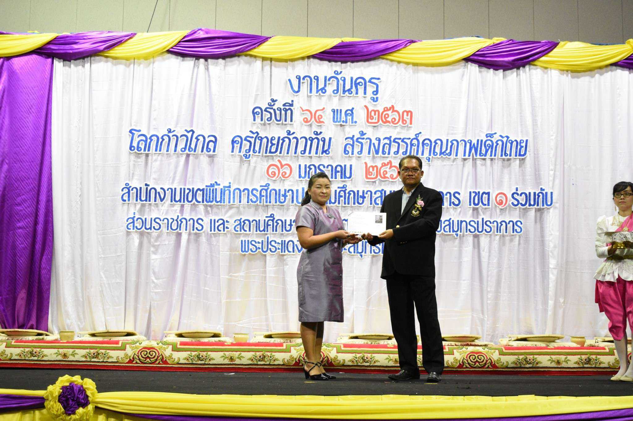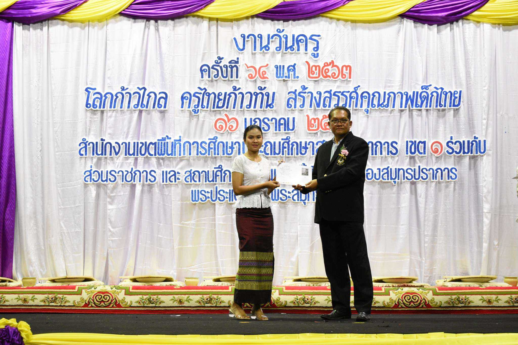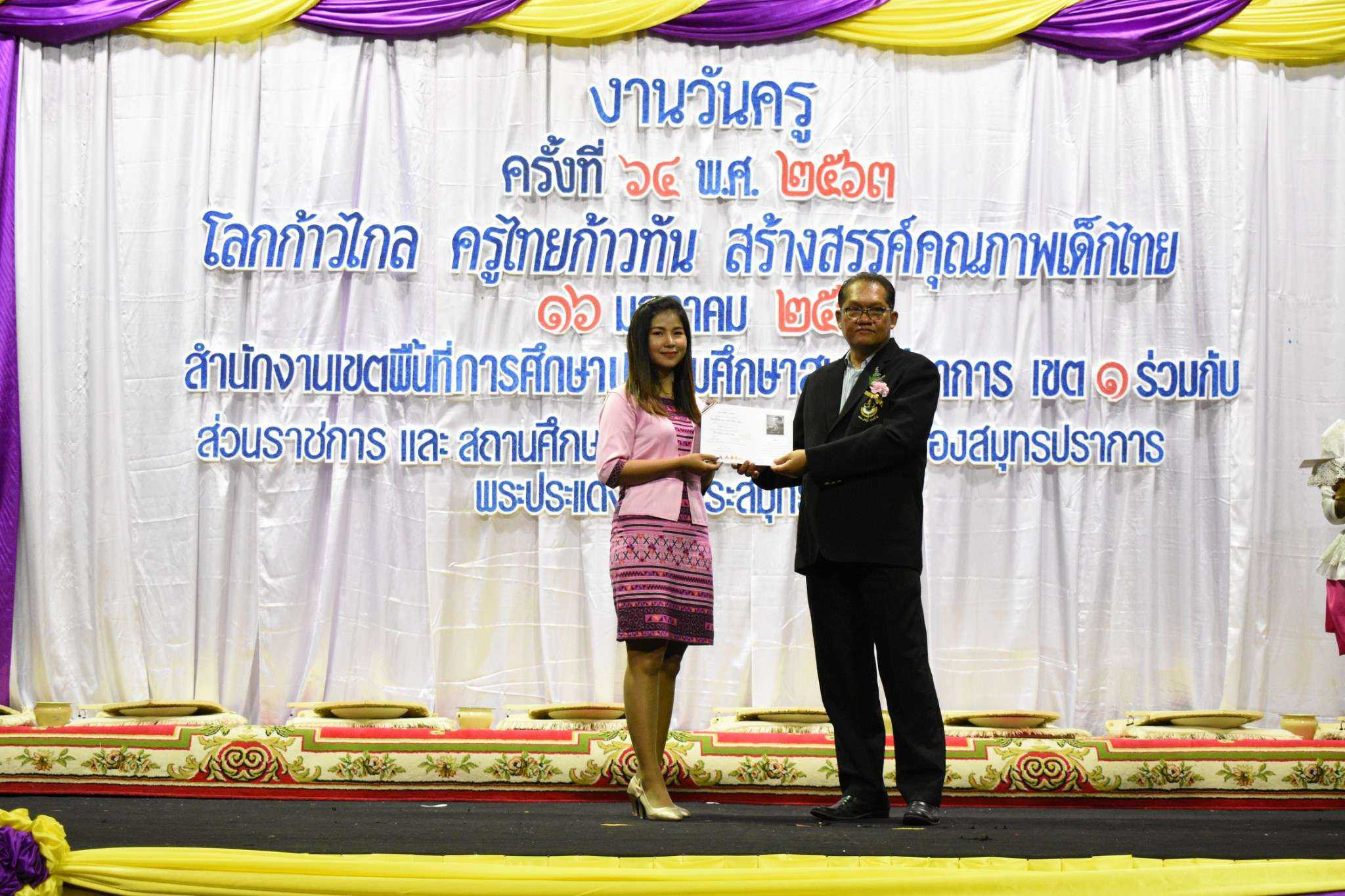 วันพฤหัสบดีที่ 16 มกราคม พ.ศ.2563 นางรัชนี อุทัยรัตน์ ผู้อำนวยการโรงเรียนวัดตำหรุ มิตรภาพที่ 65 พร้อมด้วยคณะครู เข้าร่วมงานวันครู ครั้งที่ 64 ปีพุทธศักราช 2563 ในหัวข้อ ?โลกก้าวไกล ครูไทยก้าวทัน สร้างสรรค์คุณภาพเด็กไทย? ณ ห้องประชุมคอนเวนชั่นฮอลล์ ชั้น 6 ห้างสรรพสินค้าอิมพีเรียล เวิลด์ สำโรง อำเภอเมืองสมุทรปราการ จังหวัดสมุทรปราการ โดยสำนักงานเขตพื้นที่การศึกษาประถมศึกษาสมุทรปราการ เขต 1 ร่วมกับส่วนราชการ และสถานศึกษาในเขตพื้นที่อำเภอเมืองสมุทรปราการ อำเภอพระประแดง และอำเภอพระสมุทรเจดีย์ โดยมีนายธฤต สำราญเวทย์ รองผู้ว่าราชการจังหวัดสมุทรปราการ เป็นประธานในพิธี มีนายกอบกิจ สิทธิธนกานต์ รองผู้อำนวยการสำนักงานเขตพื้นที่การศึกษา รักษาราชการแทนผู้อำนวยการสำนักงานเขตพื้นที่การศึกษาประถมศึกษาสมุทรปราการ เขต 1 กล่าวรายงาน ทั้งนี้ผู้อำนวยการโรงเรียน และคณะครู ได้เข้ารับเกียรติบัตรรางวัล S:1