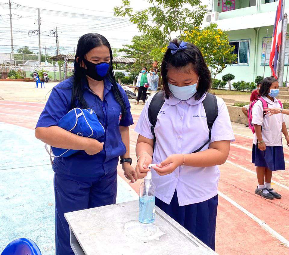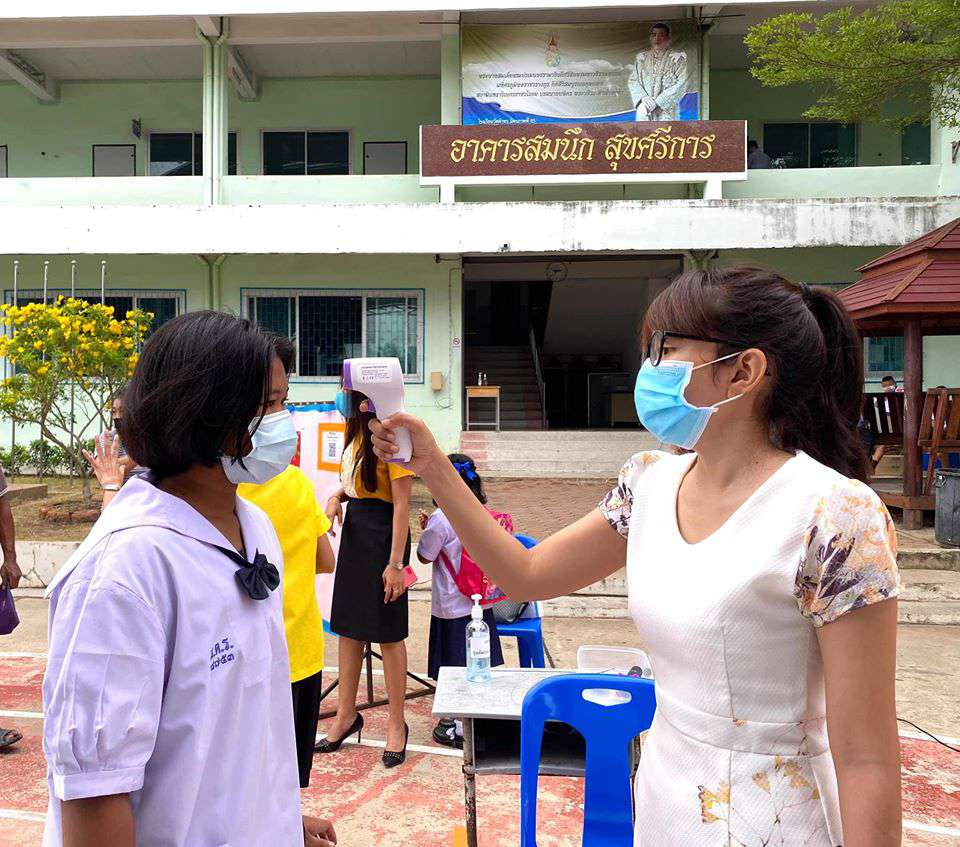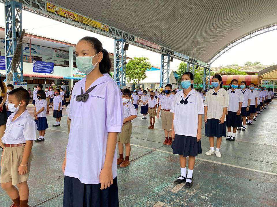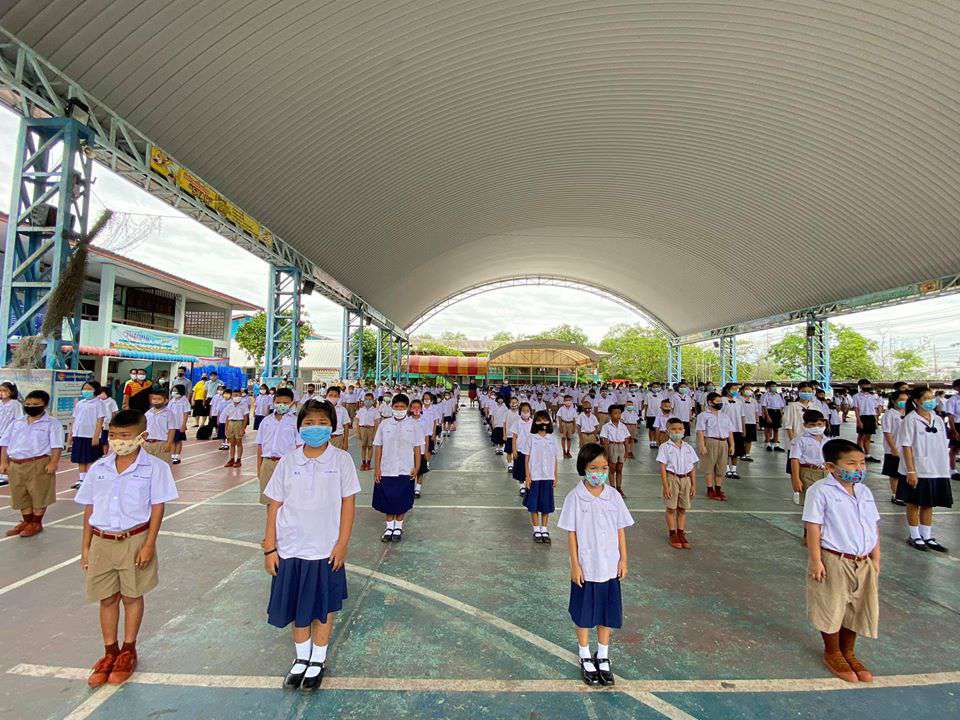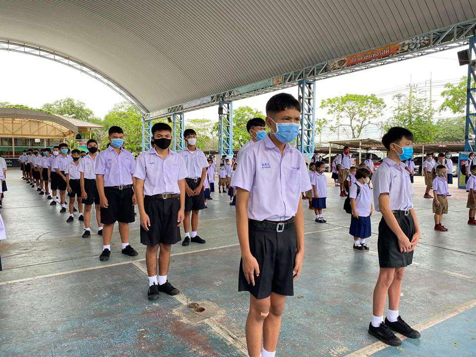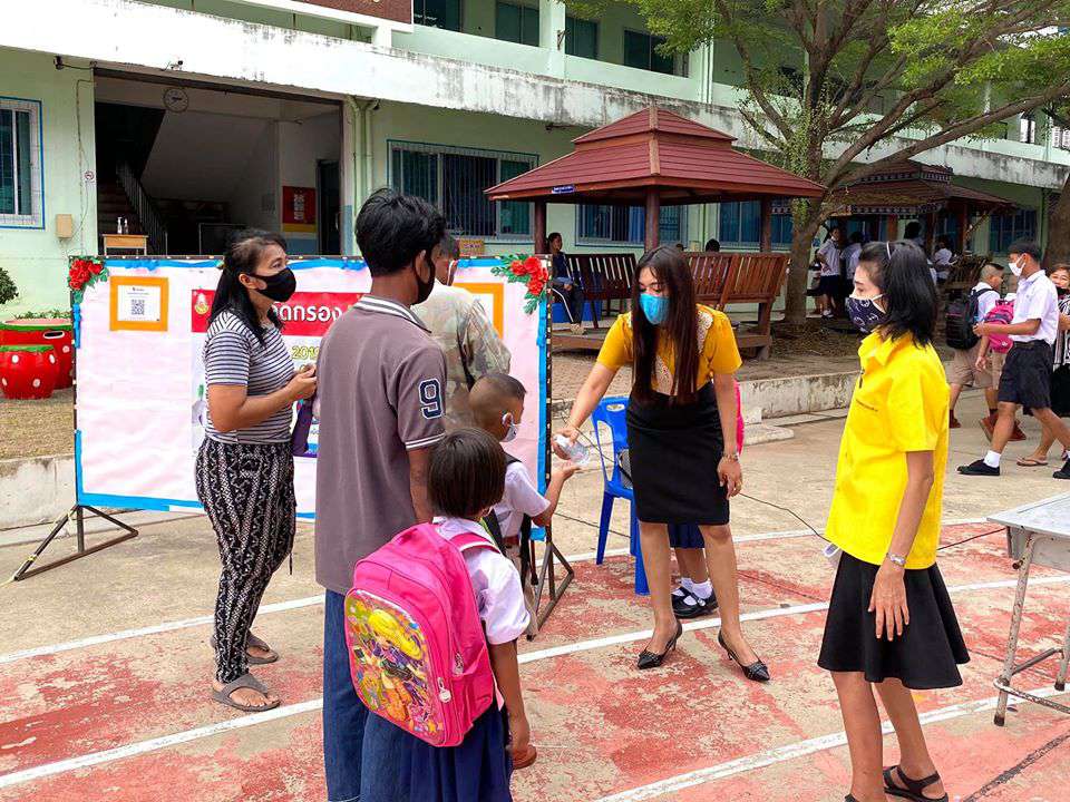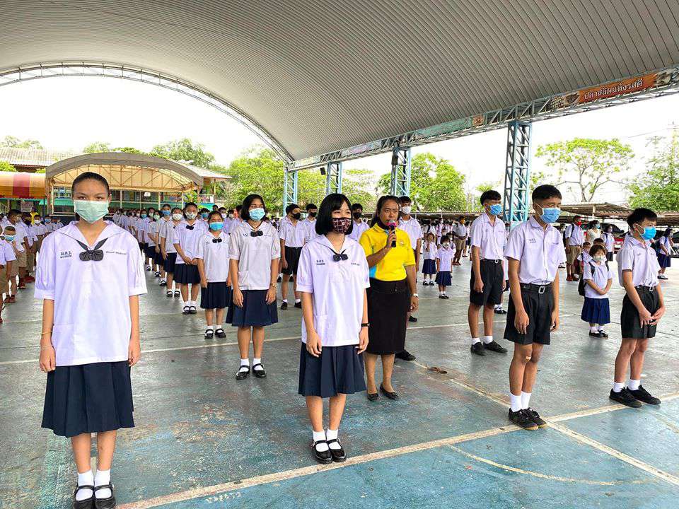 วันพุธที่ 1 กรกฎาคม 2563 เปิดเทอมภาคเรียนที่ 1 ปีการศึกษา 2563 นำโดยนางรัชนี อุทัยรัตน์ ผู้อำนวยการโรงเรียน ได้กล่าวต้อนรับนักเรียนและให้โอวาท พร้อมทั้งแนะนำแนวทางในการป้องกันโรคติดต่อเชื้อไวรัสโคโรนา 2019 (โควิด-19) พร้อมทั้งมีจุดคัดกรองคณะครู นักเรียนและผู้ปกครองก่อนเข้าโรงเรียน #วิถีชีวิตแบบใหม่ เรียนรู้คู่สุขภาพและความปลอดภัย ห่าง ไกล COVID-19 S:1