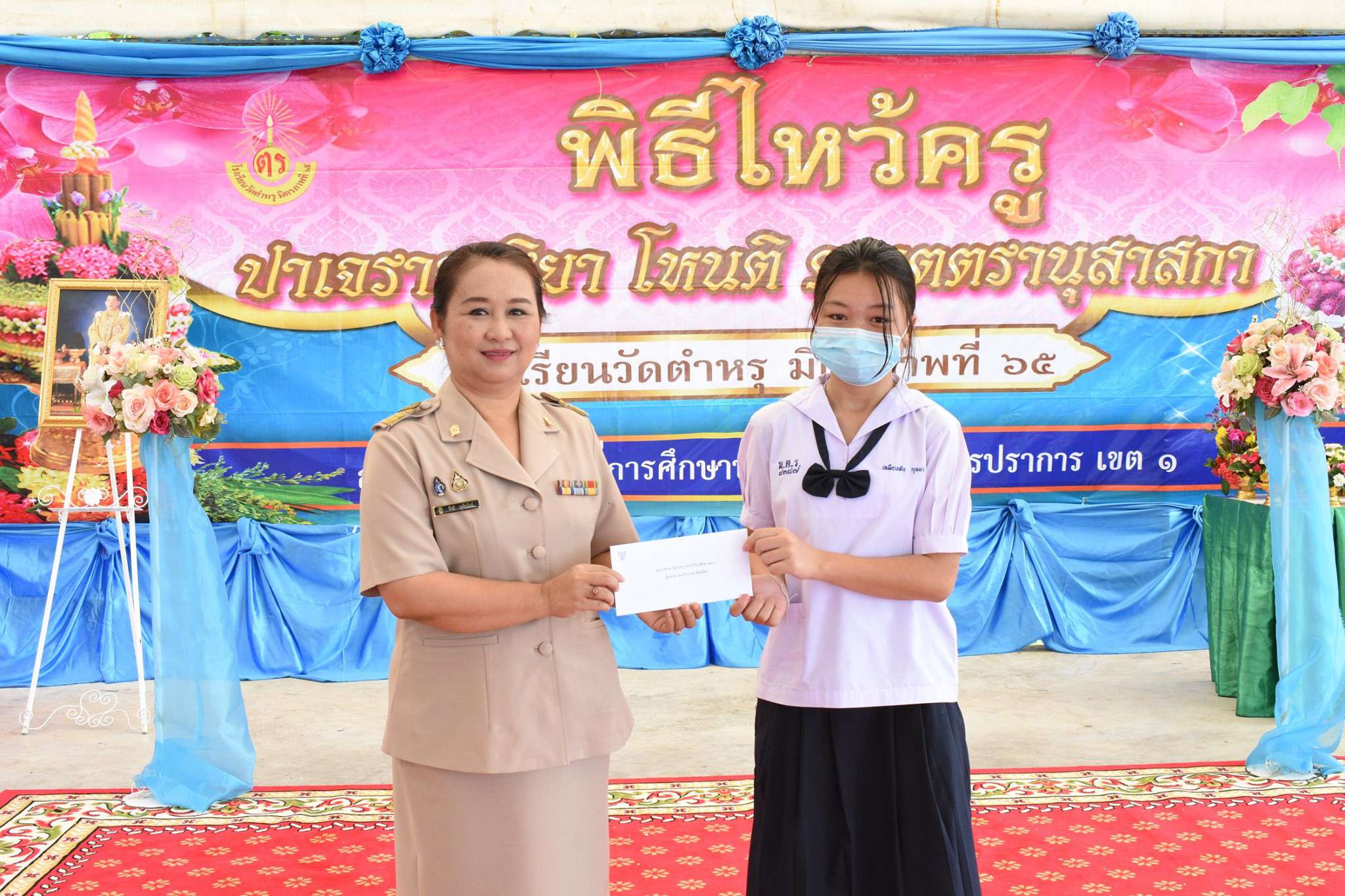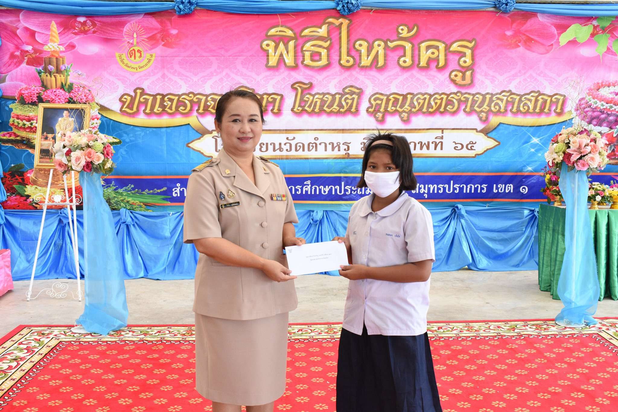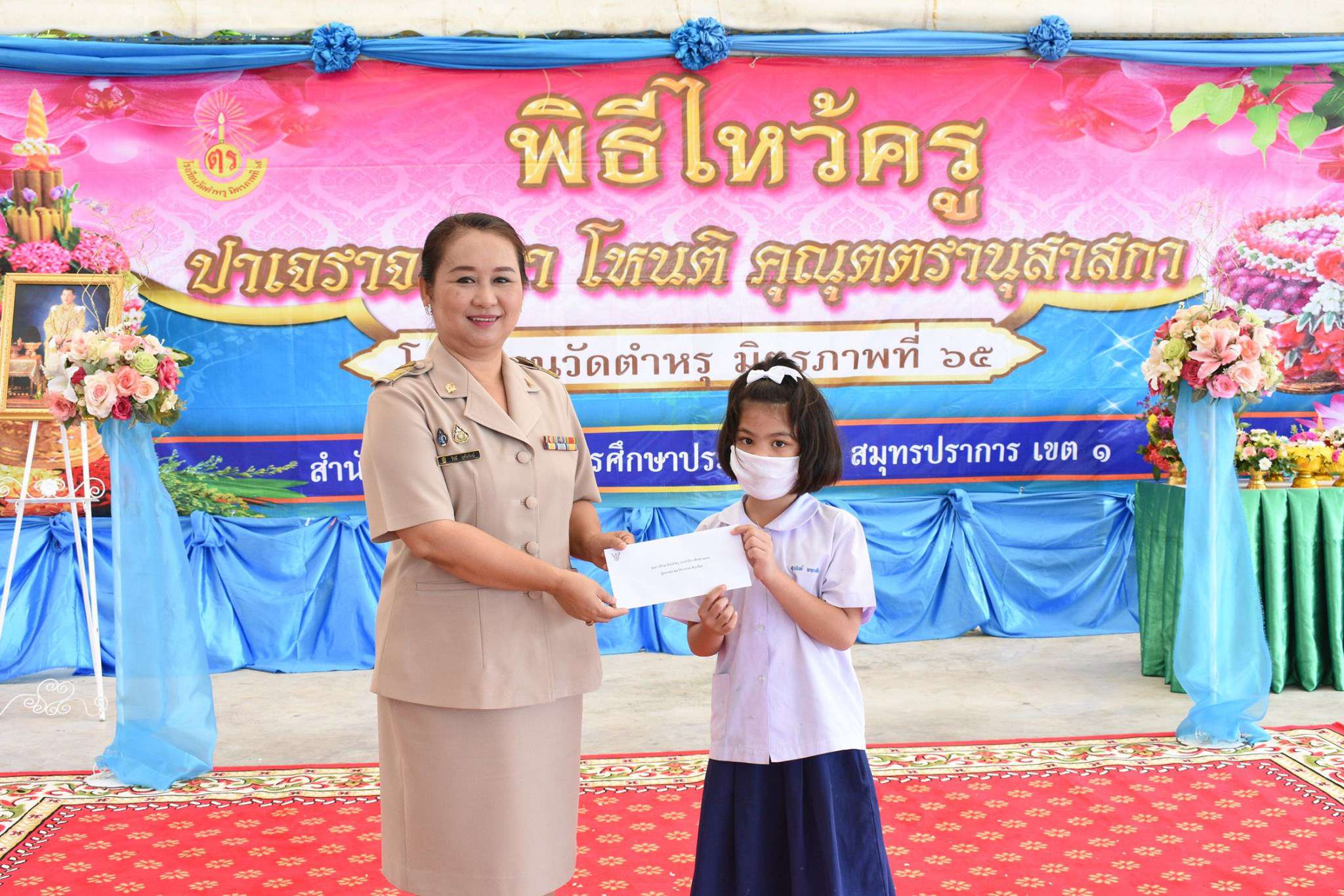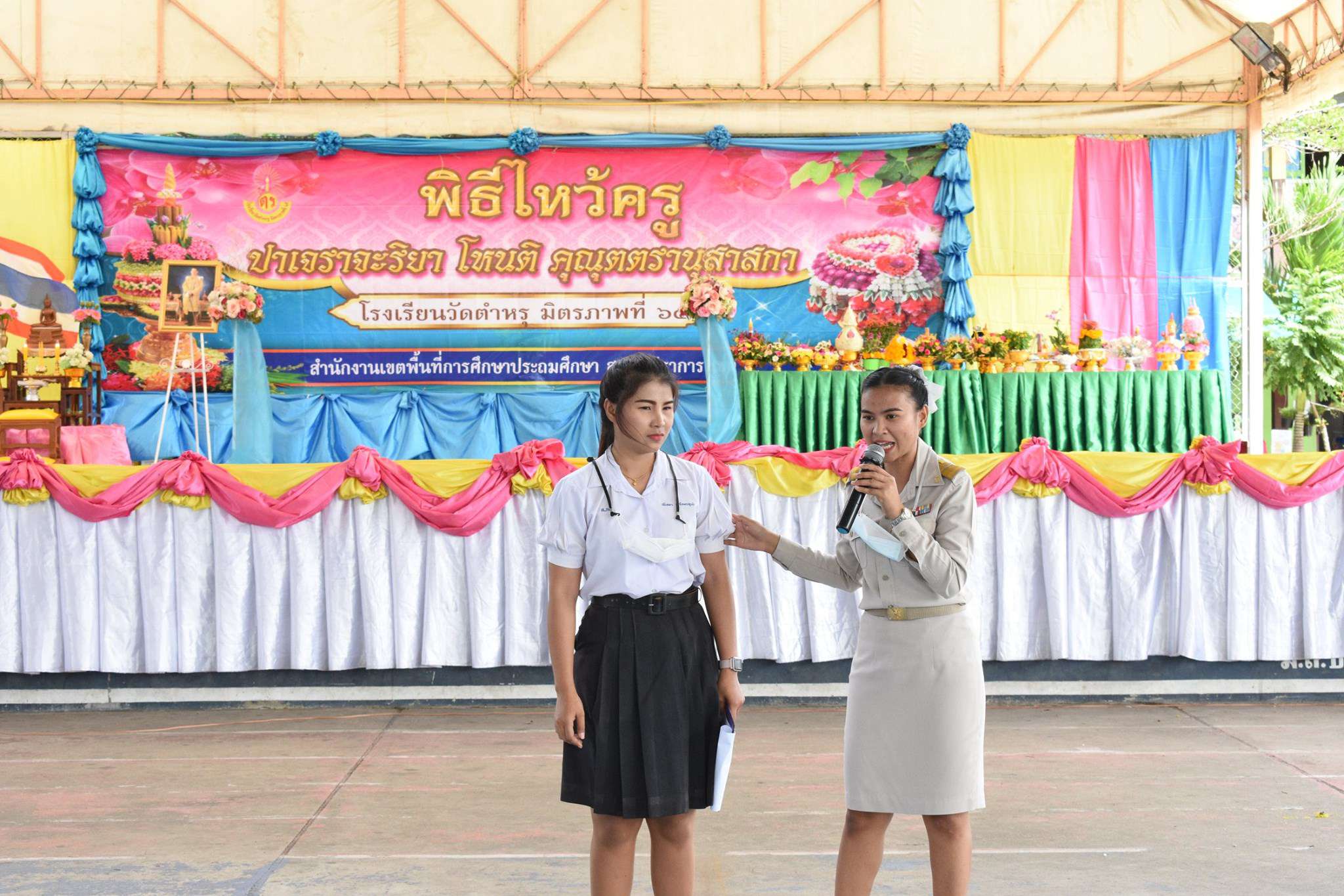วันพฤหัสบดีที่ 6 สิงหาคม 2563 โรงเรียนวัดตำหรุ มิตรภาพที่ 65 ได้จัดกิจกรรมพิธีไหว้ครู ประจำปี 2563 ณ ลานอเนกประสงค์ของโรงเรียน นำโดยนางรัชนี อุทัยรัตน์ ผู้อำนวยการโรงเรียน เป็นประธานในพิธี ตัวแทนนักเรียนมอบพานดอกไม้ พานธูปเทียนให้ผู้อำนวยการโรงเรียนและคุณครู ประธานในพิธีเจิมหนังสือเรียน ตัวแทนนักเรียนนำกล่าวคำปฏิญาณตน มีการมอบทุนการศึกษาให้กับนักเรียนยากจนและประพฤติดี และมีกิจกรรมให้ความรู้และตอบคำถามเกี่ยวกับวันไหว้ครู เพื่อให้นักเรียนแสดงความเคารพ ความกตัญญูกตเวทีต่อครูผู้มีพระคุณ และเป็นการอนุรักษ์ประเพณี อันดีงาม S:1