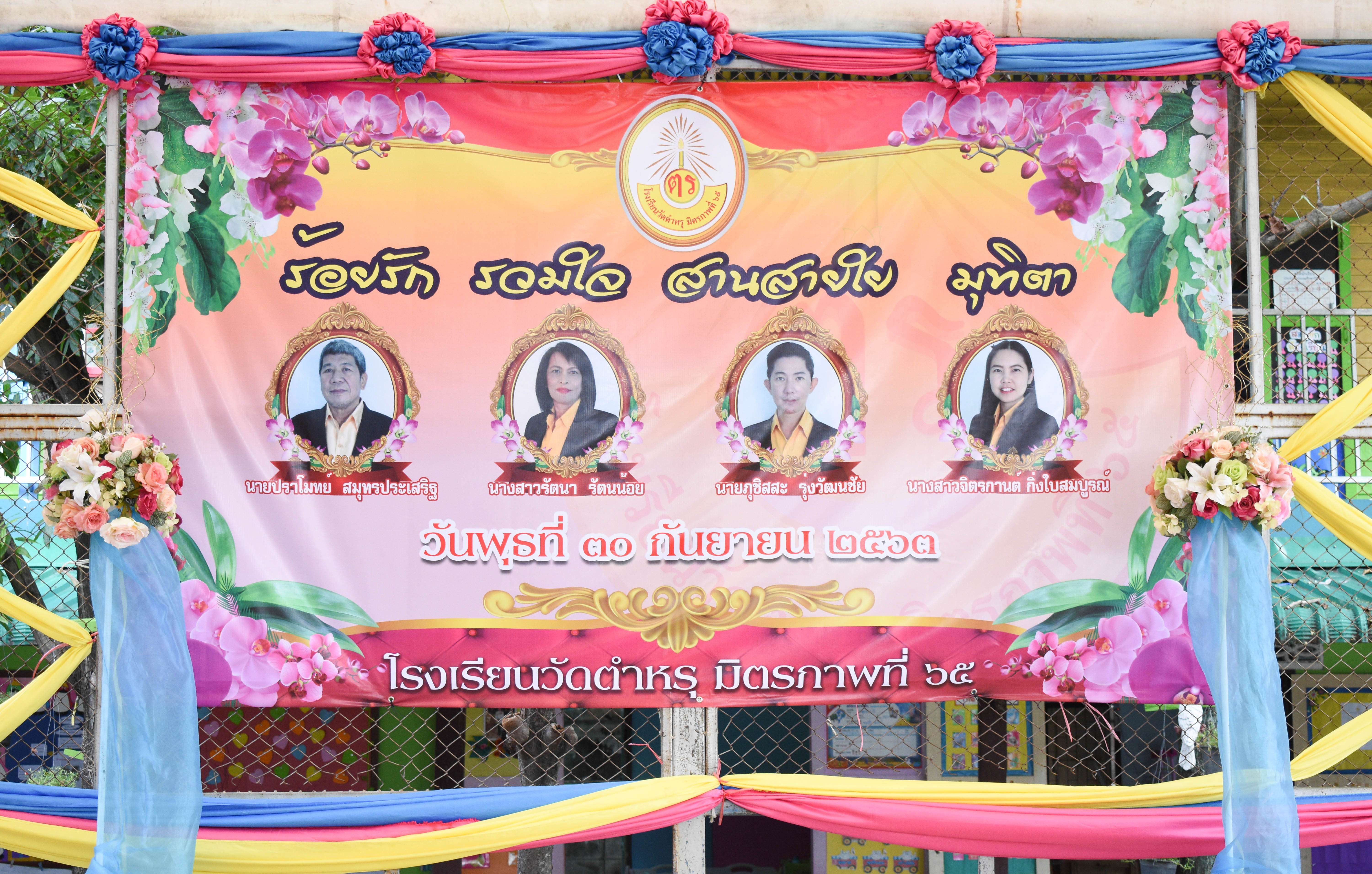 วันพุธที่ 30 กันยายน 2563 โรงเรียนวัดตำหรุ มิตรภาพที่ 65 จัดพิธีแสดงมุทิตาจิตข้าราชการครูและบุคลากรทางการศึกษา ประจำปี 2563 นำโดยนางรัชนี อุทัยรัตน์ ผู้อำนวยการโรงเรียน พร้อมด้วยคณะครูและตัวแทนนักเรียนกล่าวแสดงความรู้สึกและมอบดอกไม้ โดยผู้เกษียณอายุราชการประกอบด้วย นายปราโมทย์ สมุทรประเสริฐ ตำแหน่ง ครูชำนาญการ นางสาวรัตนา รัตนน้อย ตำแหน่ง พนักงานราชการ และข้าราชการครูที่ย้ายไปดำรงตำแหน่งรองผู้อำนวยการโรงเรียน ประกอบด้วย นายภุชิสสะ รุ่งวัฒนชัย ตำแหน่ง ครูชำนาญการพิเศษ นางสาวจิตรกานต์ กิ่งใบสมบูรณ์ ตำแหน่ง ครูชำนาญการพิเศษ เพื่อยกย่องและเชิดชูเกียรติ และระลึกถึงคุณูปการในระหว่างการปฏิบัติหน้าที่ราชการ เป็นแบบอย่างที่ดีในการปฏิบัติหน้าที่ราชการ S:1