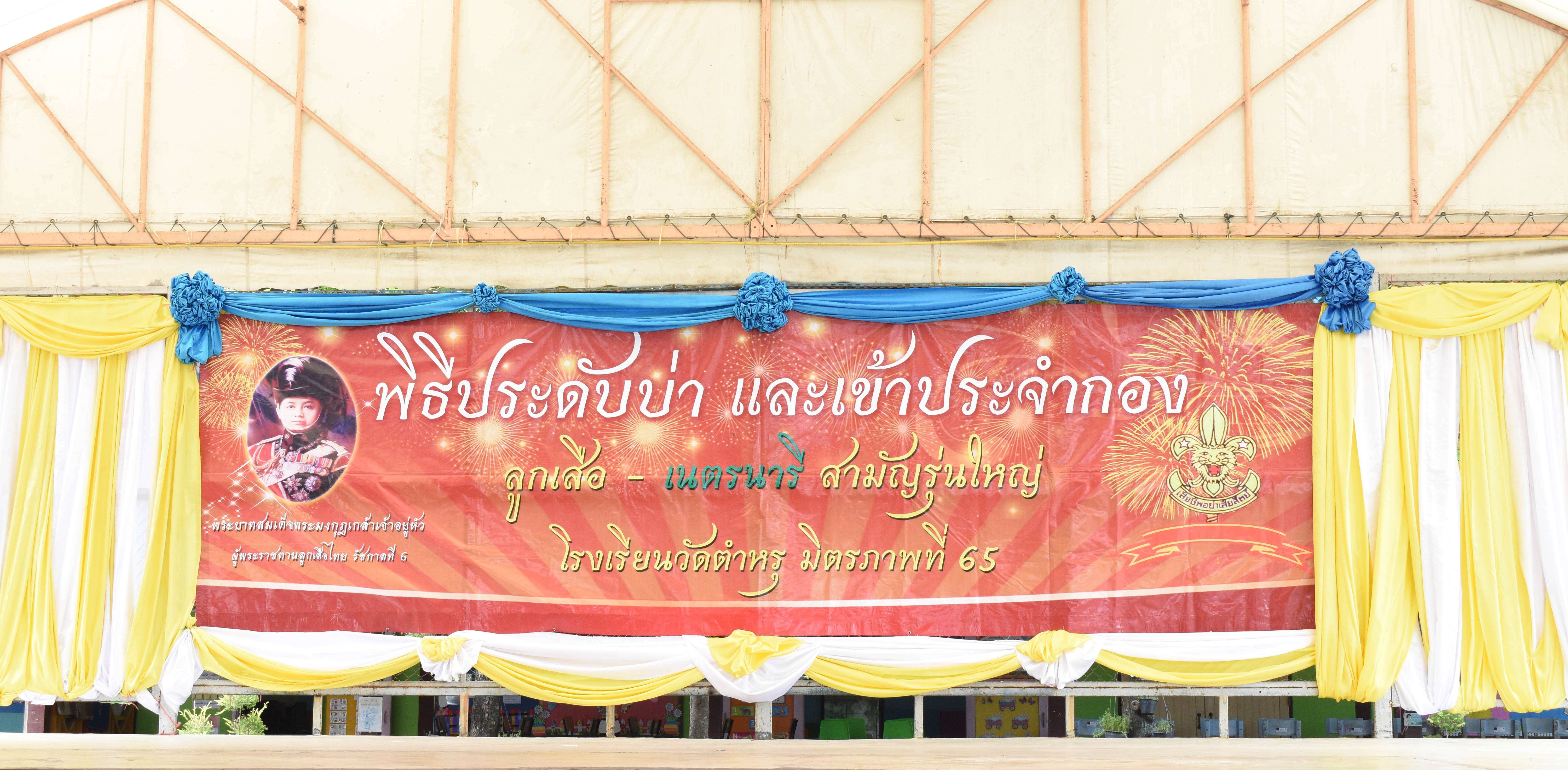 วันพุธที่ 21 ตุลาคม 2563 โรงเรียนวัดตำหรุ มิตรภาพที่ 65 ได้จัดพิธีประดับบ่าและเข้าประจำกองลูกเสือ-เนตรนารีสามัญรุ่นใหญ่ ประจำปีการศึกษา 2563 โดยมีนางรัชนี อุทัยรัตน์ ผู้อำนวยการโรงเรียนเป็นประธานในพิธี พร้อมด้วยคณะผู้กำกับลูกเสือร่วมประดับบ่าลูกเสือใหม่ชั้นมัธยมศึกษาปีที่ 1 และพิธีกล่าวลาของผู้กำกับลูกเสือจำนวน 2 ท่านประกอบด้วย นางสาวจิตรกานต์ กิ่งใบสมบูรณ์ และนายภุชิสสะ รุ่งวัฒนชัย เพื่อไปดำรงตำแหน่งรองผู้อำนวยการสถานศึกษา ทั้งนี้กองลูกเสือโรงเรียนวัดตำหรุ มิตรภาพที่ 65 ร่วมแสดงความยินดีกับทั้งสองท่าน S:1