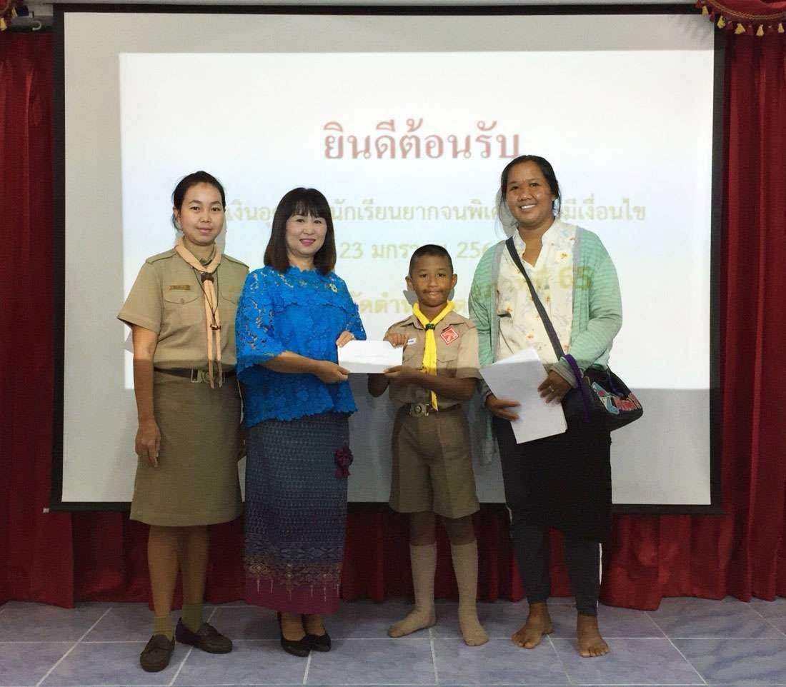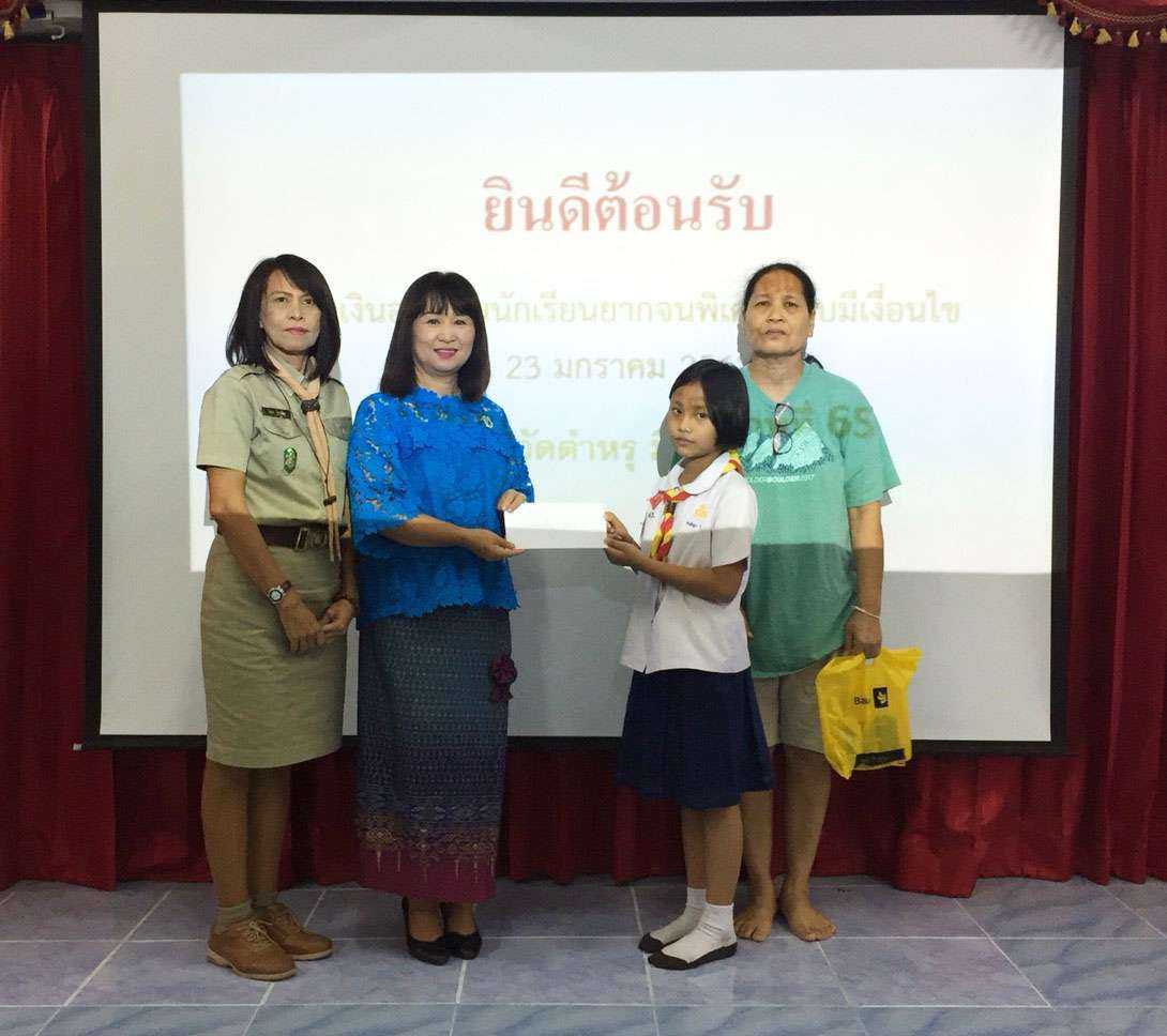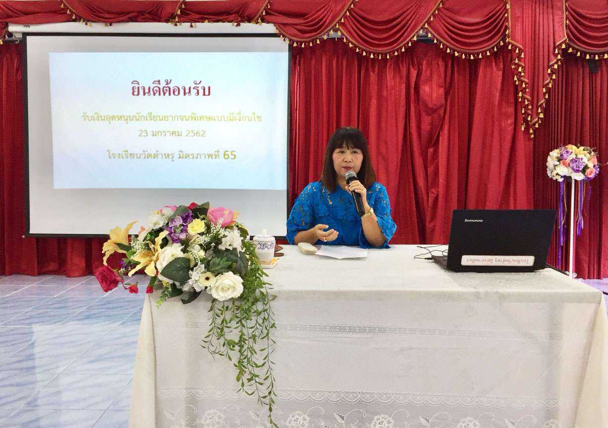 วันพุธที่ 23 มกราคม พ.ศ. 2562 โรงเรียนวัดตำหรุ มิตรภาพที่ 65 ได้ดำเนินการมอบทุนเงินอุดหนุนนักเรียนยากจนพิเศษแบบมีเงื่อนไขในสถานศึกษา นำโดยนางรัชนี อุทัยรัตน์ ผู้อำนวยการโรงเรียน ได้ให้เกียรติมอบเงินอุดหนุนแก่นักเรียนยากจนพิเศษแบบมีเงื่อนไข ในระดับชั้น ป.1-ม.3 จำนวน 122 ทุน เป็นการส่งเสริมเด็กและเยาวชน ซึ่งขาดแคลนทุนทรัพย์ เพื่อลดความเหลื่อมล้ำทางการศึกษา ให้นักเรียนทุกคนได้รับการศึกษาอย่างทั่วถึงและมีคุณภาพ จากนั้นท่านผู้อำนวยการโรงเรียนได้พบผู้ปกครอง เพื่อชี้แจงนโยบายการพัฒนาโรงเรียน ในด้านต่างๆ S:1