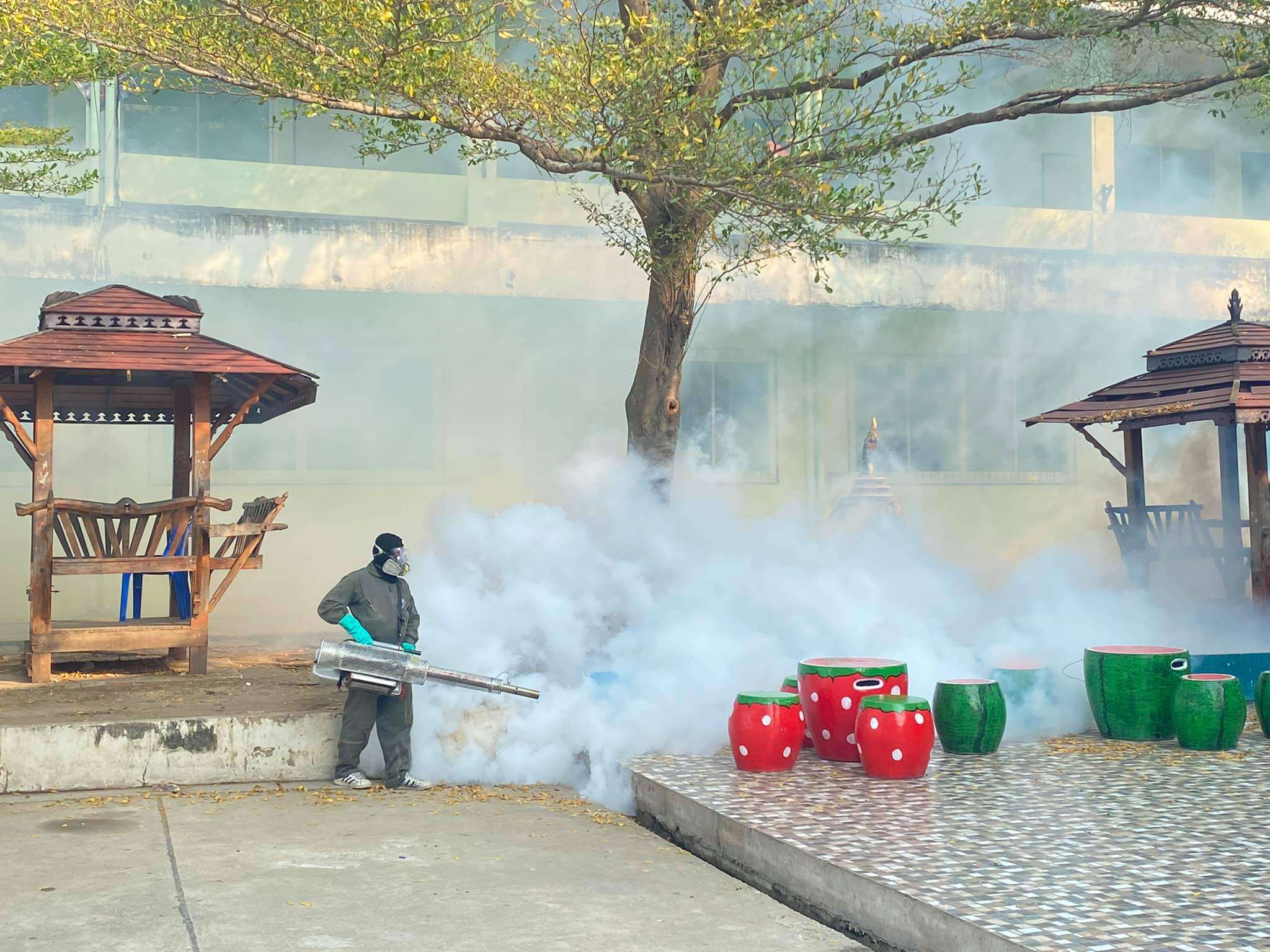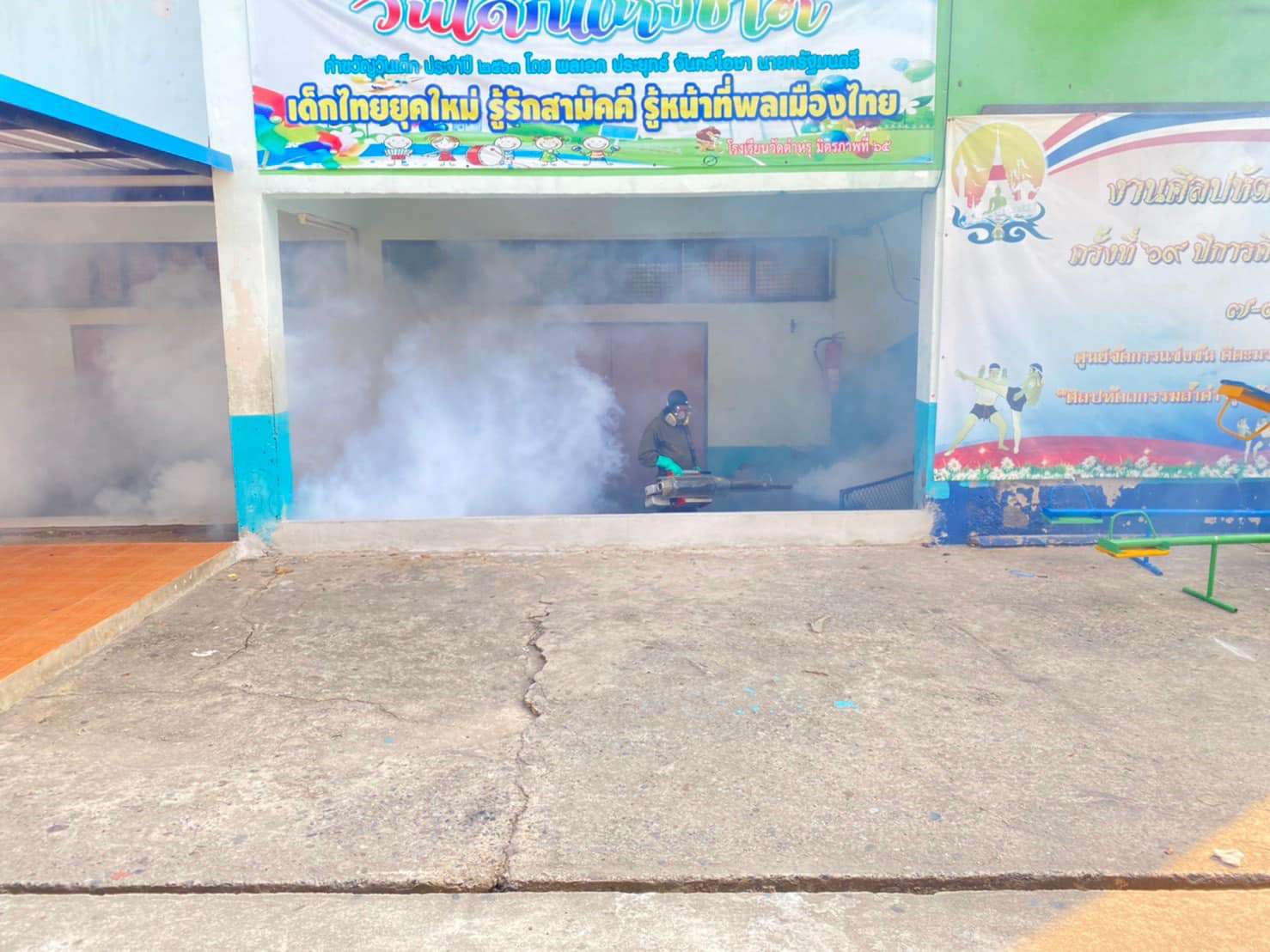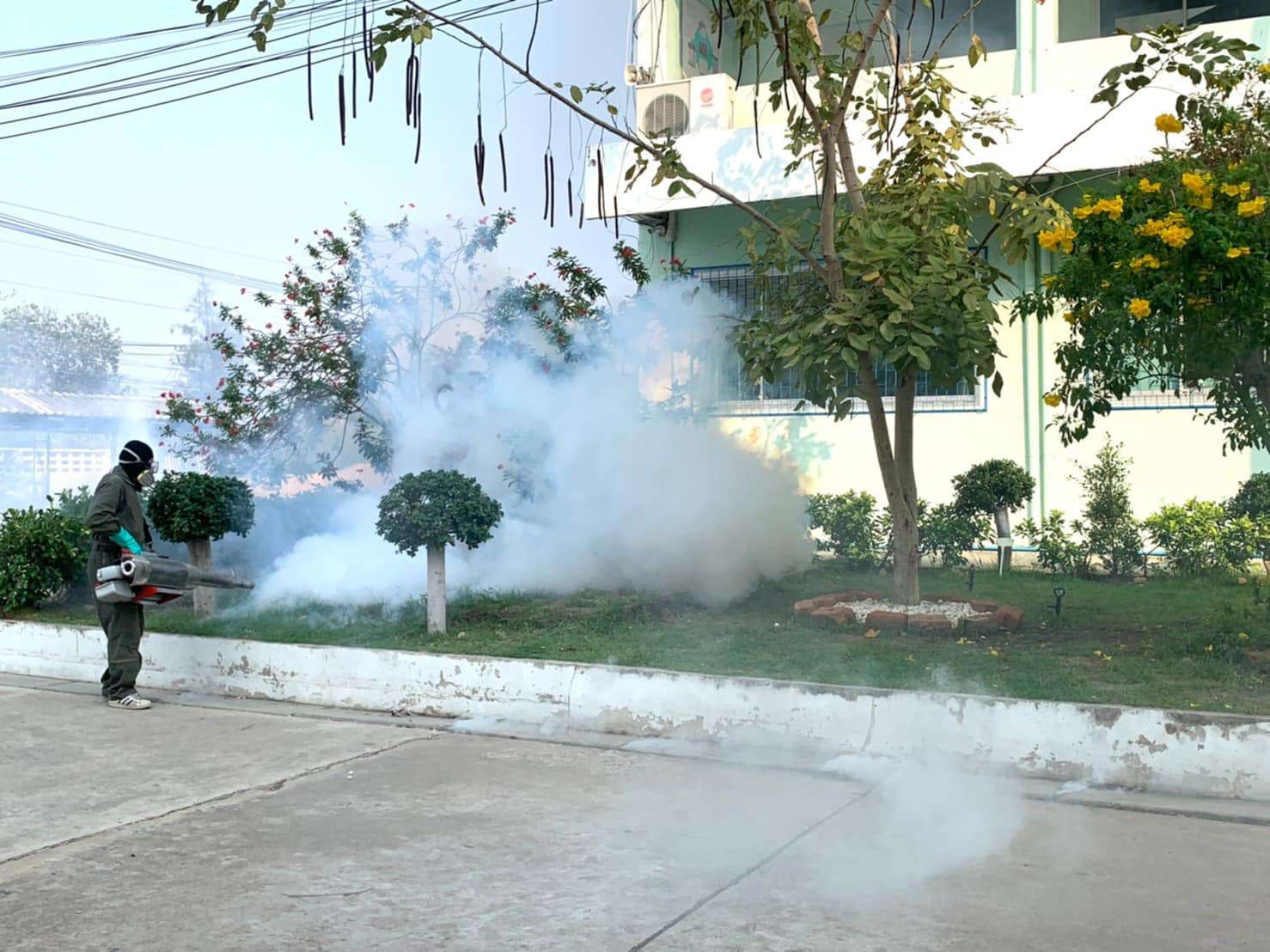 พ่นหมอกควันกำจัดยุงลายภายในสถานศึกษา