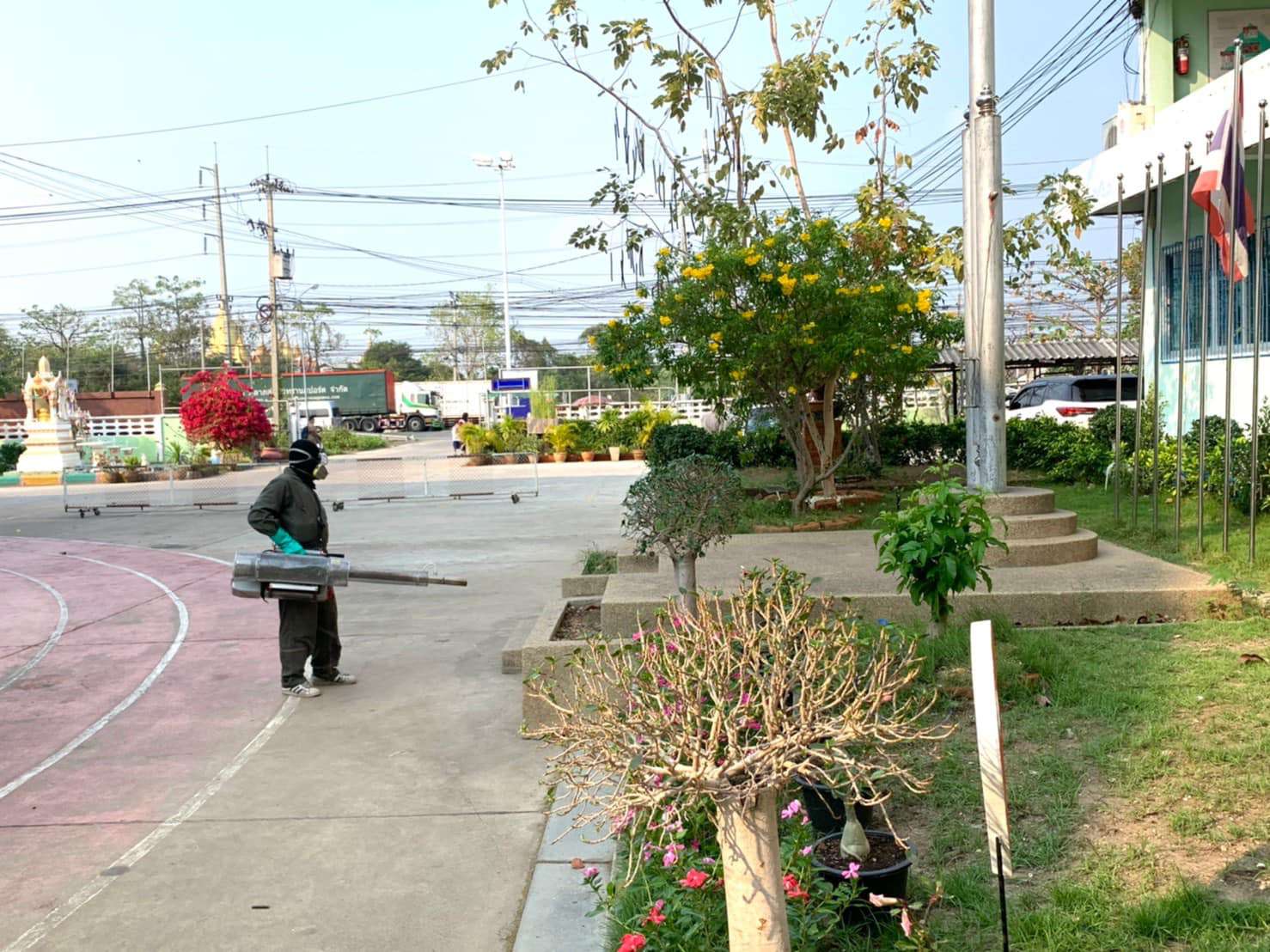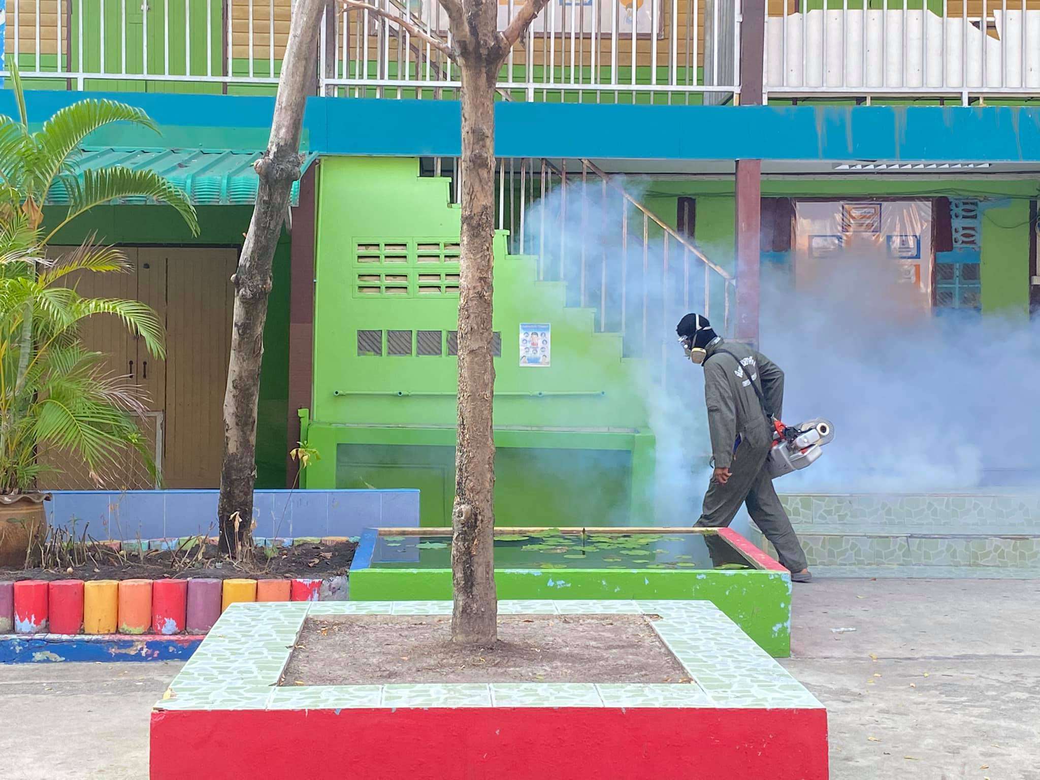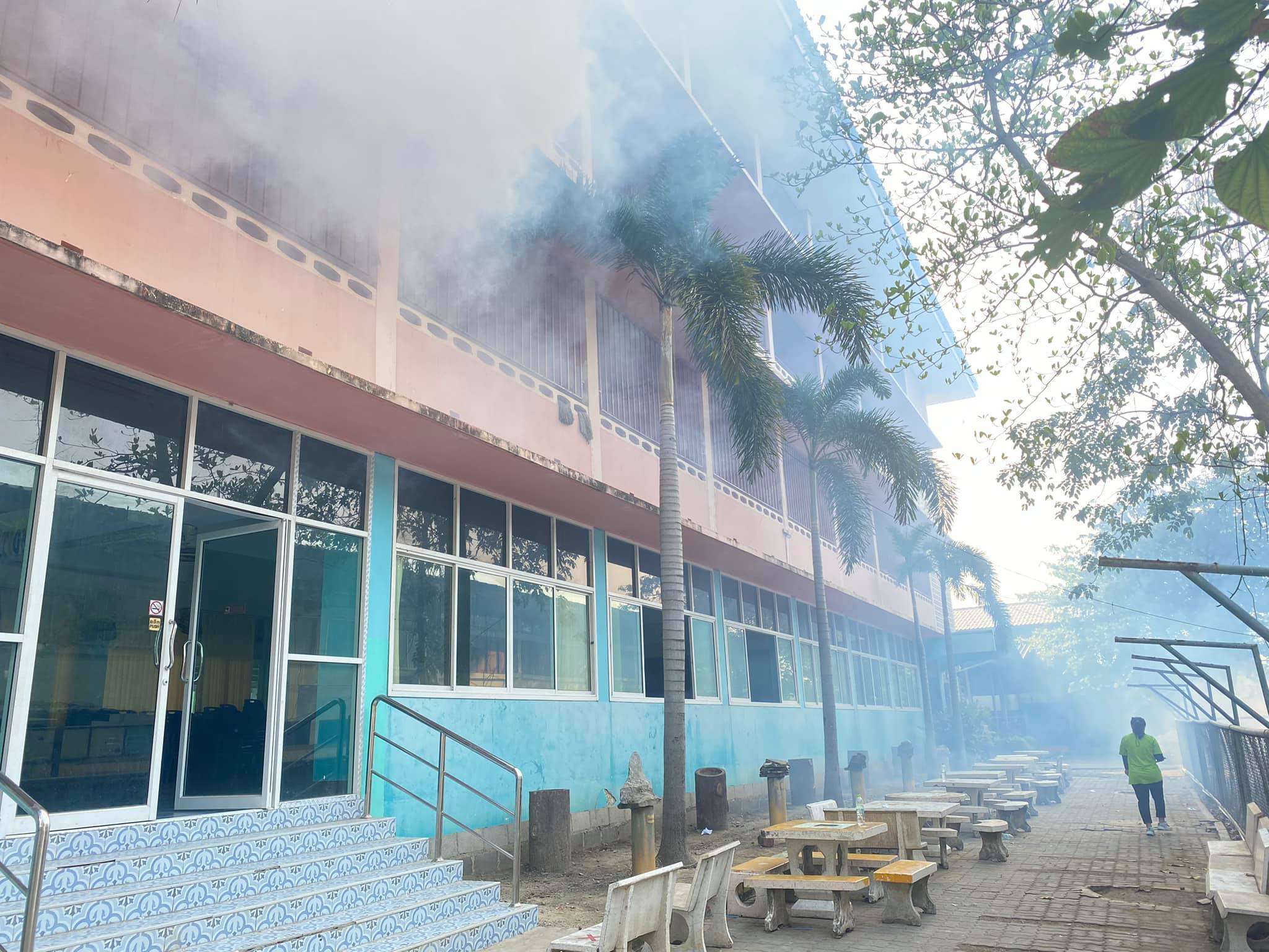 พ่นหมอกควันกำจัดยุงลายภายในสถานศึกษา