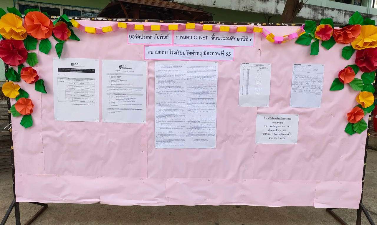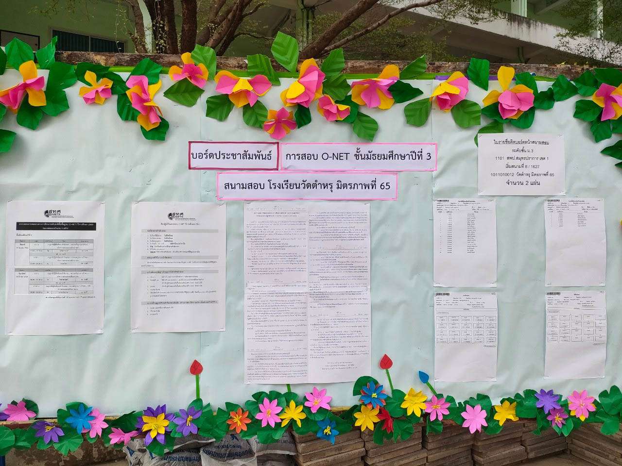 วันที่ 13-14 มีนาคม 2564 โรงเรียนวัดตำหรุ มิตรภาพที่ 65 ดำเนินการจัดการทดสอบทางการศึกษาระดับชาติขั้นพื้นฐาน(O-NET) ปีการศึกษา 2563 ของนักเรียนระดับชั้นประถมศึกษาปีที่ 6 และระดับชั้นมัธยมศึกษาปีที่ 3 โดยมีนางรัชนี อุทัยรัตน์ ผู้อำนวยการโรงเรียนวัดตำหรุ มิตรภาพที่ 65 เป็นหัวหน้าสนามสอบ นางสาววิชชุลดา ไชยกันทะ ผู้อำนวยการโรงเรียนวัดปุณหังสนาวาสและนายพรภวิษย์ มนตร์วัชรินทร์ รองผู้อำนวยการโรงเรียนวัดตำหรุ มิตรภาพที่ 65 เป็นตัวแทนศูนย์สอบ โรงเรียนได้มีมาตรการป้องกันการแพร่ระบาดของโรคติดต่อเชื้อไวรัสโคโรนา 2019 บรรยากาศในการสอบเป็นไปด้วยความเรียบร้อยดี ทางโรงเรียนขอขอบพระคุณใน ความร่วมมือของบุคลากรทุกท่านที่เกี่ยวข้อง S:1
