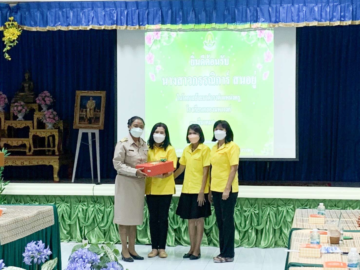 วันพฤหัสบดีที่ 31 มีนาคม 2565 นำโดยนางรัชนี อุทัยรัตน์ ผู้อำนวยการโรงเรียนวัดตำหรุ มิตรภาพที่ 65 พร้อมด้วยรองผู้อำนวยการโรงเรียนทั้งสองท่านและคณะครูเดินทางไปส่งนางสาวกรรณิการ์ สนอยู่ ตำแหน่ง ครู โรงเรียนวัดตำหรุ มิตรภาพที่ 65 กลุ่มสาระการเรียนรู้การงานอาชีพ เนื่องจากย้ายไปปฏิบัติหน้าที่การสอน ณ โรงเรียนคลองมหาวงก์ โดยมีนางสุรีรัตน์ เปลี่ยนบางช้าง ผู้อำนวยการโรงเรียนคลองมหาวงก์ และคณะครูให้การต้อนรับ ทั้งนี้ได้ร่วมแสดงความยินดีมอบของขวัญและให้กำลังใจกับคุณครู ซึ่งทำให้เกิดบรรยากาศอบอุ่น ทางโรงเรียนขอขอบคุณมา ณ โอกาสนี้ S:1