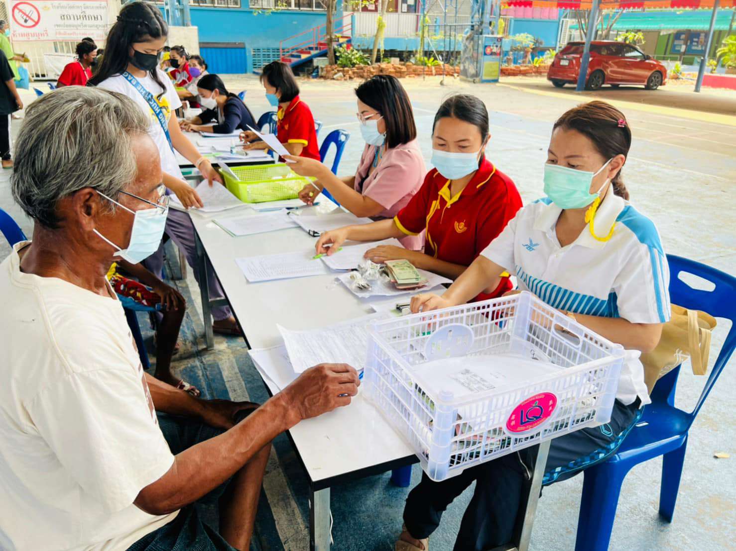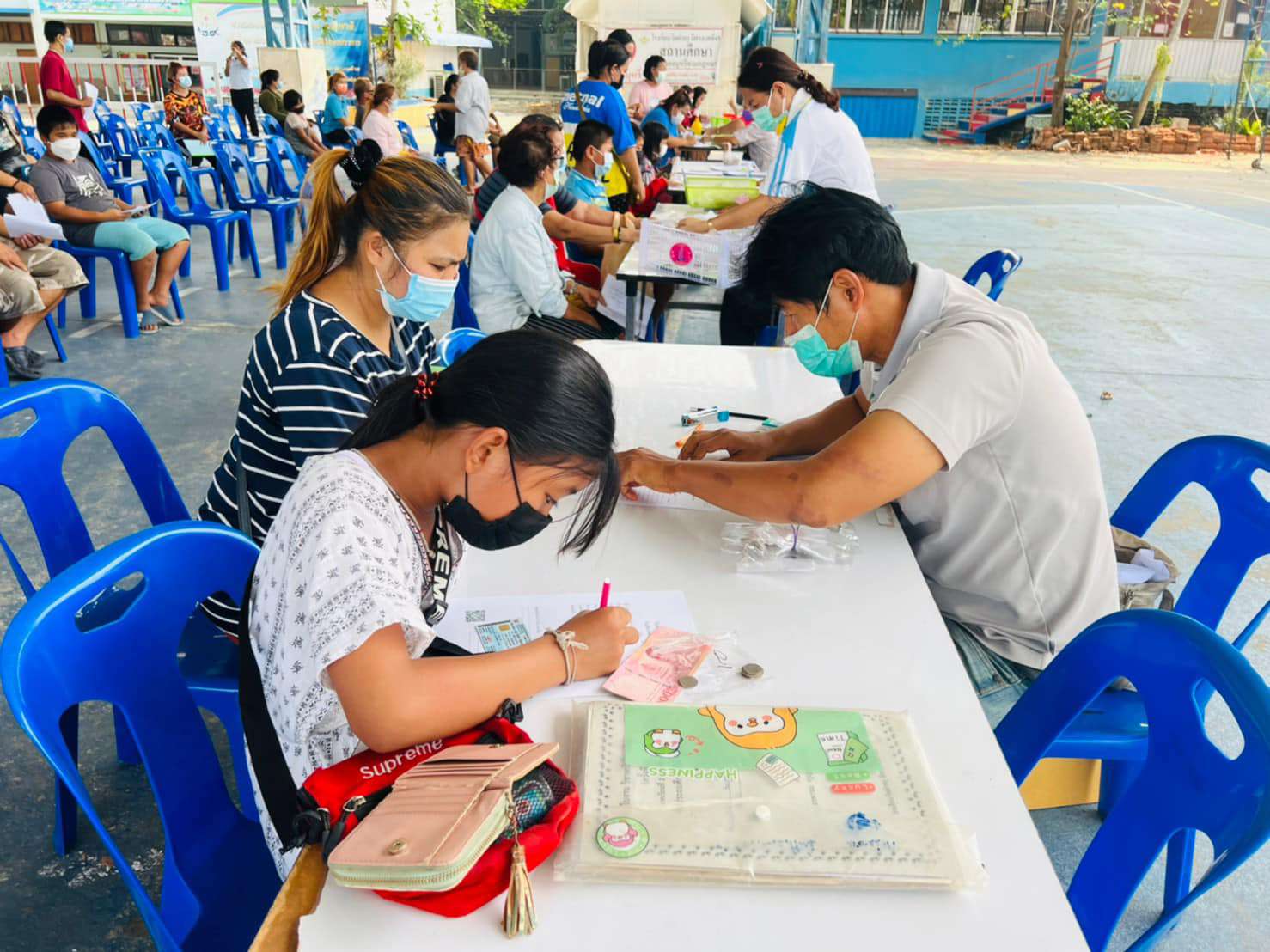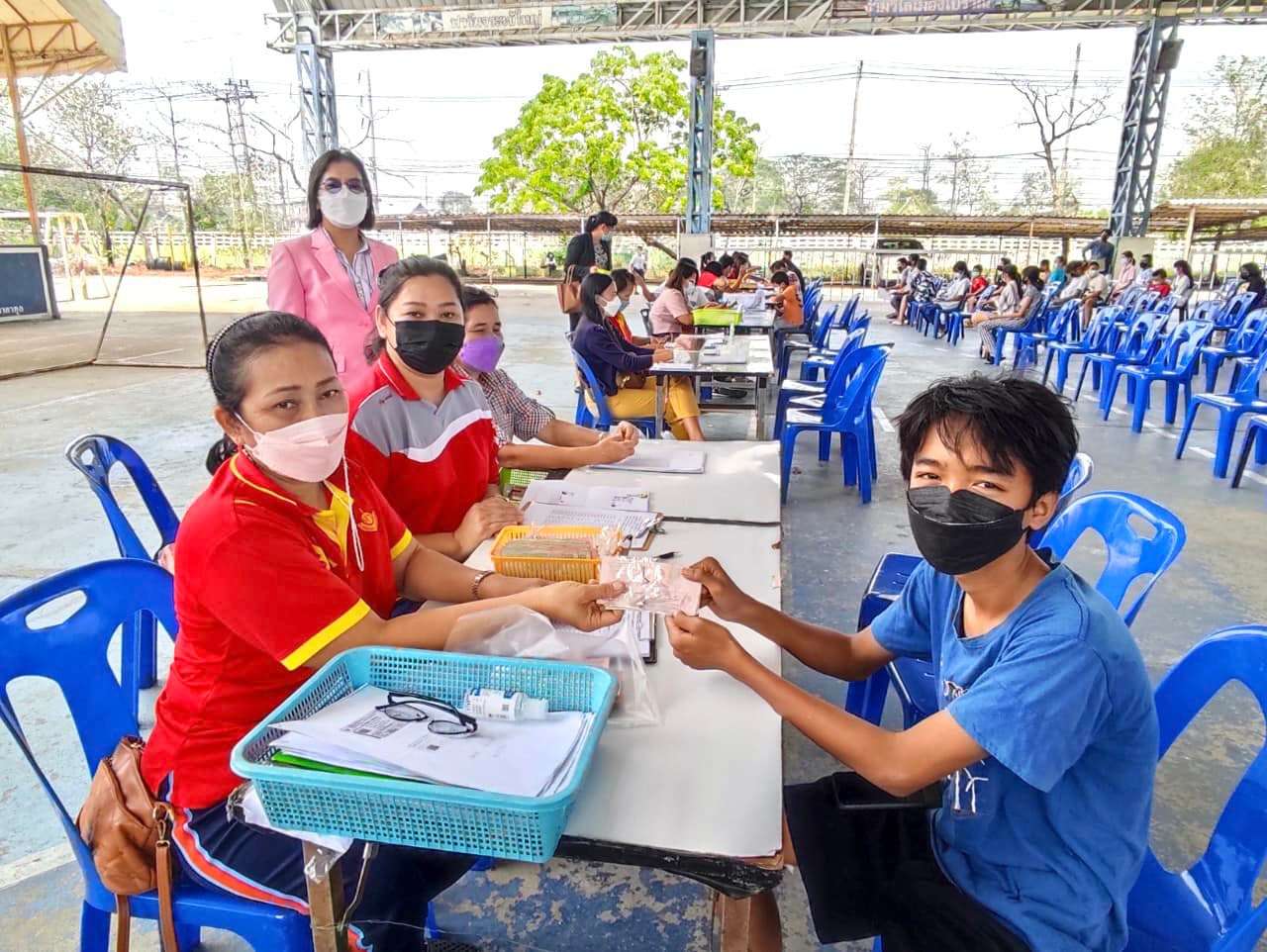 วันพุธที่ 9 มีนาคม 2565 นางรัชนี อุทัยรัตน์ ผู้อำนวยการโรงเรียนวัดตำหรุ มิตรภาพที่ 65 มอบหมายให้นางสาวกิ่งแก้ว สังคะหะ รองผู้อำนวยการโรงเรียน และคณะครูต้อนรับผู้ปกครองและนักเรียนที่มารับเงินโครงการอาหารกลางวันประจำเดือนกุมภาพันธ์ 2565 ของนักเรียนในระดับชั้นอนุบาล 2 ถึงระดับชั้นประถมศึกษาปีที่ 6 ณ ลานอเนกประสงค์ของโรงเรียน ทั้งนี้ทางโรงเรียนได้ปฏิบัติตามมาตรการป้องกันการแพร่ระบาดของเชื้อไวรัสโคโรนา 2019 (COVID-19) อย่างเคร่งครัดและการดำเนินงานเป็นไปด้วยความเรียบร้อยดี S:1