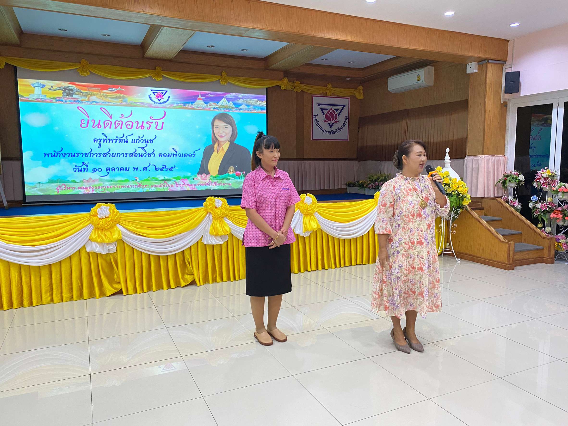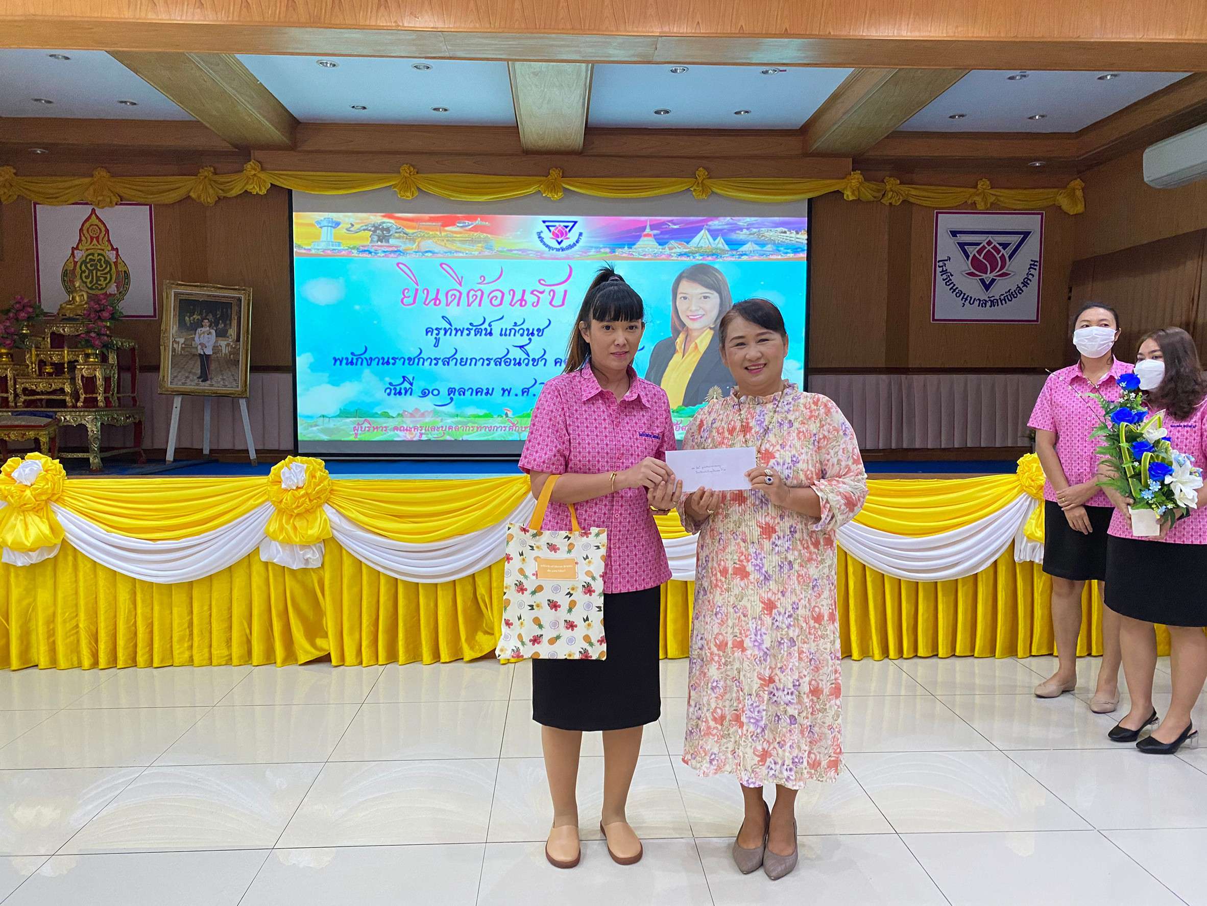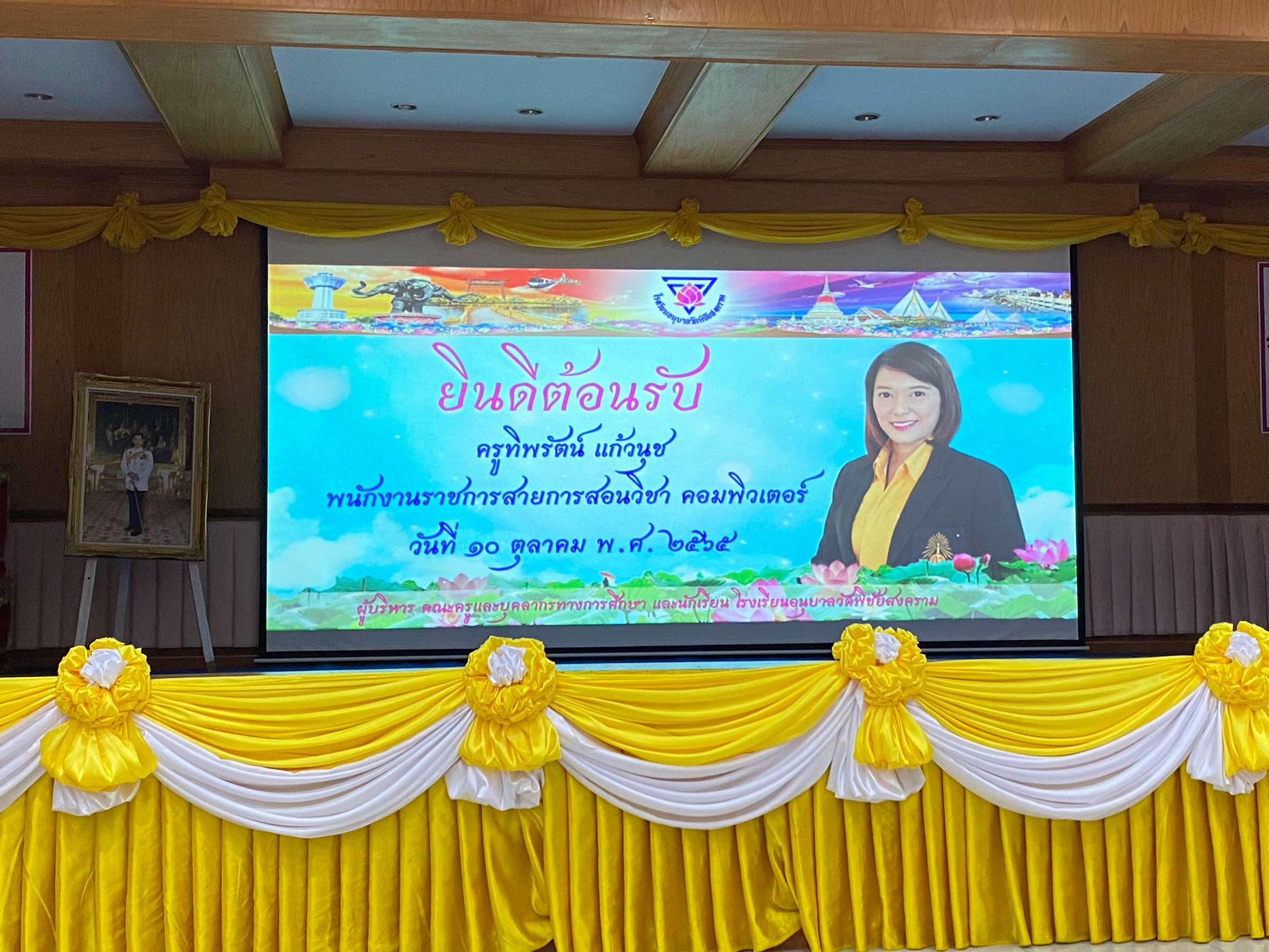 วันจันทร์ที่ 10 ตุลาคม 2565 นำโดยนางรัชนี อุทัยรัตน์ ผู้อำนวยการโรงเรียนวัดตำหรุ มิตรภาพที่ 65 พร้อมด้วยรองผู้อำนวยการโรงเรียนทั้งสองท่านและคณะครูเดินทางไปส่งนางสาวทิพรัตน์ แก้วนุช ตำแหน่ง พนักงานราชการ โรงเรียนวัดตำหรุ มิตรภาพที่ 65 เนื่องจากย้ายไปปฏิบัติหน้าที่การสอน ณ โรงเรียนอนุบาลวัดพิชัยสงคราม โดยมี นายณัฐพล นุชอุดม ผู้อำนวยการโรงเรียนอนุบาลวัดพิชัยสงคราม และคณะครูให้การต้อนรับ ทั้งนี้ได้ร่วมแสดงความยินดีมอบของขวัญและให้กำลังใจกับคุณครู ซึ่งทำให้เกิดบรรยากาศอบอุ่น ทางโรงเรียนขอขอบคุณมา ณ โอกาสนี้ S:1