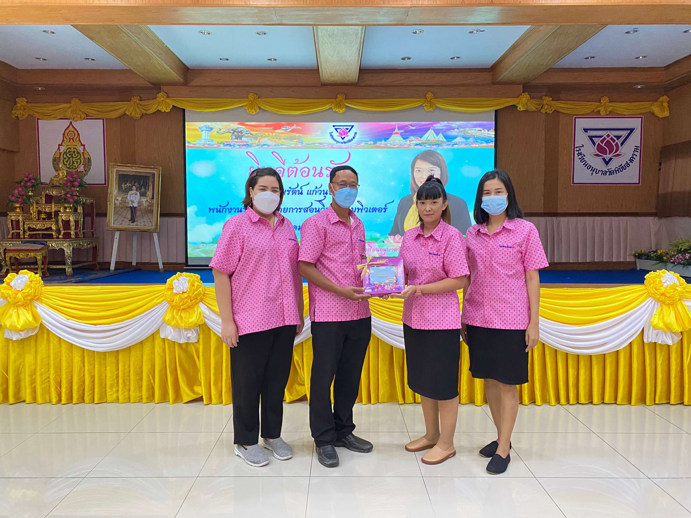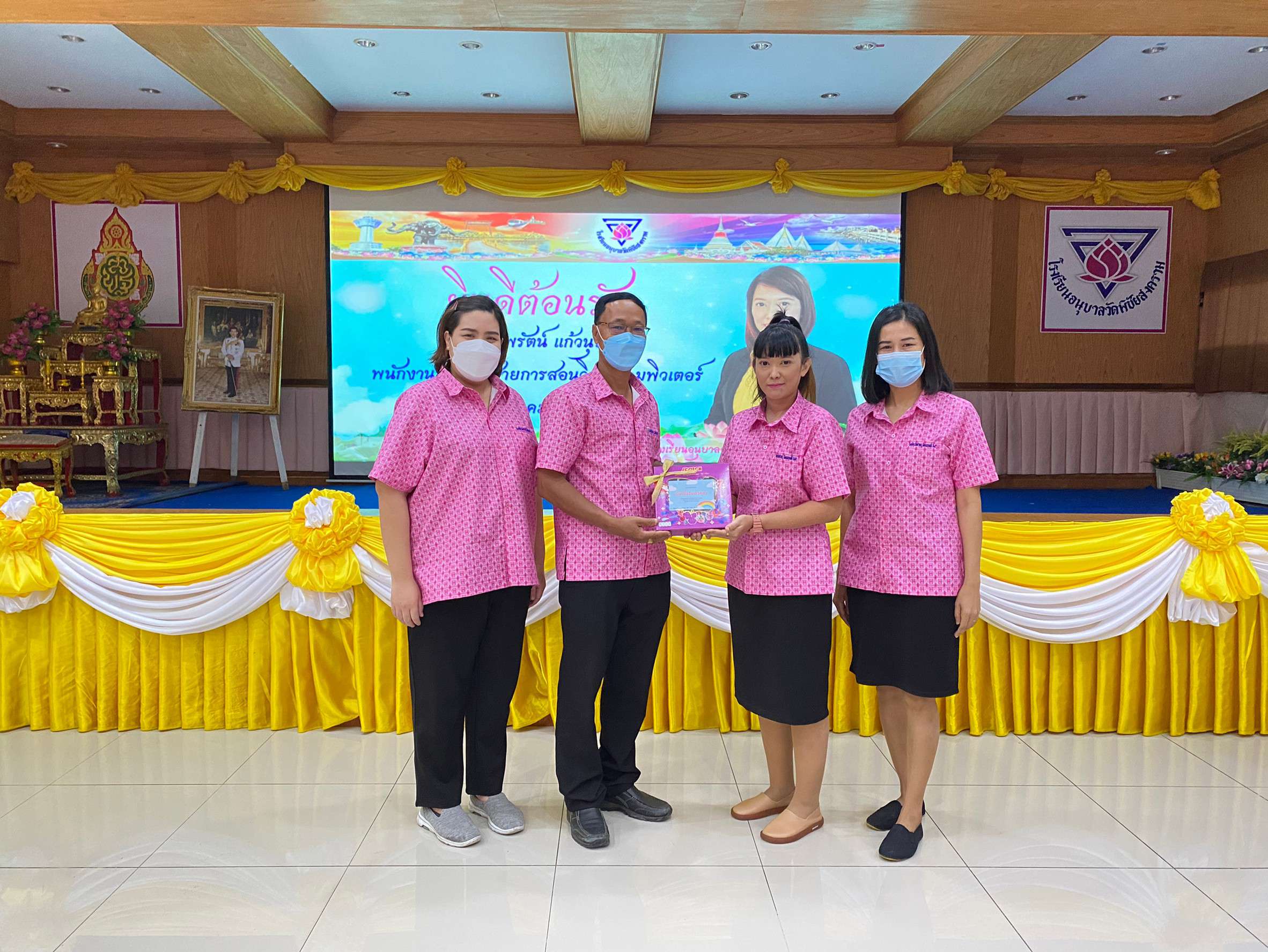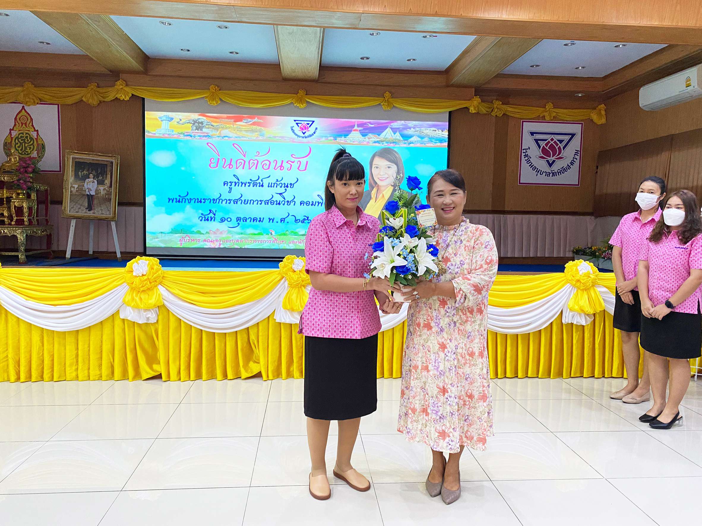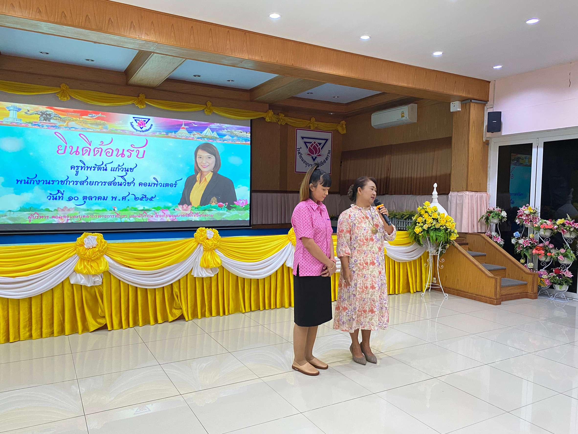 วันจันทร์ที่ 10 ตุลาคม 2565 นำโดยนางรัชนี อุทัยรัตน์ ผู้อำนวยการโรงเรียนวัดตำหรุ มิตรภาพที่ 65 พร้อมด้วยรองผู้อำนวยการโรงเรียนทั้งสองท่านและคณะครูเดินทางไปส่งนางสาวทิพรัตน์ แก้วนุช ตำแหน่ง พนักงานราชการ โรงเรียนวัดตำหรุ มิตรภาพที่ 65 เนื่องจากย้ายไปปฏิบัติหน้าที่การสอน ณ โรงเรียนอนุบาลวัดพิชัยสงคราม โดยมี นายณัฐพล นุชอุดม ผู้อำนวยการโรงเรียนอนุบาลวัดพิชัยสงคราม และคณะครูให้การต้อนรับ ทั้งนี้ได้ร่วมแสดงความยินดีมอบของขวัญและให้กำลังใจกับคุณครู ซึ่งทำให้เกิดบรรยากาศอบอุ่น ทางโรงเรียนขอขอบคุณมา ณ โอกาสนี้ S:1