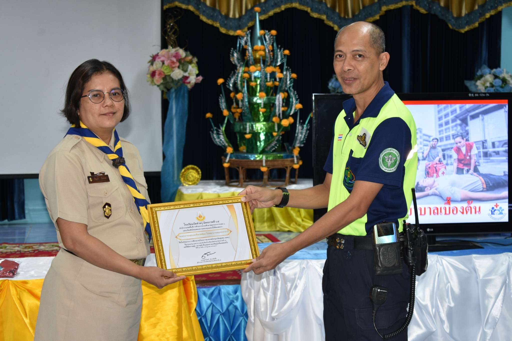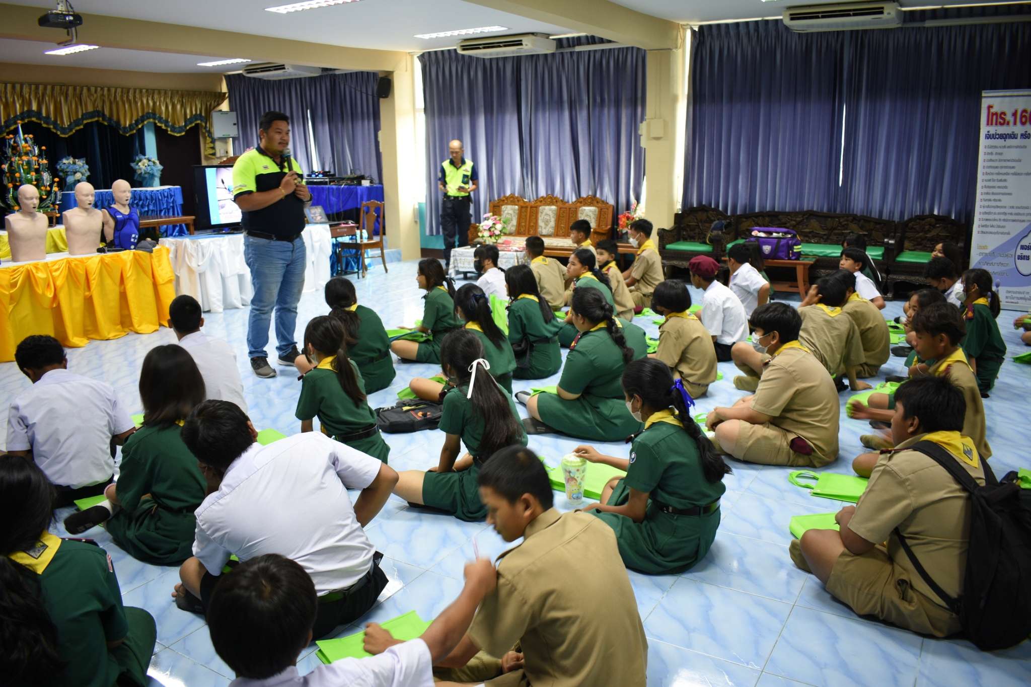 วันจันทร์ที่ 3 กรกฎาคม พ.ศ.2566 โรงเรียนวัดตำหรุ มิตรภาพที่ 65 นำโดย นายสาโรจน์ จำปาศักดิ์ ผู้อำนวยการโรงเรียน พร้อมด้วย นางสาวกิ่งแก้ว สังคะหะ รองผู้อำนวยการโรงเรียน และตัวแทนคณะครู นำนักเรียนเข้าร่วมโครงการอบรมอาสาสมัครฉุกเฉินชุมชน (อฉช.) โดยเทศบาลตำบลบางปู มีการให้ความรู้ ความเข้าใจ ในระบบการแพทย์ฉุกเฉิน และมีทักษะการช่วยเหลือปฐมพยาบาลเบื้องต้นหรือ เมื่อพบผู้ประสบเหตุสามารถแจ้งเหตุขอความช่วยเหลือได้อย่างถูกต้อง เพื่อลดอัตราการสูญเสียแก่ประชาชนซึ่งเป็นทักษะความรู้ที่เป็นประโยชน์อย่างมาก และนำไปใช้ได้จริงในชีวิตประจำวันทางโรงเรียนขอขอบคุณคณะวิทยากรเป็นอย่างสูงมา ณ โอกาสนี้ S:1