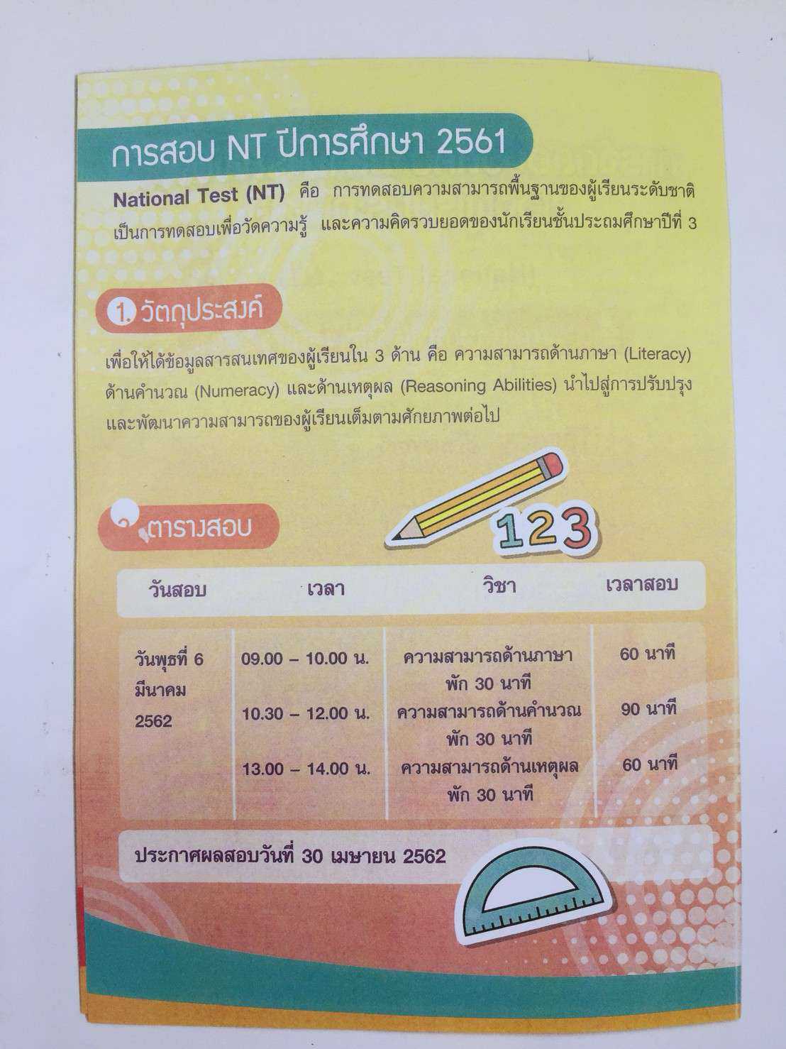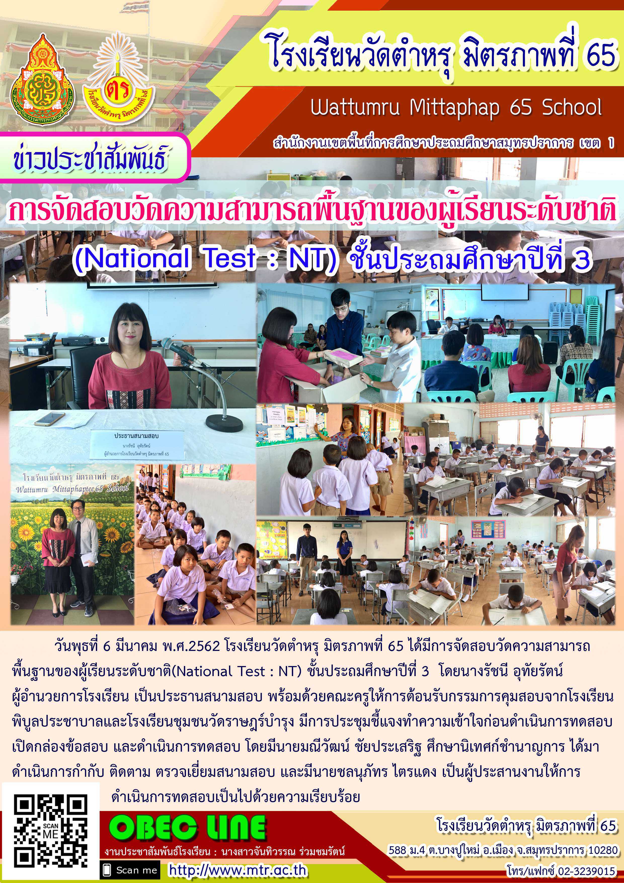 การจัดสอบวัดความสามารถพื้นฐานของผู้เรียนระดับชาติ(National Test : NT) ชั้นประถมศึกษาปีที่ 3