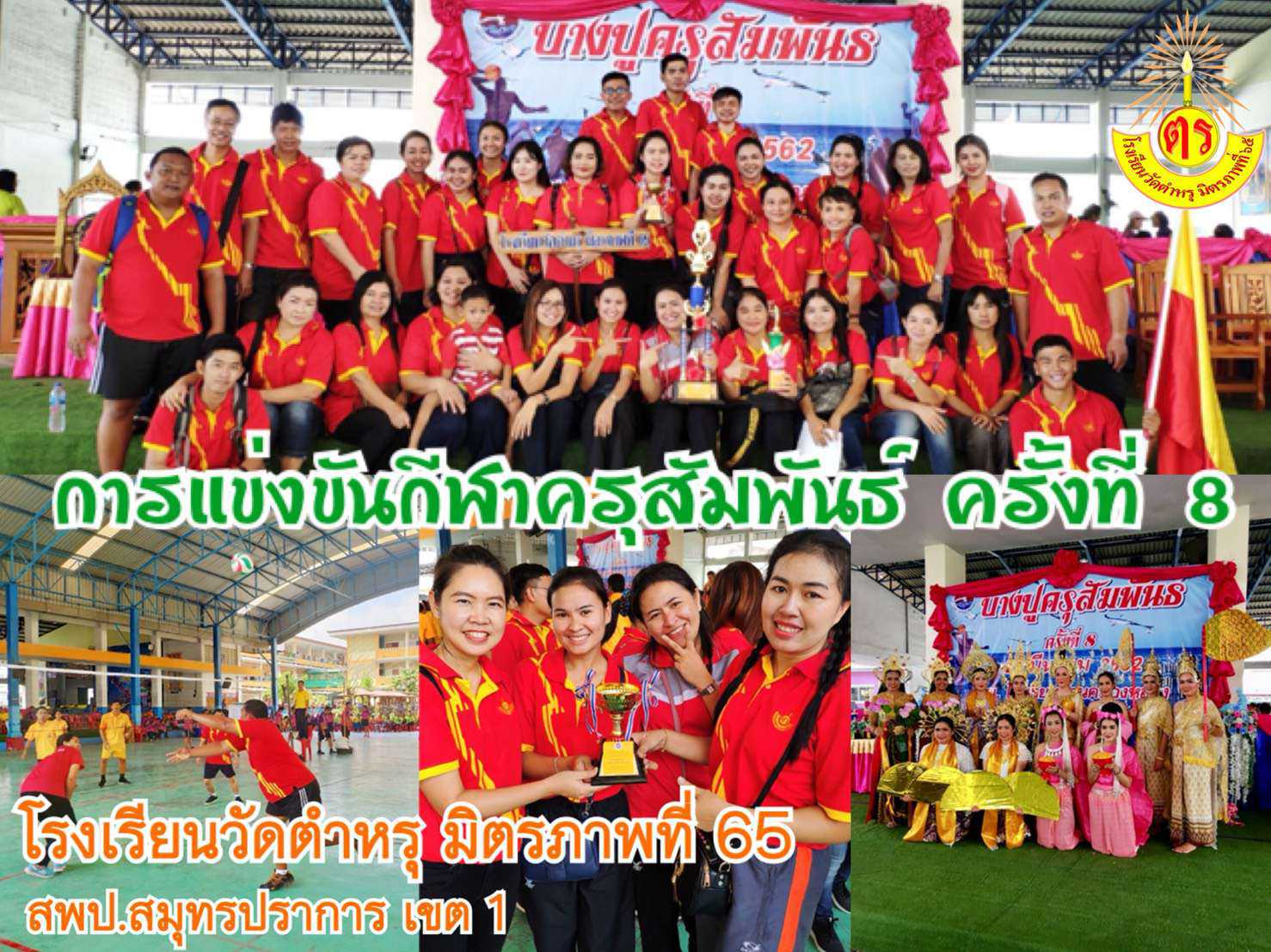 เมื่อวันพฤหัสบดีที่ 21 มีนาคม พ.ศ. 2562 โรงเรียนวัดตำหรุ มิตรภาพที่ 65 ได้นำคณะครูเข้าร่วมกิจกรรมการแข่งขันกีฬาครุสัมพันธ์ ครั้งที่ 8 กลุ่มโรงเรียนบางปู ณ โรงเรียนบ้างคลองหลวง จ.สมุทรปราการ กลุ่มโรงเรียนเมืองบางปู ซึ่งเป็นโรงเรียนระดับประถมศึกษาและขยายโอกาส จำนวน 10 โรงเรียน ร่วมจัดกิจกรรมการแข่งขันกีฬาและงานเลี้ยงสังสรรค์ โดยมีนายปิติชาย ตันปิติ ผู้อำนวยการโรงเรียนเอี่ยมสุรีย์ เป็นประธานในพิธีเปิด โดยกิจกรรมนี้มีวัตถุประสงค์เพื่อให้คณะครู มีสุขภาพพลามัยแข็งแรง รักการออกกำลังกาย รู้จักการเป็นผู้นำ ผู้ตามที่ดี มีน้ำใจนักกีฬา รู้แพ้ รู้ชนะ รู้อภัย และเสริมสร้างความสามัคคีในหมู่คณะ สำหรับประเภทกีฬาที่จัดแข่งขัน ได้แก่ กีฬาวอลเลย์บอล วิ่งกระสอบ และวิ่งซูเปอร์แมน นอกจากนี้ยังมีการพบปะเลี้ยงสังสรรค์และการแสดงจากคณะครูของแต่ละโรงเรียนอีกด้วย S:1