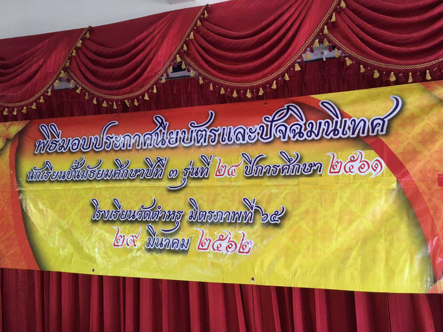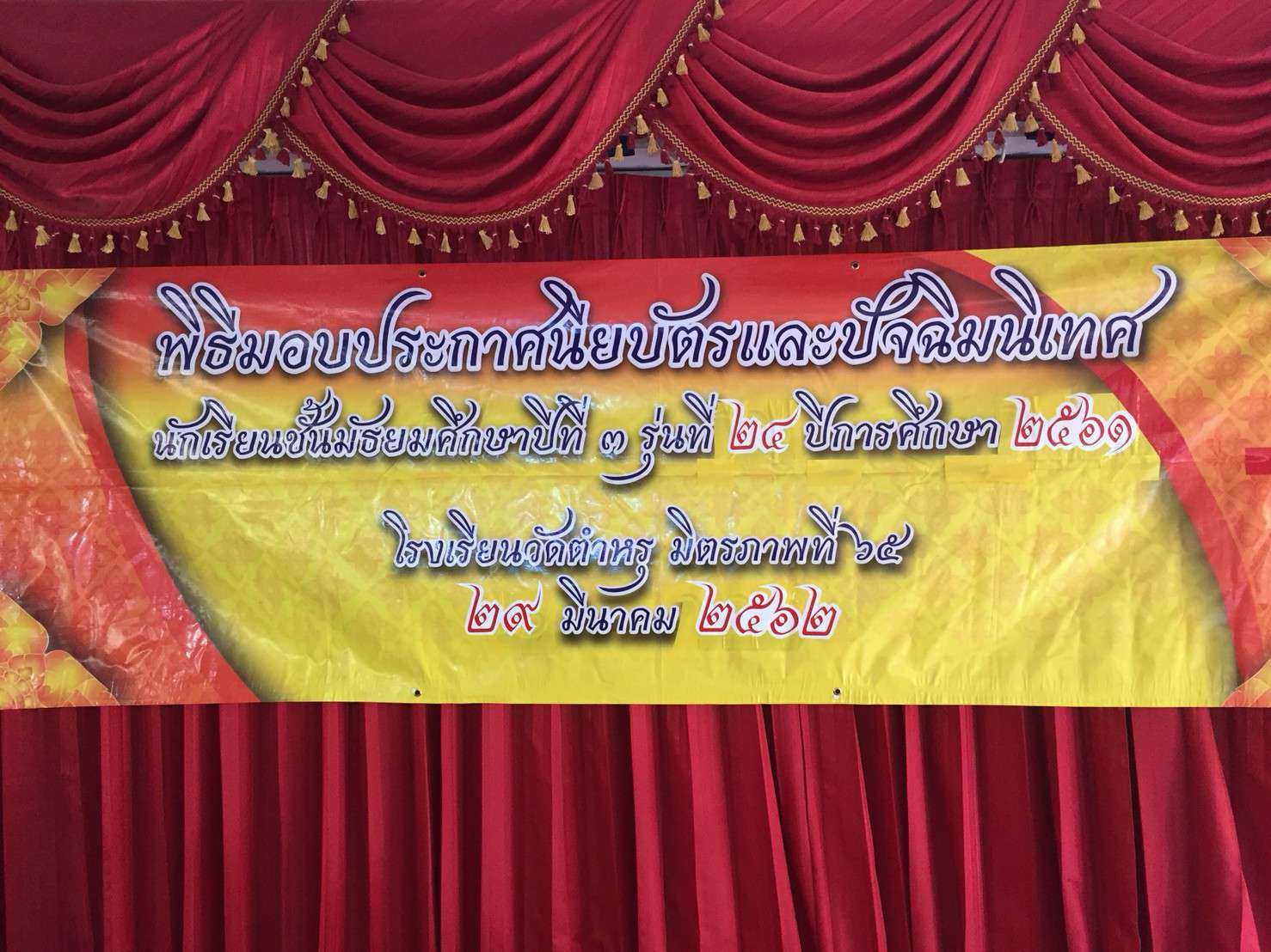 วันที่ 29 มีนาคม พ.ศ.2562 โรงเรียนวัดตำหรุ มิตรภาพที่ 65 ได้จัดงานพิธีมอบประกาศนียบัตรและปัจฉิมนิเทศ นักเรียนชั้นมัธยมศึกษาปีที่ 3 ประจำปีการศึกษา 2561 รุ่นที่ 24 ณ ห้องประชุมอาคาร 6 ของโรงเรียน โดยมีนางรัชนี อุทัยรัตน์ ผู้อำนวยการโรงเรียน เป็นประธานในพิธี พร้อมด้วยคณะครูเข้าร่วมงาน ท่านผู้อำนวยการมอบประกาศนียบัตรให้แก่นักเรียนที่จบการศึกษาในระดับชั้นมัธยมศึกษาปีที่ 3 จำนวน 73 คน ประธานในพิธีให้โอวาทแก่นักเรียน มีตัวแทนนักเรียนกล่าวความรู้สึก และพิธีขอขมาครูและผูกข้อมือ จากนั้นนักเรียนร่วมกันร้องเพลงพระคุณที่สาม และเพลงมาร์โรงเรียน เพื่อเป็นขวัญกำลังใจและเป็นเกียรติแก่นักเรียนที่สำเร็จการศึกษาในระดับมัธยมศึกษาตอนต้น S:1