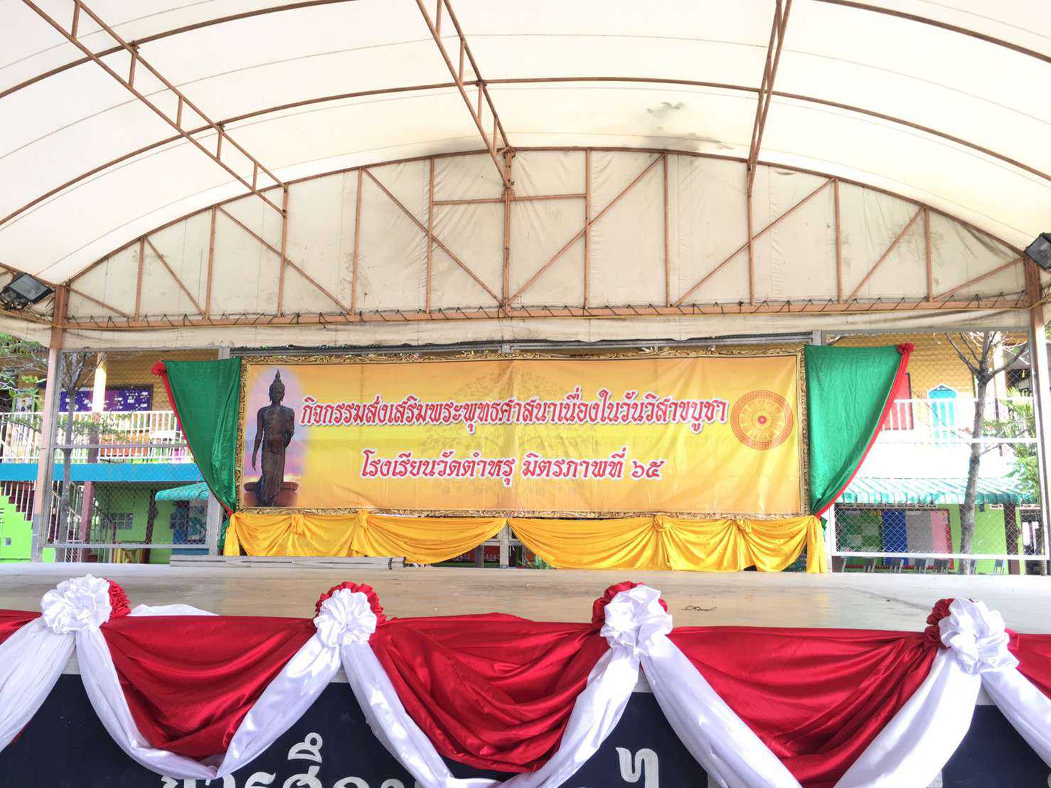 วันศุกร์ที่ 17 พฤษภาคม พ.ศ. 2562 โรงเรียนวัดตำหรุ มิตรภาพที่ 65 ได้จัดกิจกรรมวันสำคัญทาง พระพุทธศาสนา เนื่องในวันวิสาขบูชาและวันต้นไม้แห่งชาติ ณ บริเวณสนามกีฬาของโรงเรียน โดยมีนางรัชนี อุทัยรัตน์ ผู้อำนวยการโรงเรียน เป็นประธานในพิธี คณะครูและนักเรียนร่วมกันบริหารจิตภาวนา เพื่อถวายเป็นพุทธบูชา มีกิจกรรมให้ความรู้ตอบคำถามชิงรางวัล ประธานในพิธีพร้อมคณะครูและนักเรียนร่วม กันปลูกต้นไม้ เพิ่มพูนทรัพยากรธรรมชาติ หลังจากนั้นคณะครูและนักเรียนร่วมกันเวียนเทียน เป็นการทำนุบำรุง สืบต่ออายุพระพุทธศาสนาให้ดำรงอยู่คู่สังคมไทยสืบไป S:1