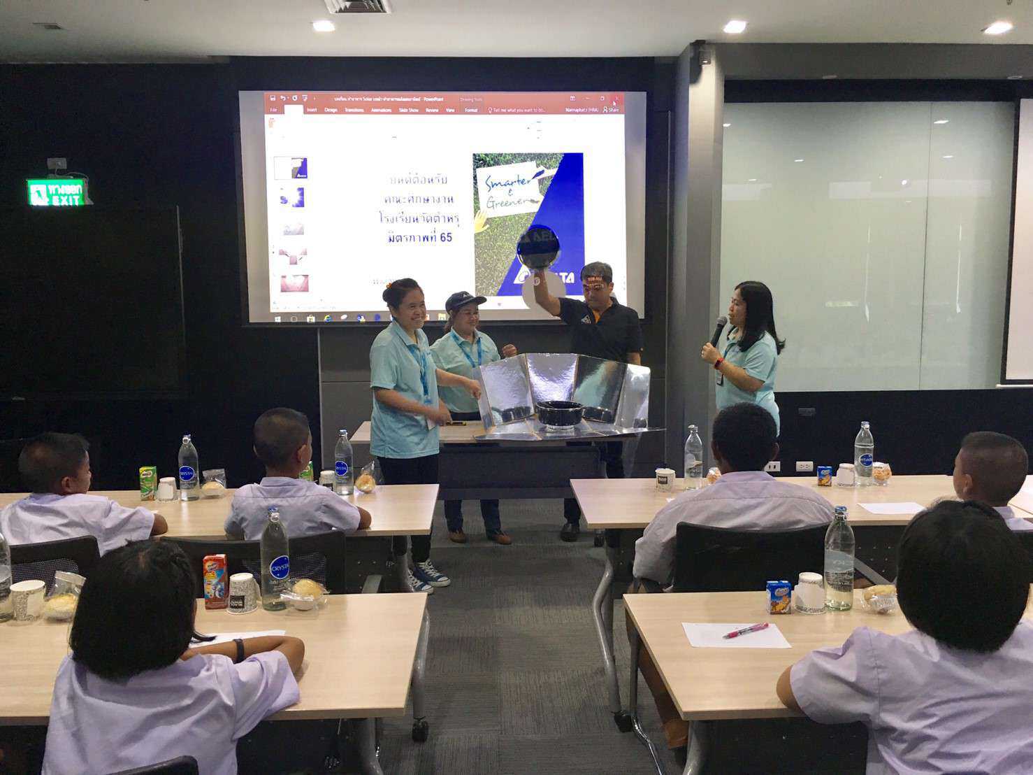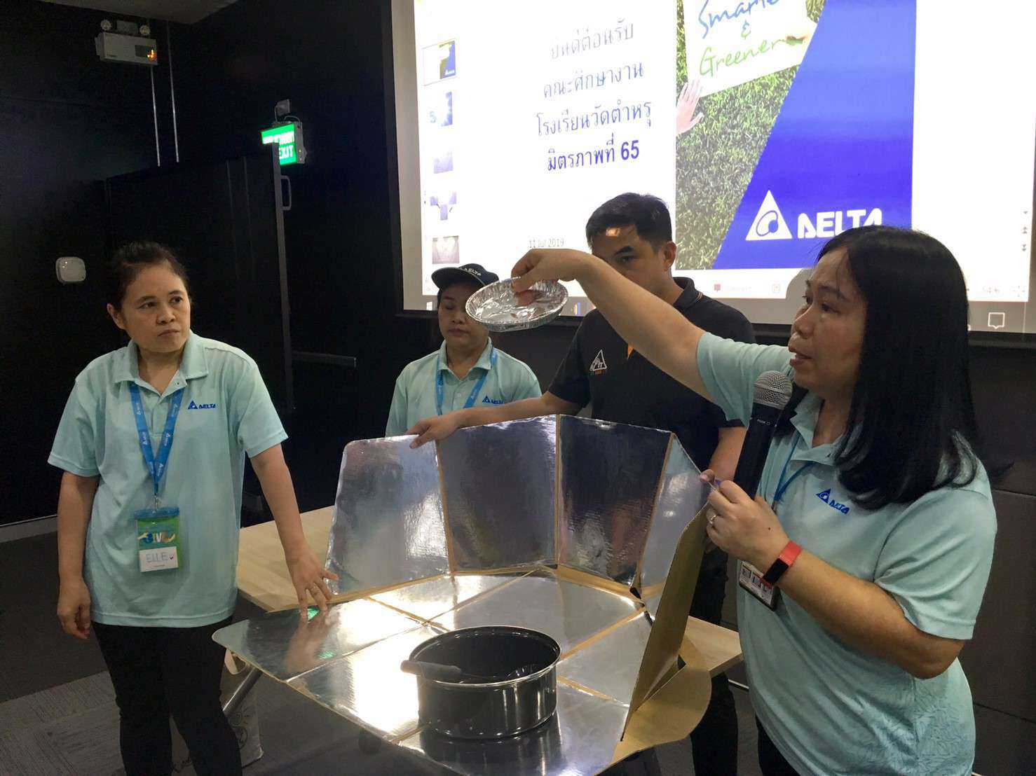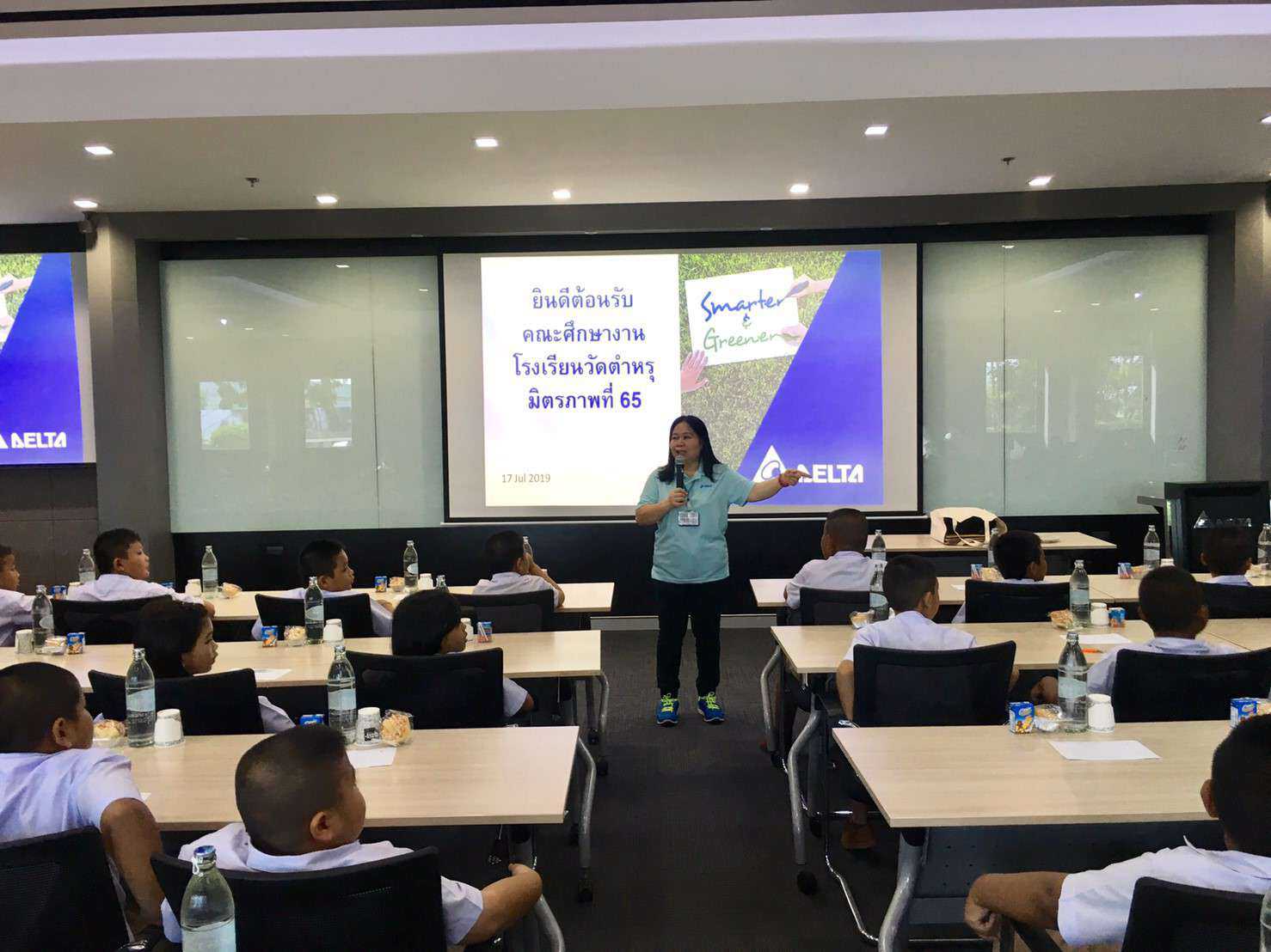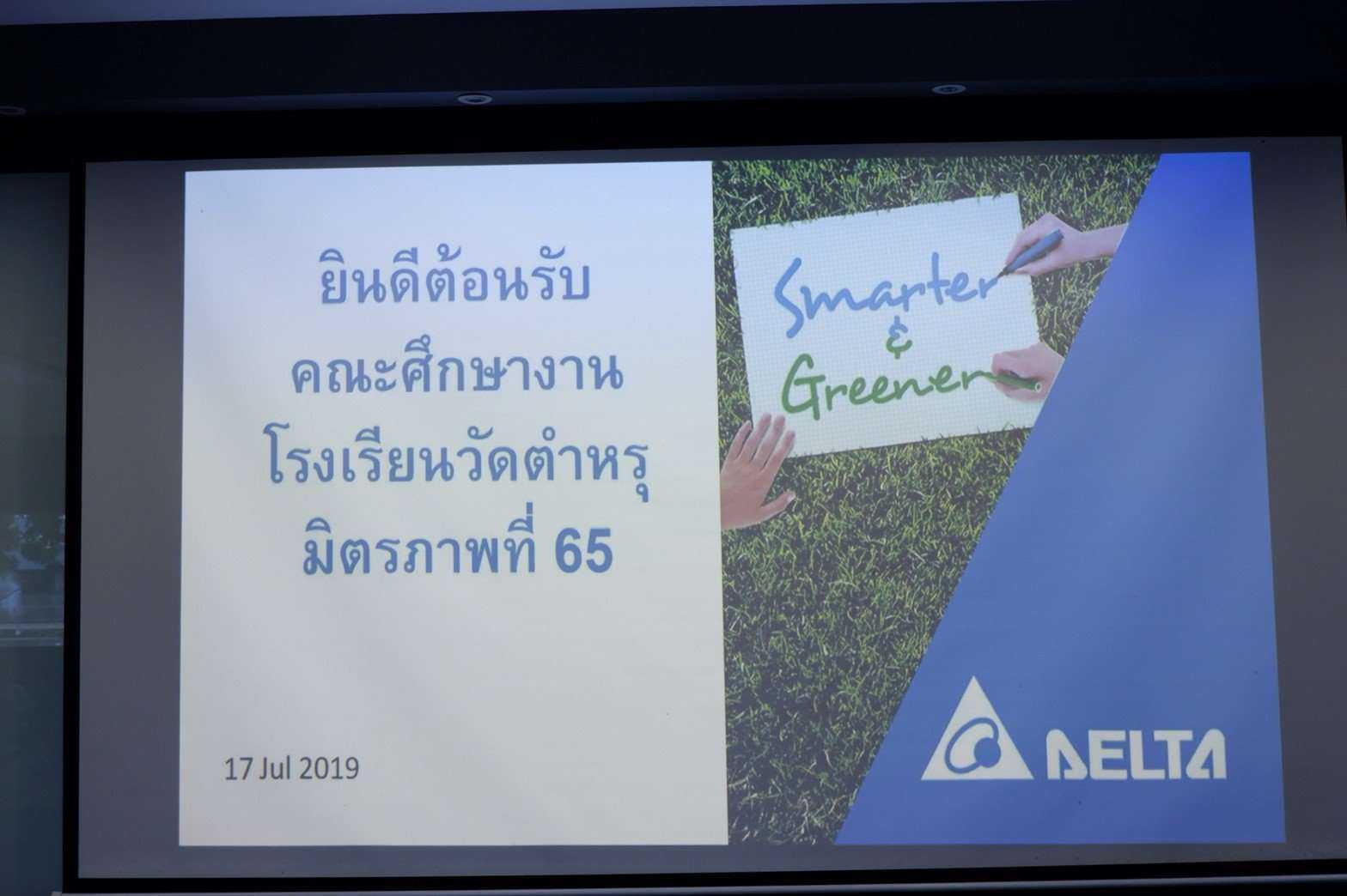 วันพฤหัสบดีที่ 11 กรกฎาคม พ.ศ. 2562 คณะครูโรงเรียนวัดตำหรุ มิตรภาพที่ 65 ได้นำนักเรียนระดับชั้นประถมศึกษาปีที่ 5 เยี่ยมชมศึกษางานการประยุกต์ใช้พลังงานทดแทนในชีวิตประจำวันและการจัดการอาคารเขียว ณ บริษัท เดลต้า อีเลคโทรนิคส์ (ประเทศไทย) จำกัด (มหาชน) จ. สมุทรปราการ โดยมีคุณยงยุทธ ภักตร์ดวงจันทร์ ผู้อำนวยการ แผนกบริหารและทรัพยากรบุคคลกล่าวต้อนรับ เนื่องจากทางบริษัทมีกิจกรรมเปิดบ้าน (Open House)ให้กับโรงเรียนได้นำนักเรียนเข้าศึกษาดูงานเกี่ยวกับการจัดการพลังงาน การปรุงอาหารด้วยพลังงานแสงอาทิตย์ การปลูกผักในพื้นที่อาคาร(พื้นที่จำกัด) และการจัดการอาคารเขียว เพื่อเป็นแนวทางให้นักเรียนสามารถนำไปประยุกต์ใช้ให้เหมาะสมกับสถานการณ์ที่โลกมีการเปลี่ยนแปลงทางด้านสภาพแวดล้อมและการใช้พลังงานทดแทน S:1