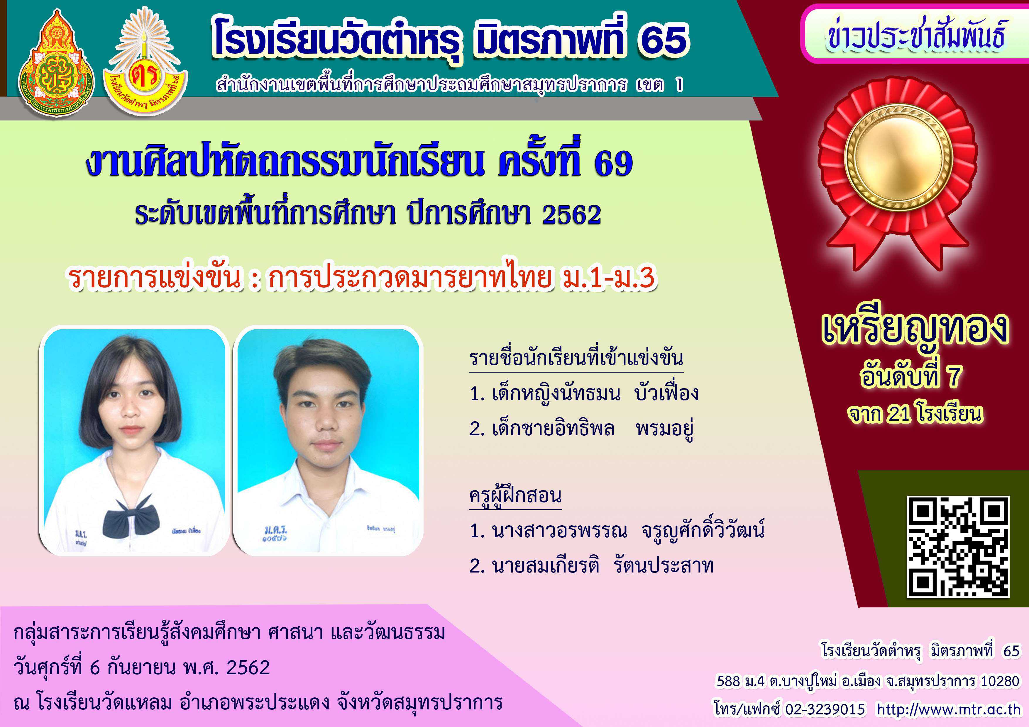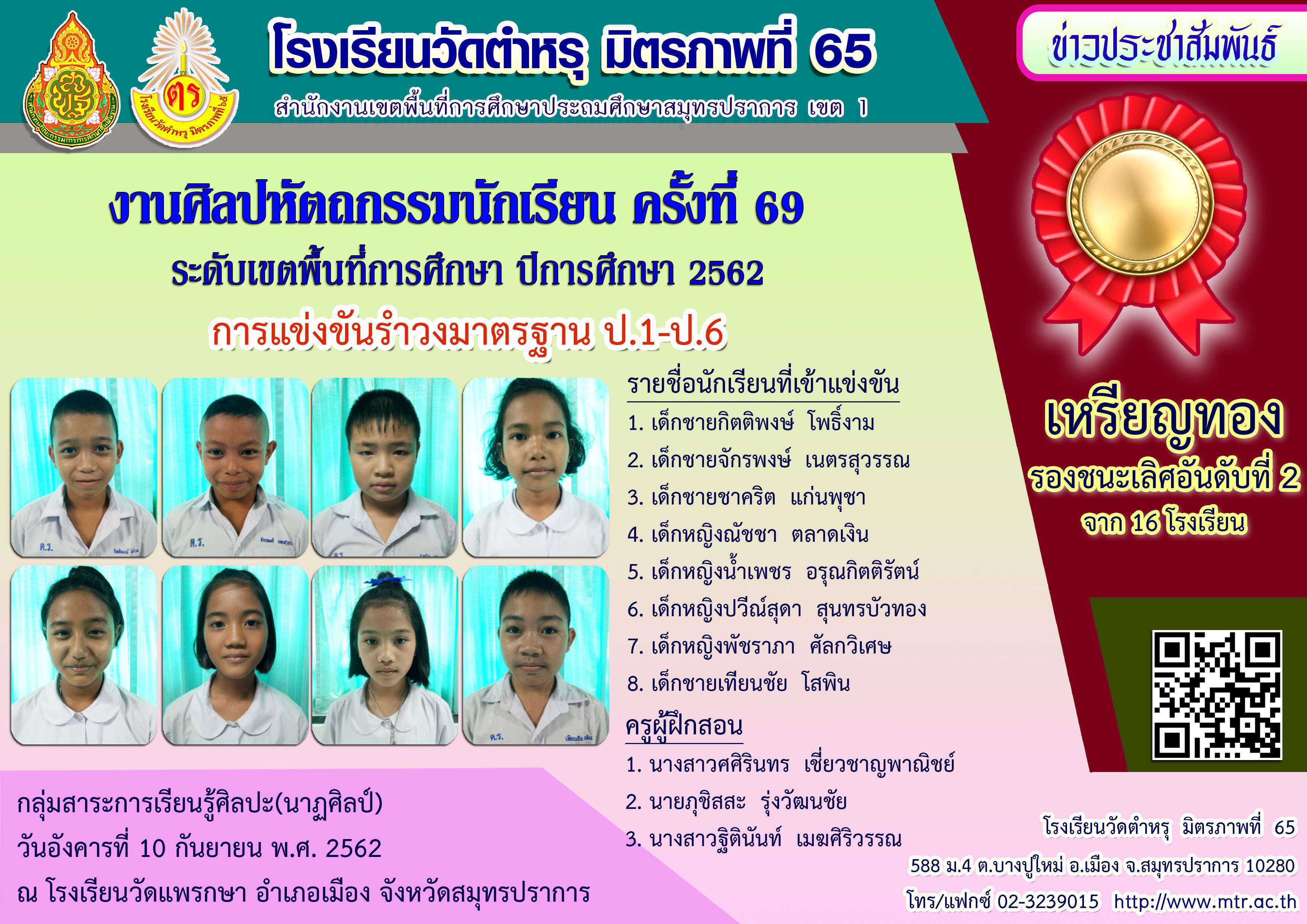 งานศิลปหัตถกรรมนักเรียน ครั้งที่ 69 กลุ่มสาระการเรียนรู้ศิลปะ(นาฏศิลป์)