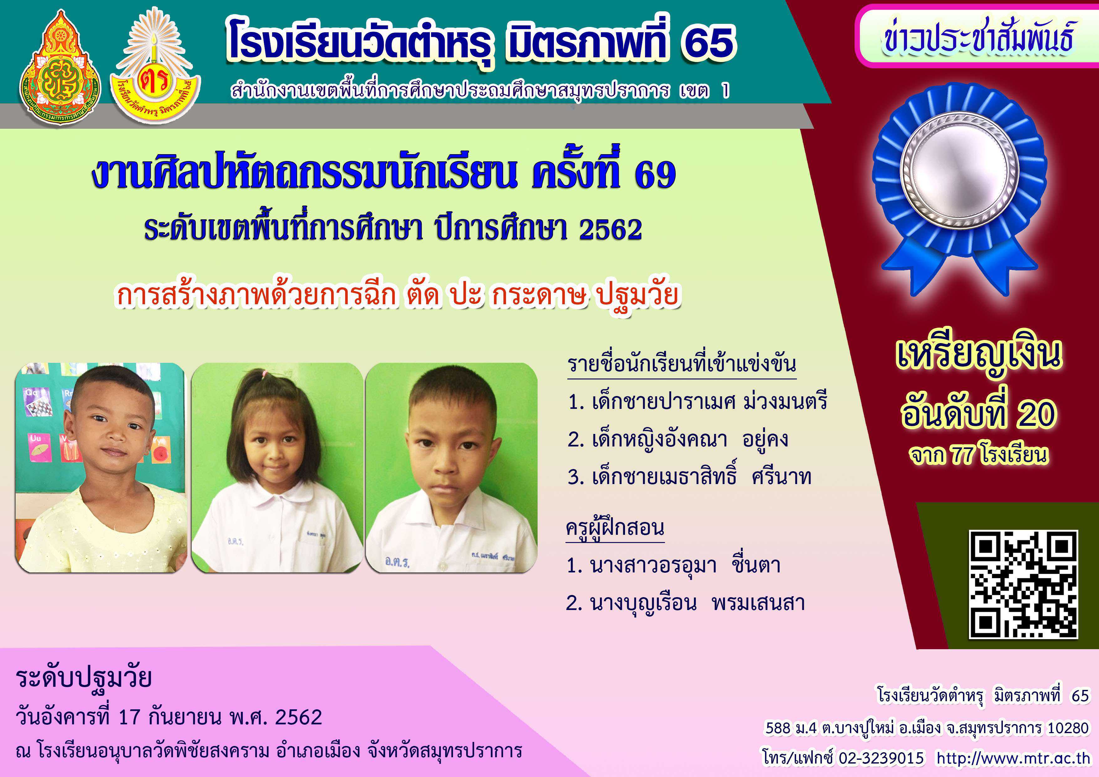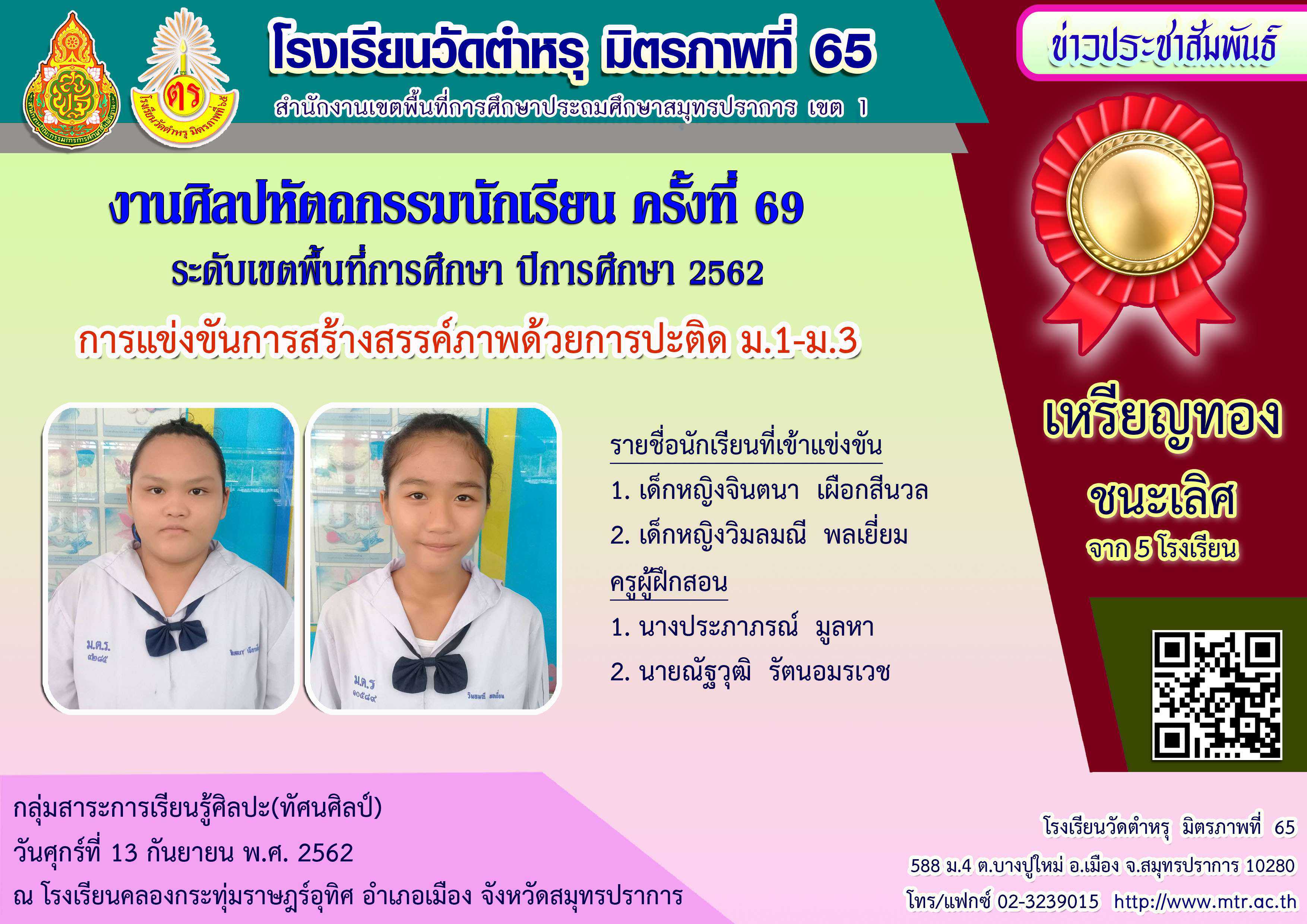 งานศิลปหัตถกรรมนักเรียน ครั้งที่ 69 กลุ่มสาระการเรียนรู้ศิลปะ(ทัศนศิลป์)