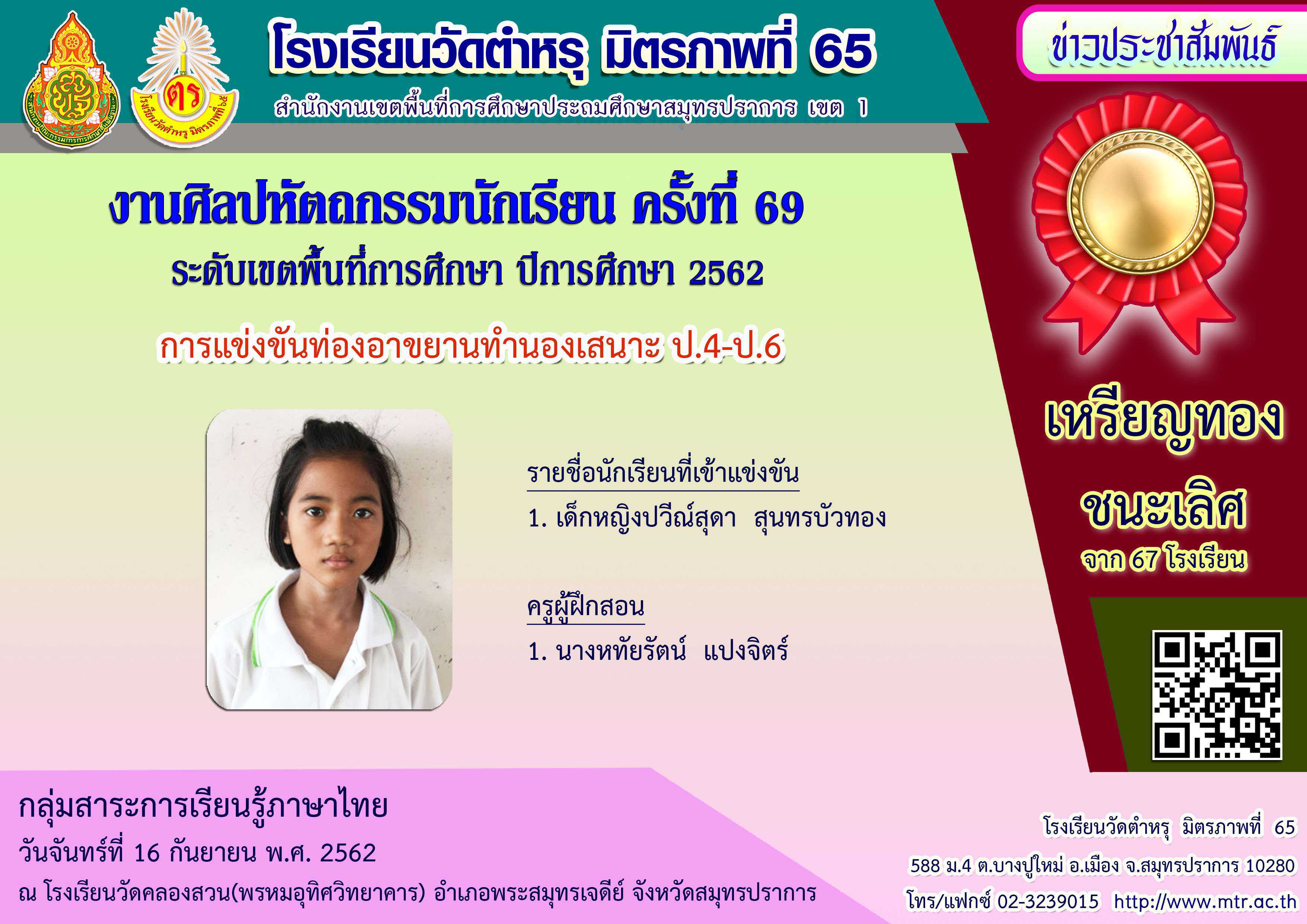 งานศิลปหัตถกรรมนักเรียน ครั้งที่ 69 กลุ่มสาระการเรียนรู้ภาษาไทย