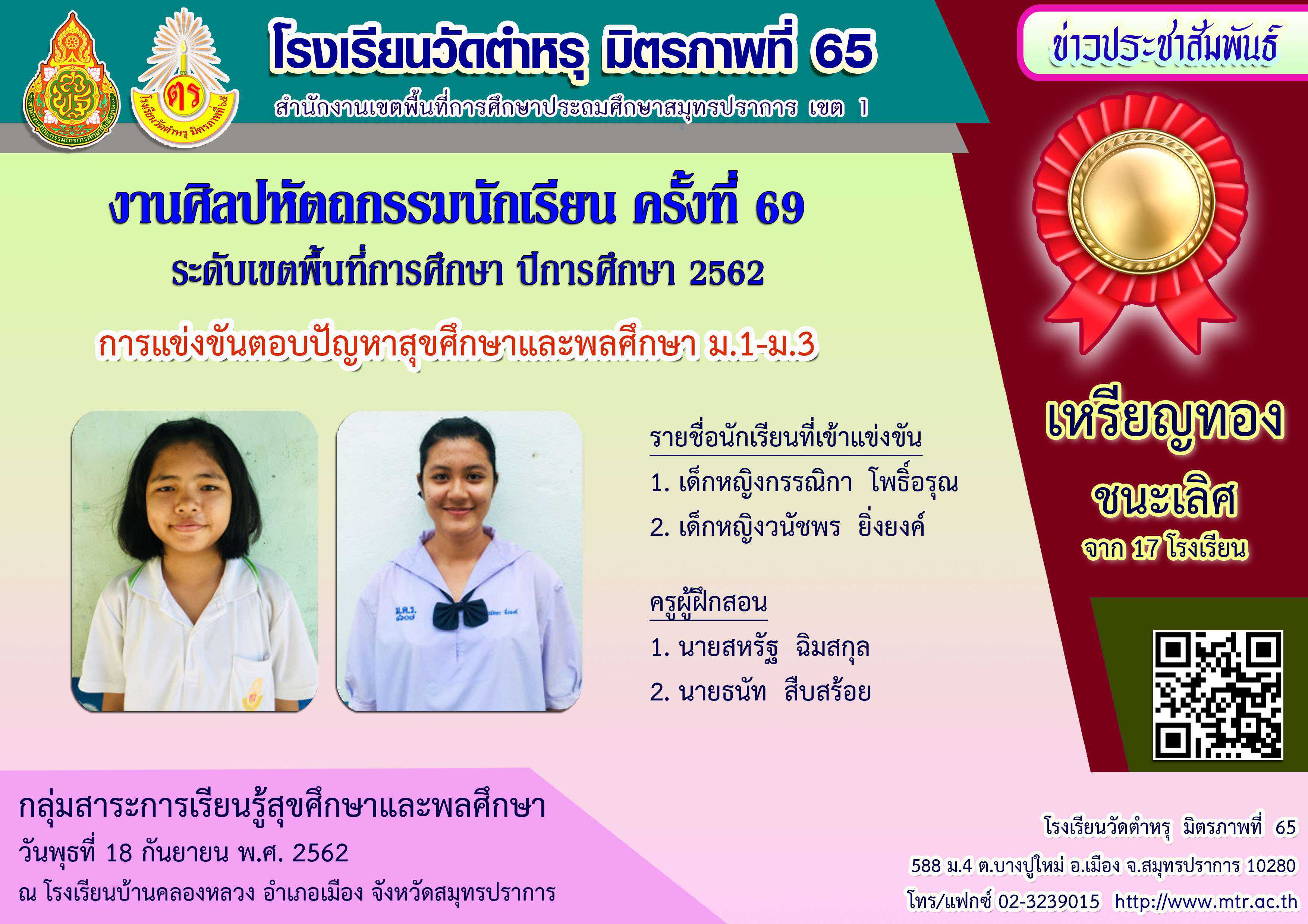 งานศิลปหัตถกรรมนักเรียน ครั้งที่ 69 กลุ่มสาระการเรียนรู้สุขศึกษาและพลศึกษา