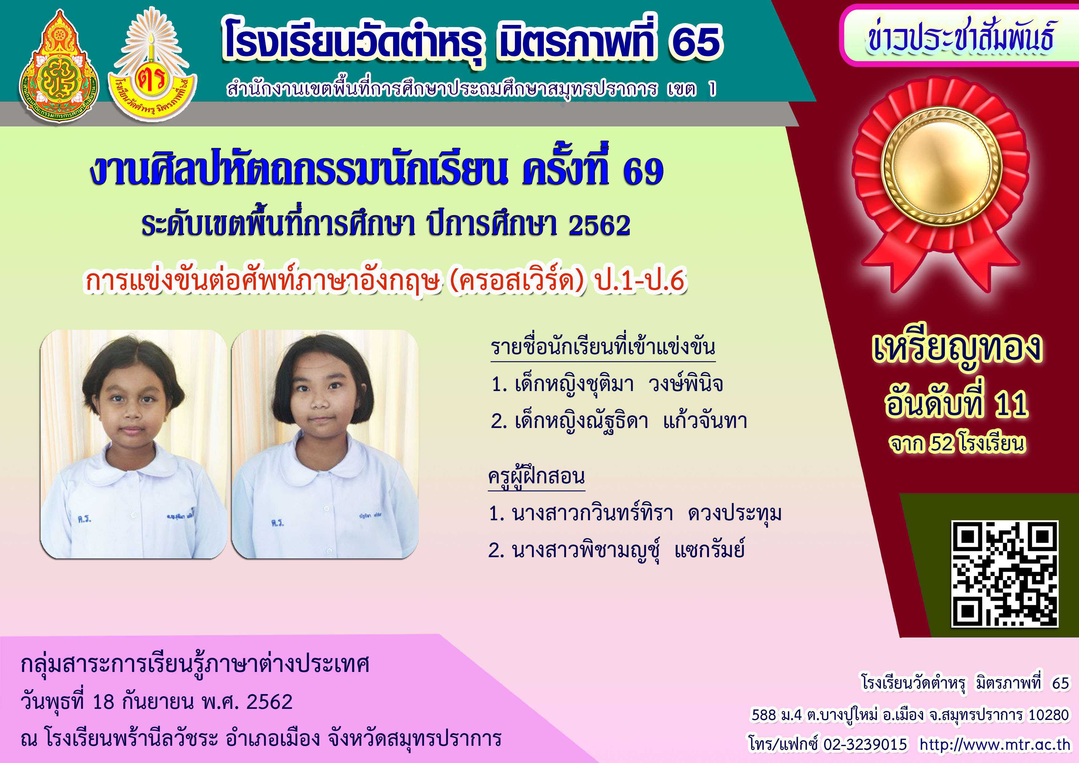 งานศิลปหัตถกรรมนักเรียน ครั้งที่ 69 กลุ่มสาระการเรียนรู้ภาษาต่างประเทศ
