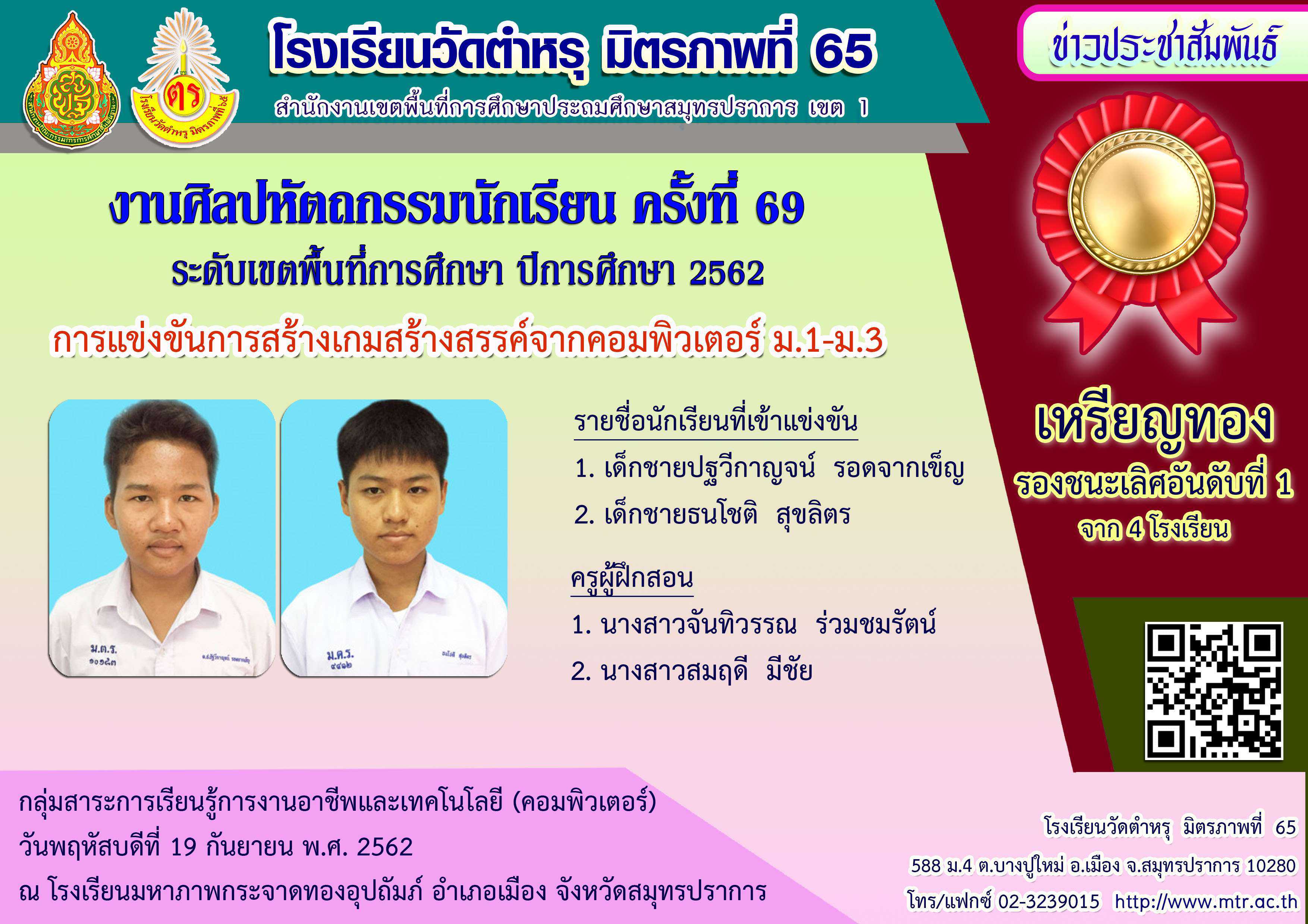 งานศิลปหัตถกรรมนักเรียน ครั้งที่ 69 กลุ่มสาระการเรียนรู้การงานอาชีพและเทคโนโลยี (คอมพิวเตอร์)