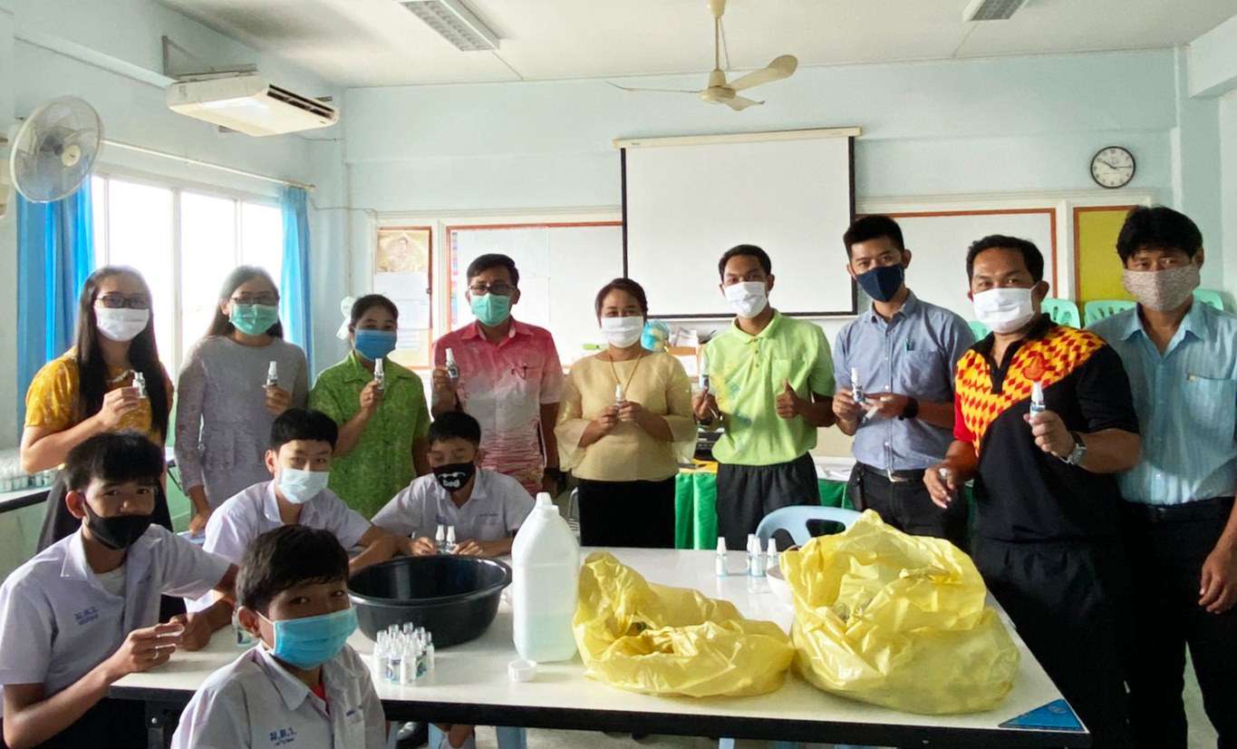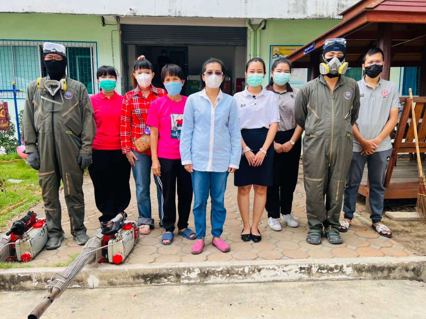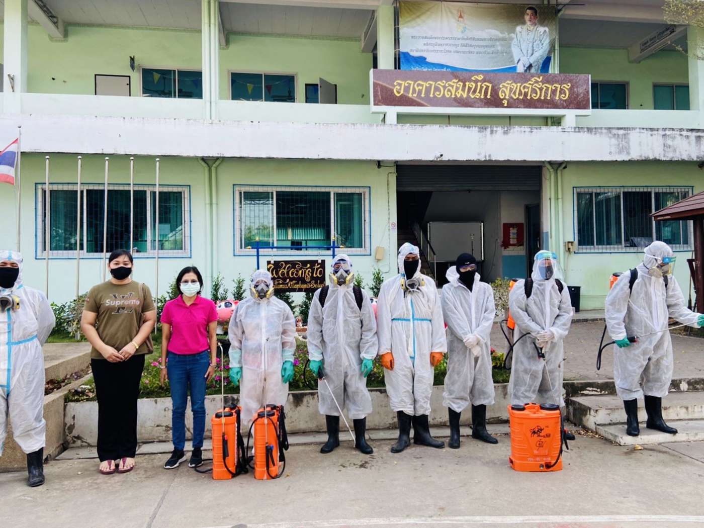 เทศบาลตำบลบางปู จังหวัดสมุทรปราการ มาฉีดพ่นน้ำยาฆ่าเชื้อไวรัสโควิด-19 ภายในห้องเรียน