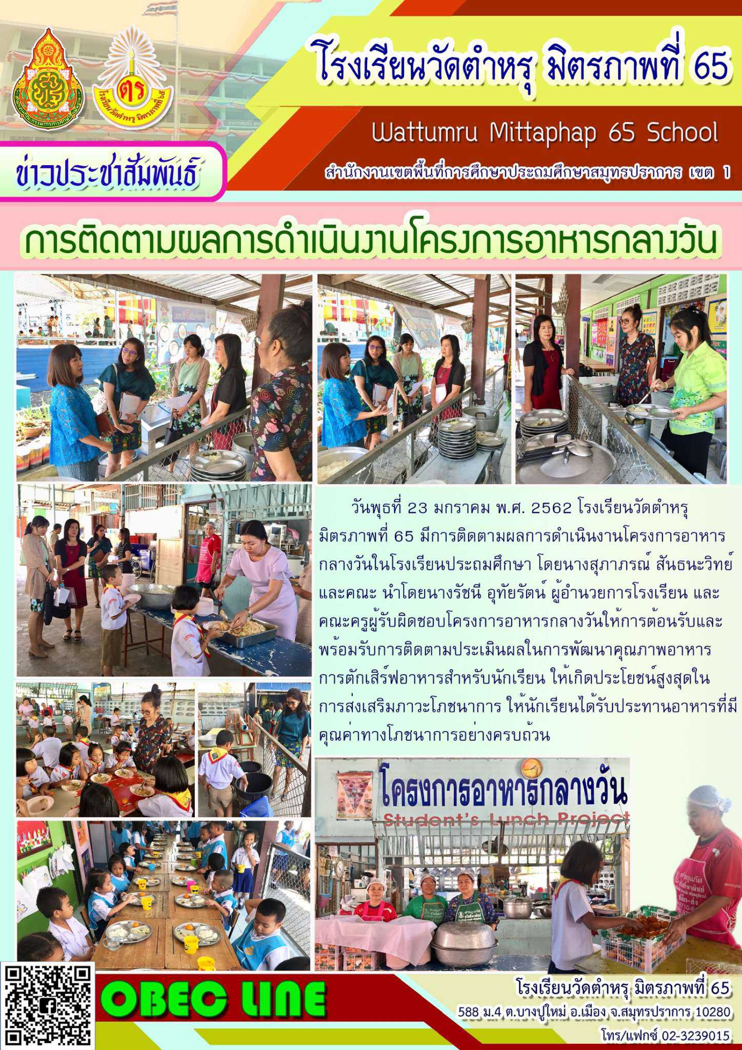 การติดตามผลการดำเนินงานโครงการอาหารกลางวัน