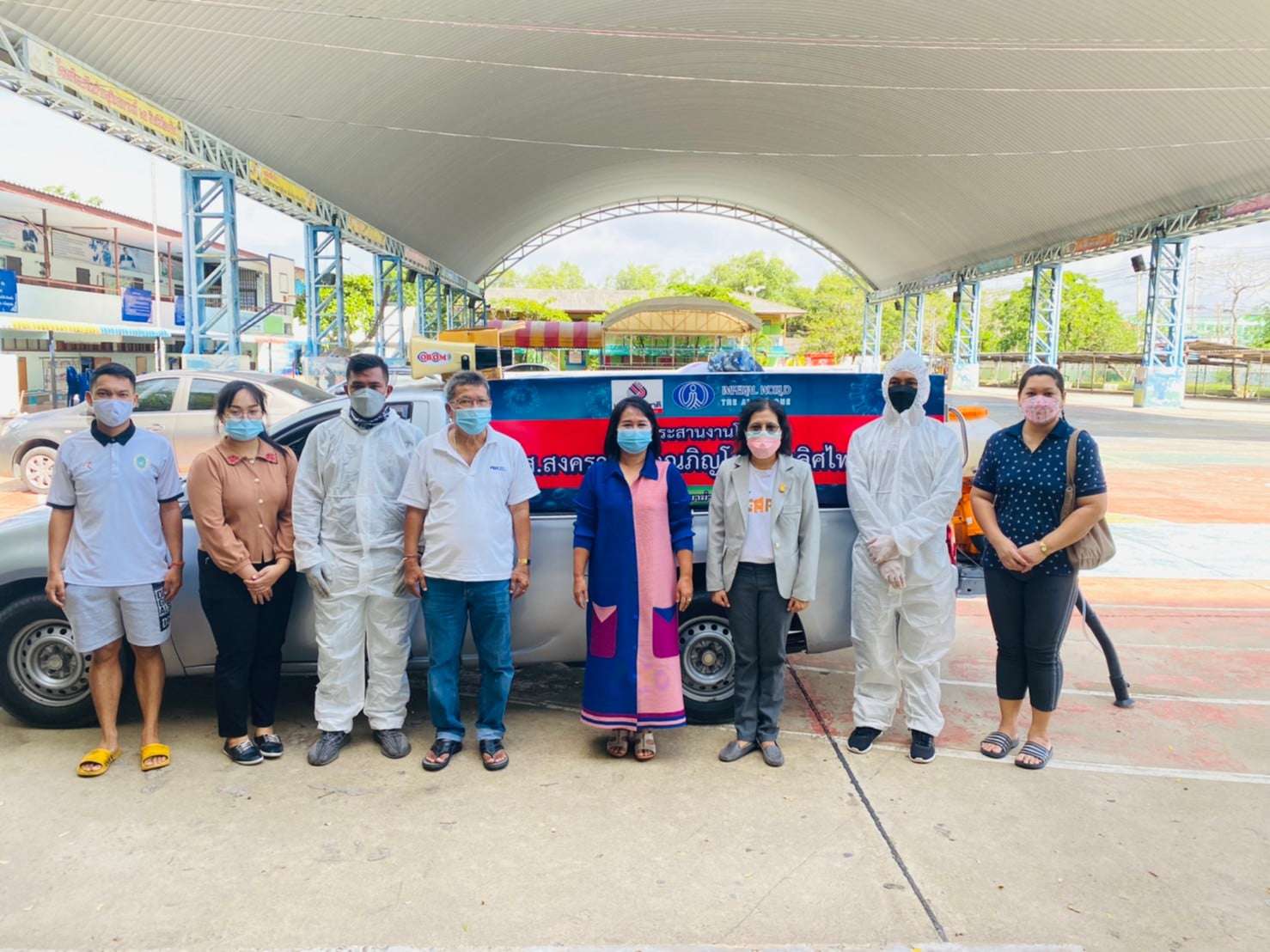 เจ้าหน้าที่จากองค์การบริหารส่วนจังหวัดสมุทรปราการ มาฉีดพ่นน้ำยาฆ่าเชื้อไวรัสโควิด-19