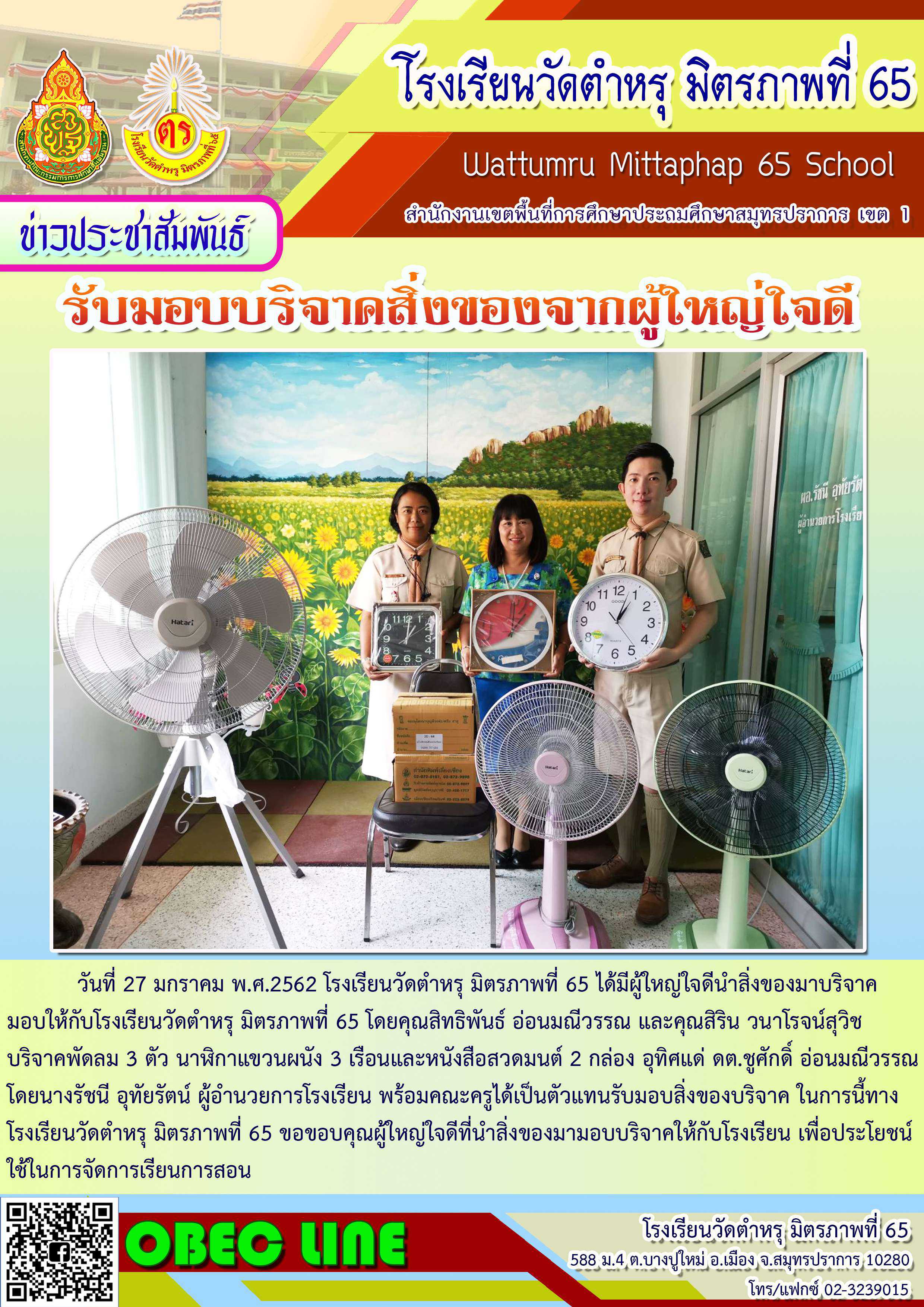 รับมอบบริจาคสิ่งของจากผู้ใหญ่ใจดี