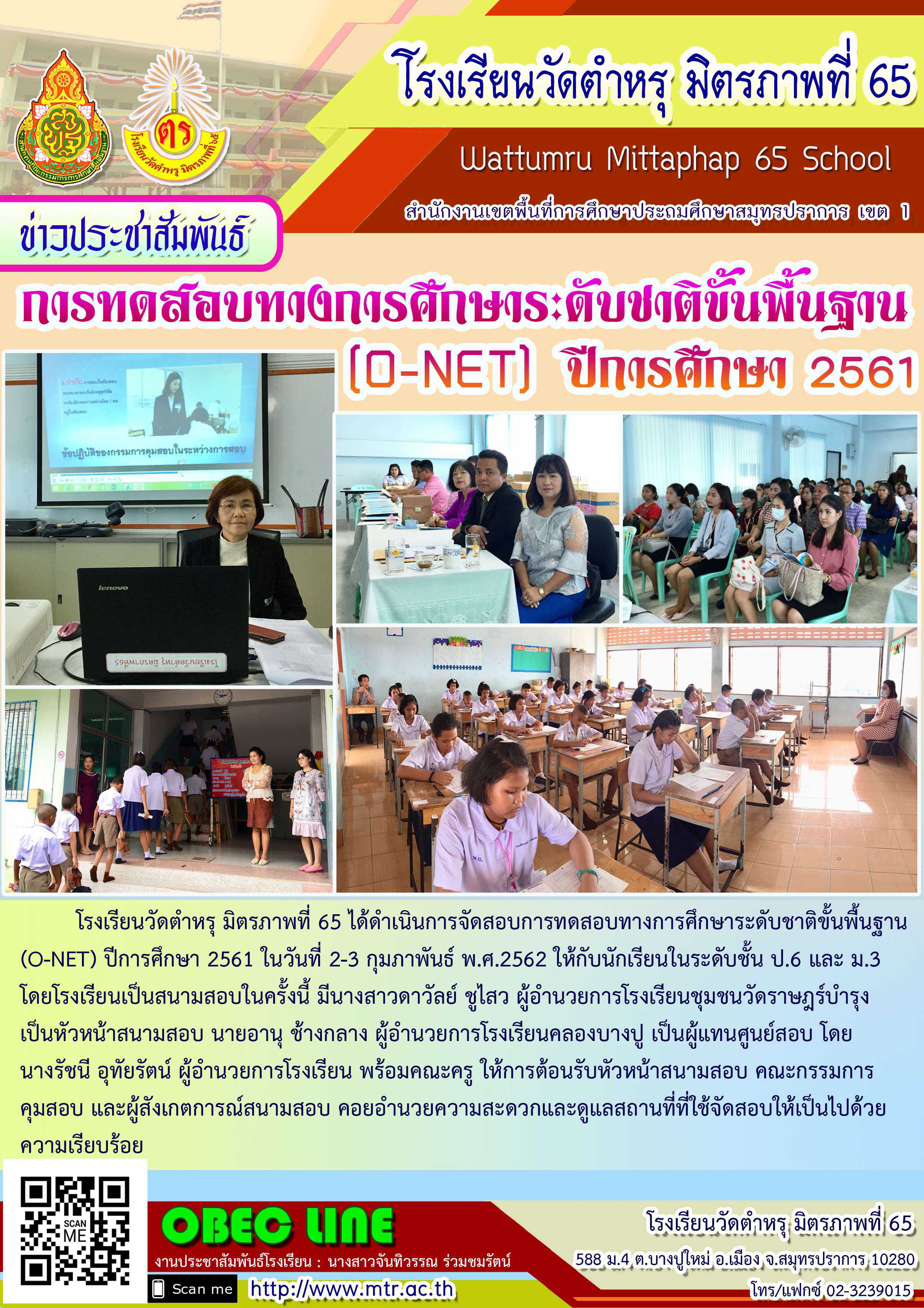 การสอบ O-NET ประจำปีการศึกษา 2562