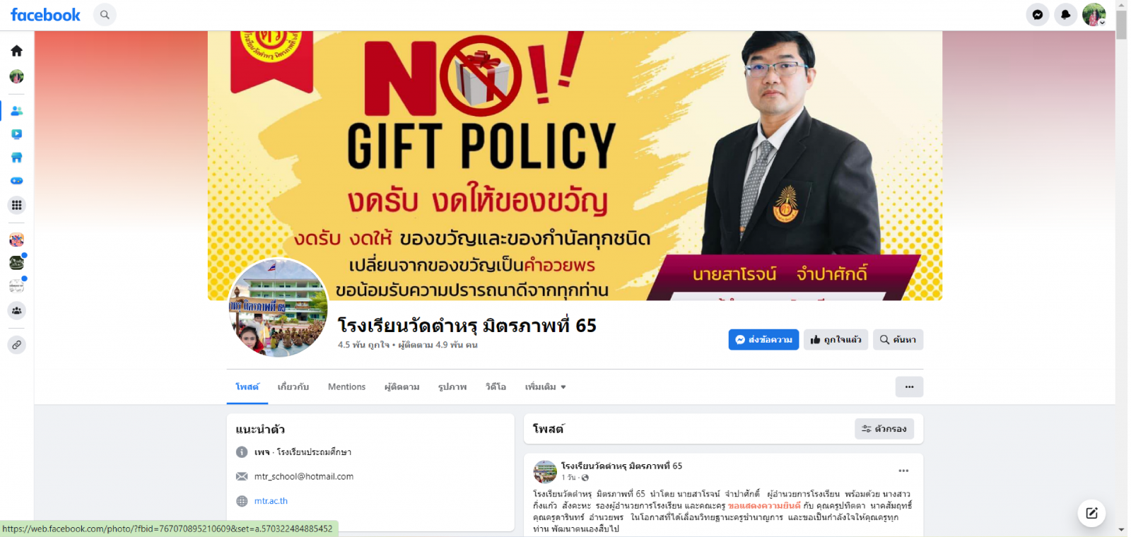 คลิกเข้าสู่ Facebook Fanpage โรงเรียนวัดตำหรุ มิตรภาพที่ 65