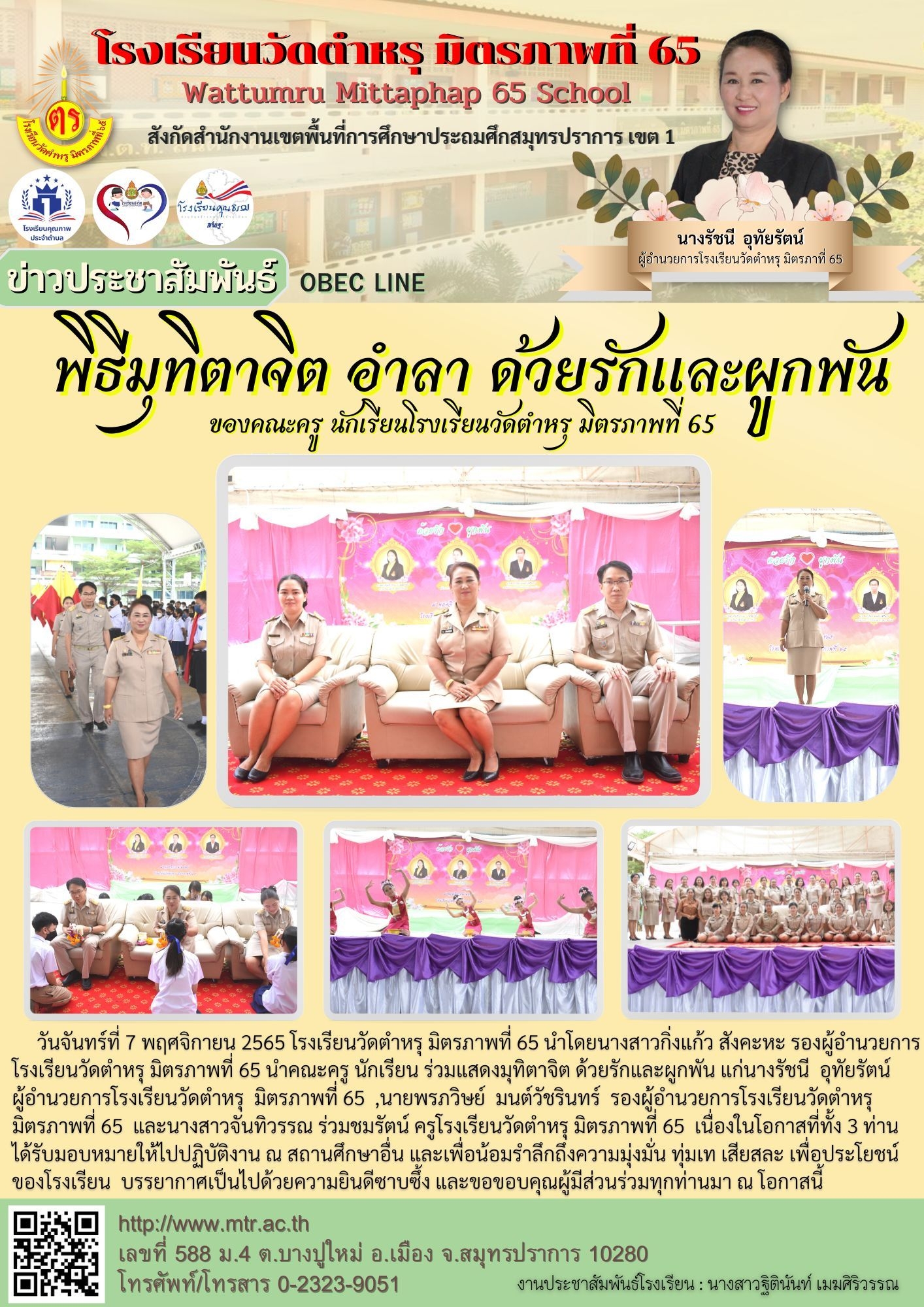 พิธีมุธิตาจิต อำลา ด้วยรักและผูกพัน ของคณะครู นักเรียนโรงเรียนวัดตำหรุ มิตรภาพที่ 65