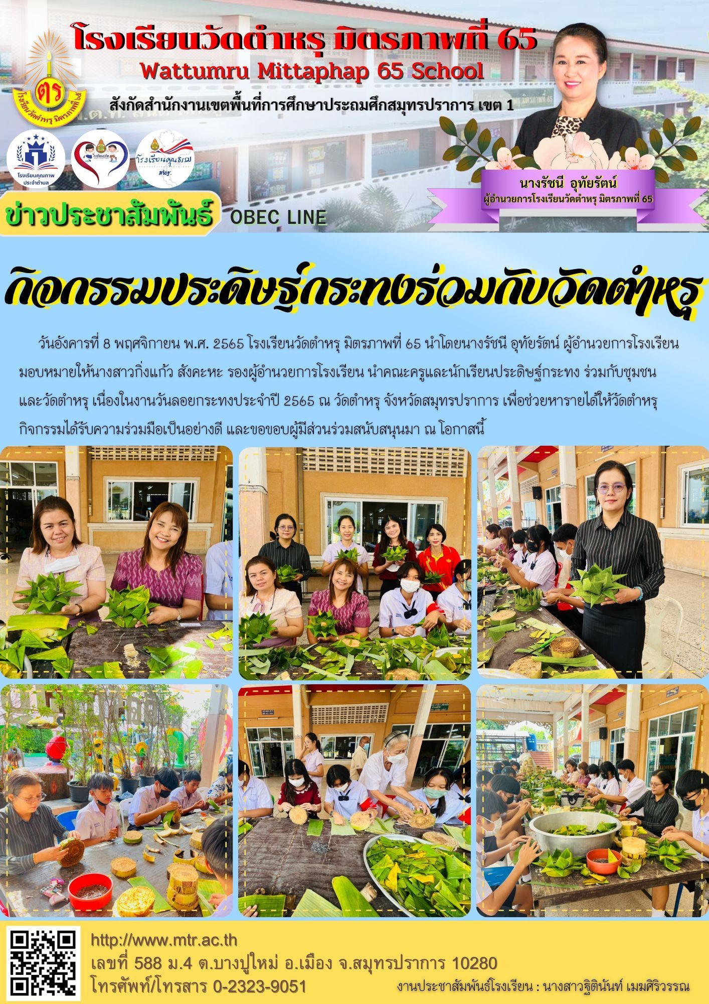 กิจกรรมประดิษฐ์กระทงร่วมกับวัดตำหรุ ปี 2565