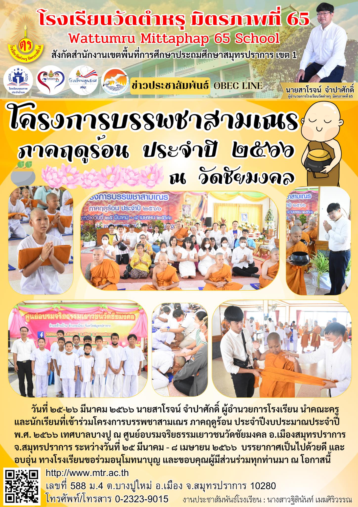 โครงการบรรพชาสามเณร ภาคฤดูร้อน ประจำปี 2566 ณ วัดชัยมงคล