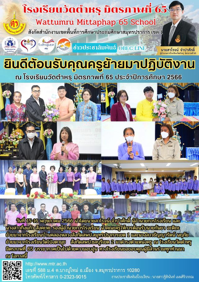 ยินดีต้อนรับคุณครูย้ายมาปฏิบัติงาน ณ โรงเรียนวัดตำหรุ มิตรภาพที่ 65 ประจำปีการศึกษา 2566