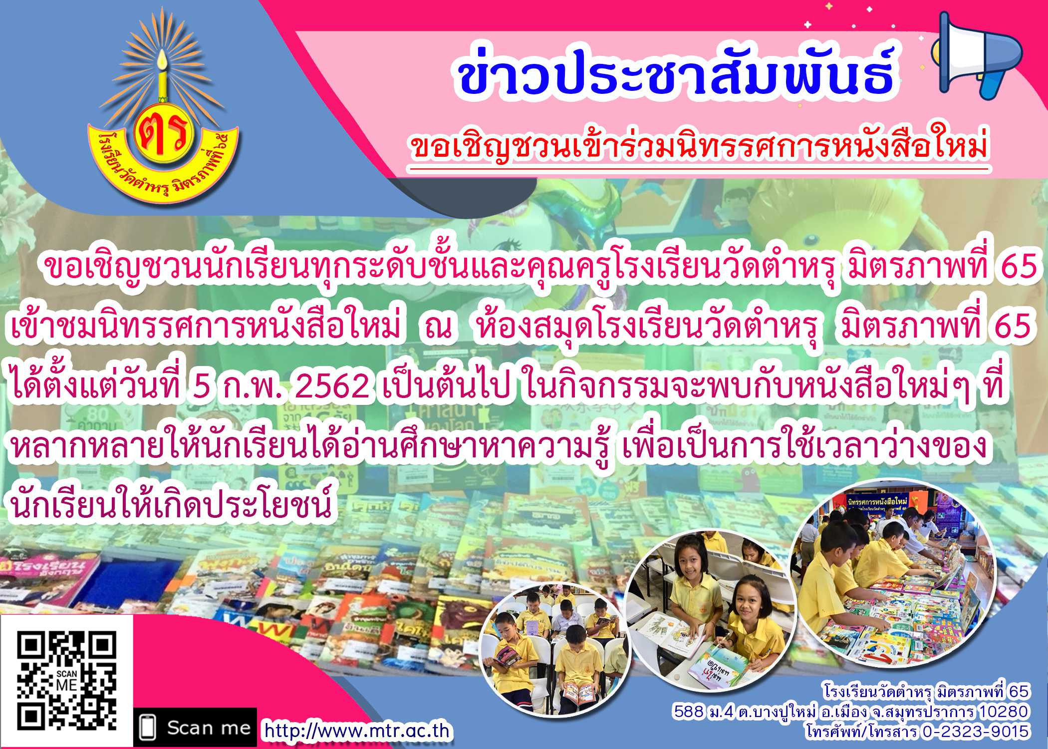 เชิญชวนนักเรียนและคุณครูเข้าร่วมงานนิทรรศการหนังสือใหม่