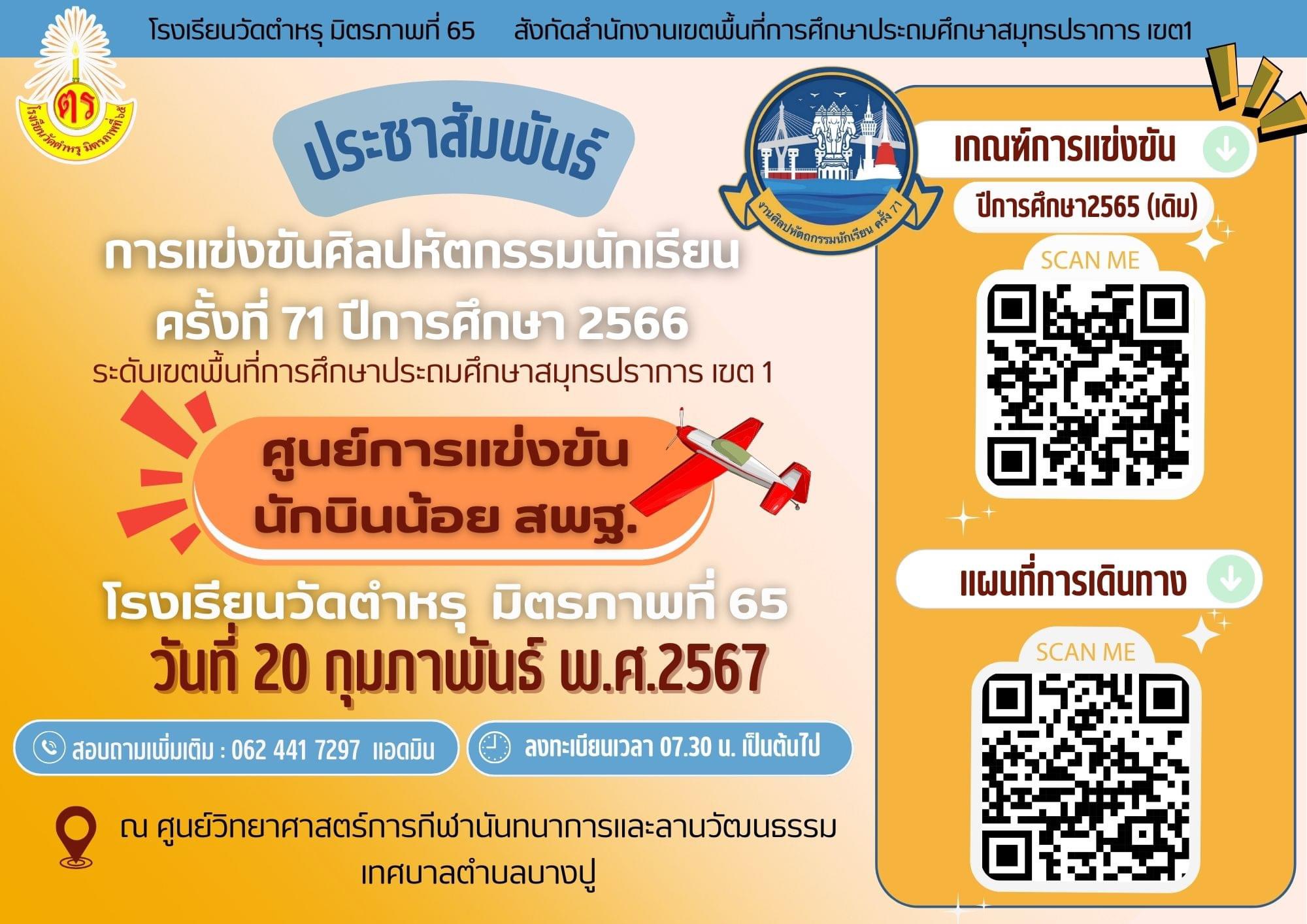 ประชาสัมพันธ์ งานศิลปหัตกรรมนักเรียน ครั้งที่ 71 ปีการศึกษา 2566ศูนย์การแข่งขันนักบินน้อย สพฐ.