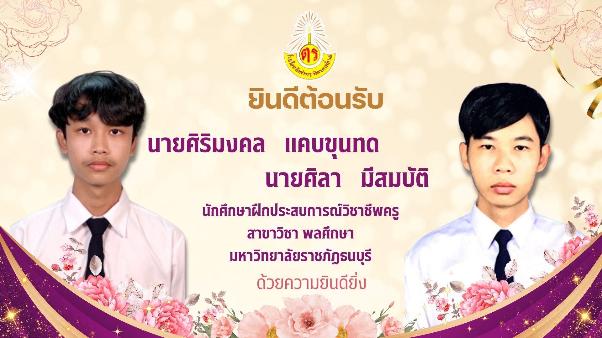 ยินดีต้อนรับนักศึกษาฝึกสอน สู่รั้วโรงเรียนวัดตำหรุ มิตรภาพที่ 65 ด้วยความยินดียิ่ง