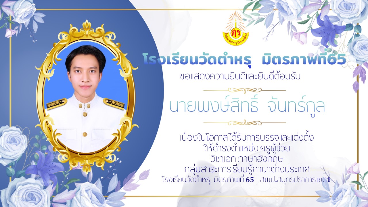 ขอแสดงความยินดีและยินดีต้อนรับ นายพงษ์สิทธิ์ จันทร์กูล เนื่องในโอกาสได้รับการบรรจุและแต่งตั้ง ให้ดำรงตำแหน่ง ครูผู้ช่วย