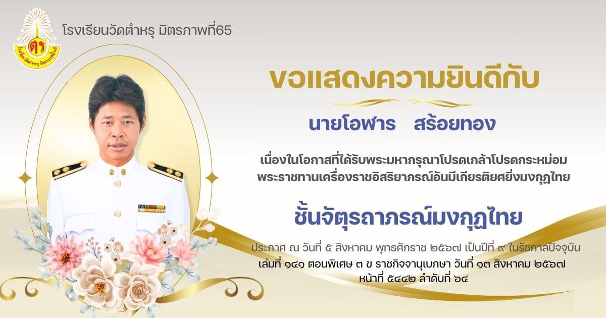 ขอแสดงความยินดีกับ คุณครูโอฬาร สร้อยทอง