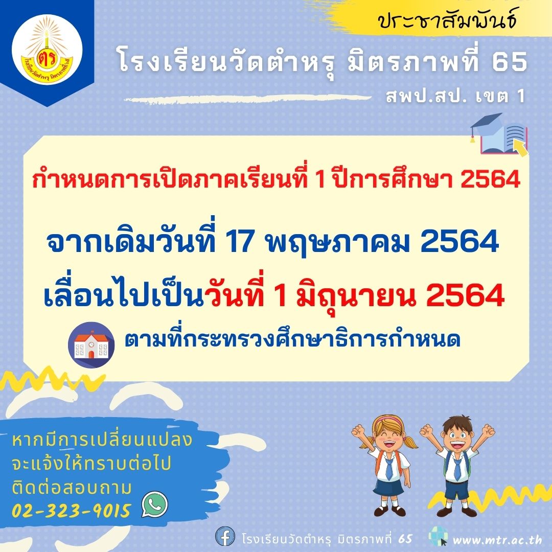 กำหนดการเลื่อนการเปิดเรียน ภาคเรียนที่ 1 ปีการศึกษา 2564