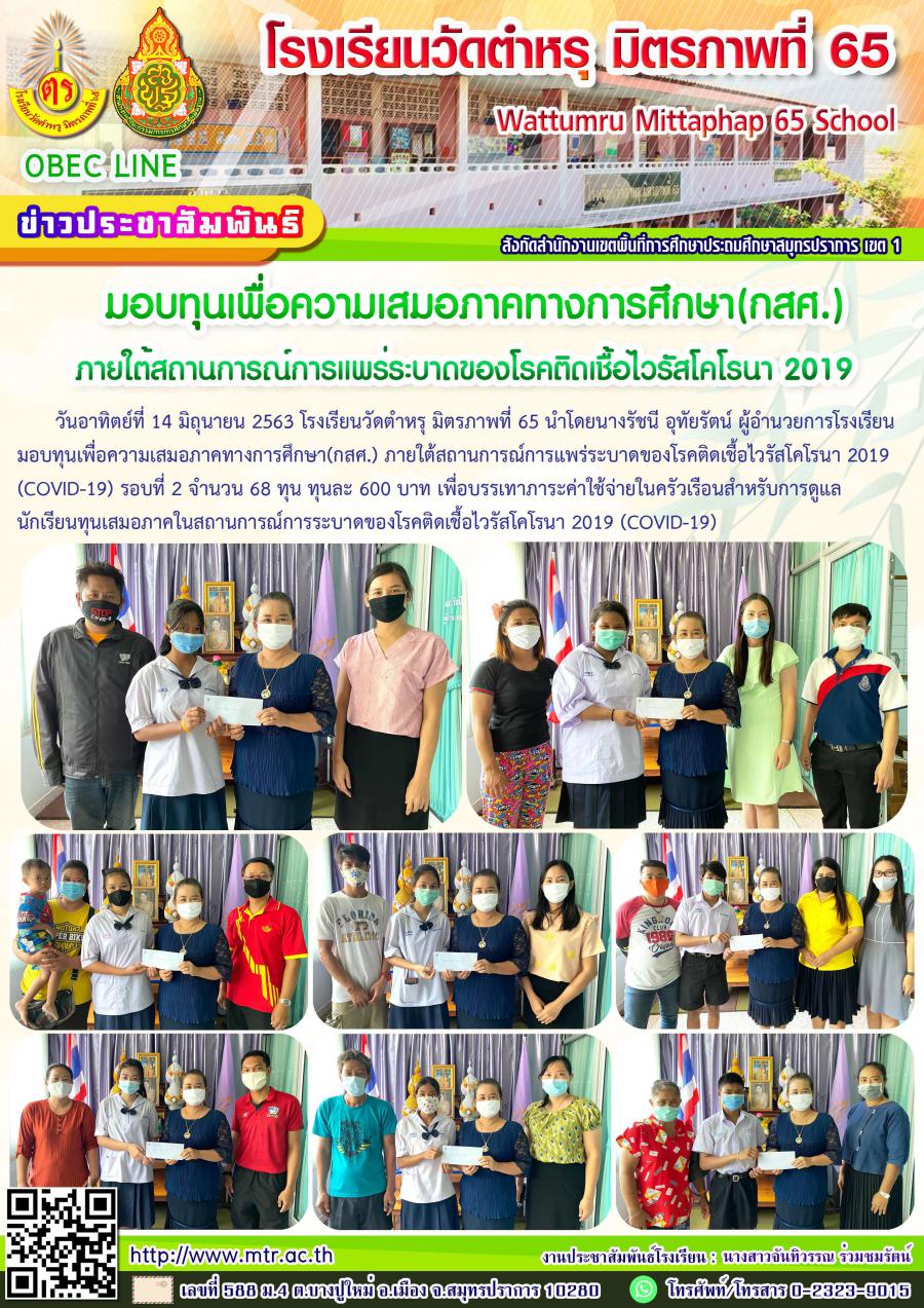 มอบทุนเพื่อความเสมอภาคทางการศึกษา(กสศ.) ภายใต้สถานการณ์การแพร่ระบาดของโรคติดเชื้อไวรัสโคโรนา 2019