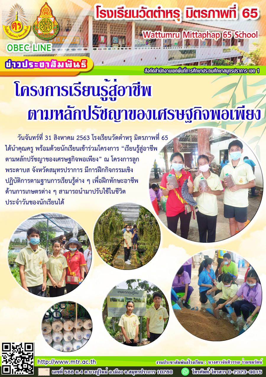 โครงการ ?เรียนรู้สู่อาชีพ ตามหลักปรัชญาของเศรษฐกิจพอเพียง?