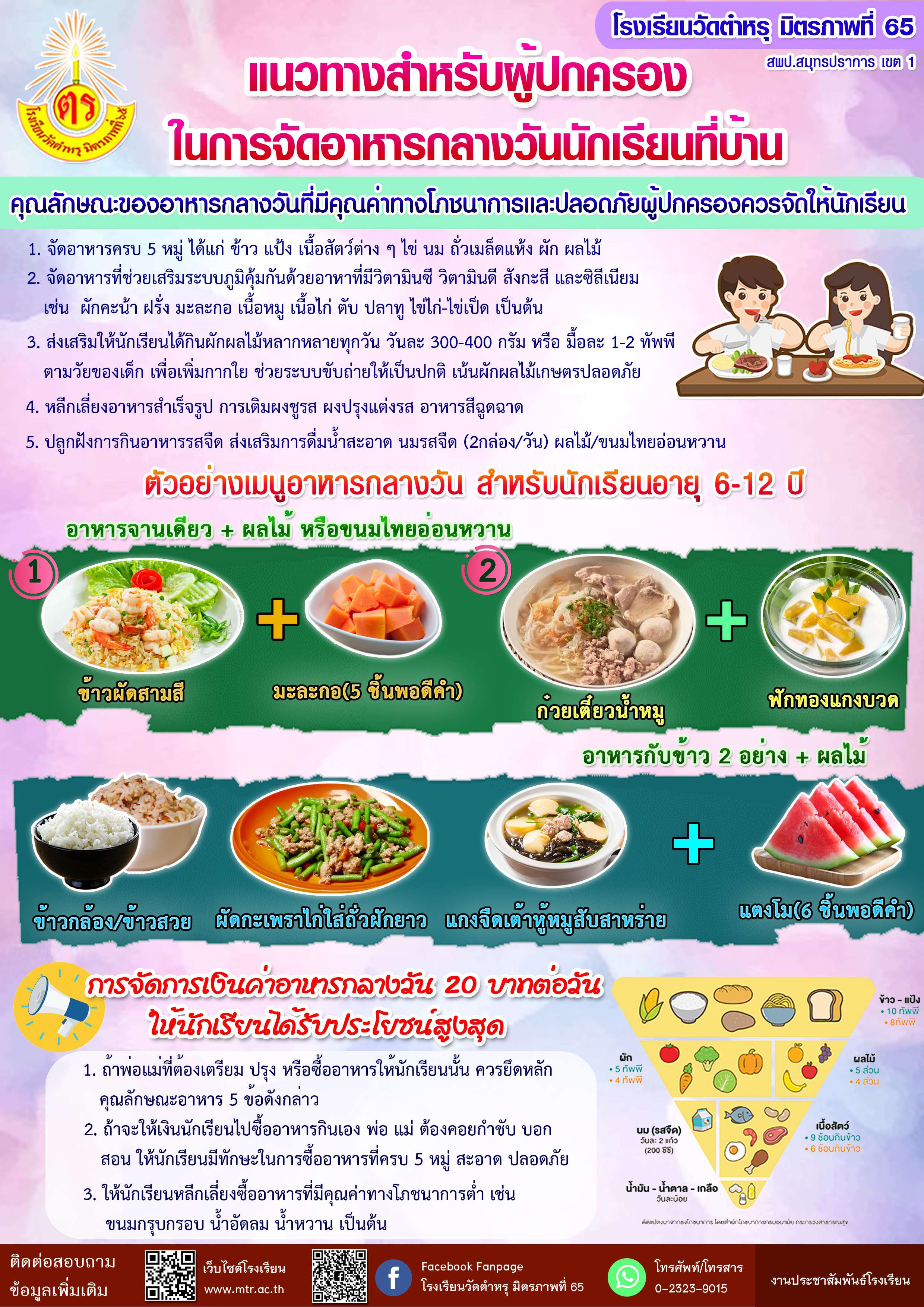 ประชาสัมพันธ์ผู้ปกครองนักเรียนระดับชั้นอนุบาล-ประถมศึกษาปีที่ 6 เรื่อง แนวทางสำหรับผู้ปกครองในการจัดอาหารกลางวันนักเรียนที่บ้าน