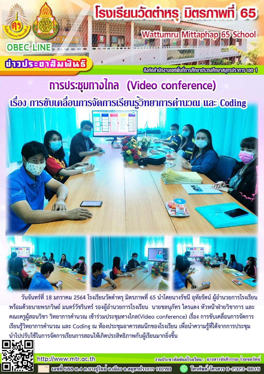 เข้าร่วมประชุมทางไกล(Video conference) เรื่อง การขับเคลื่อนการจัดการเรียนรู้วิทยาการคำนวณ และ Coding