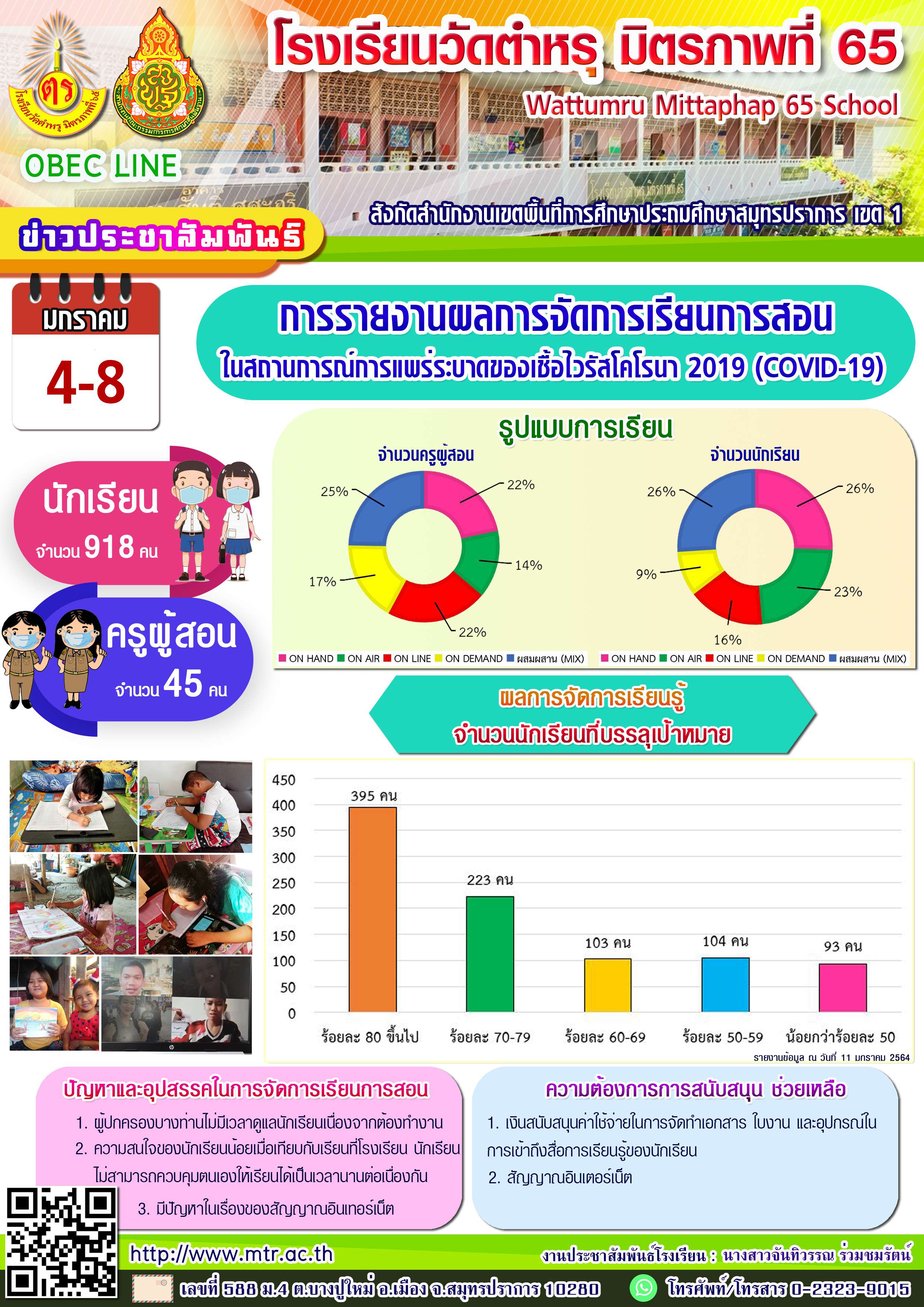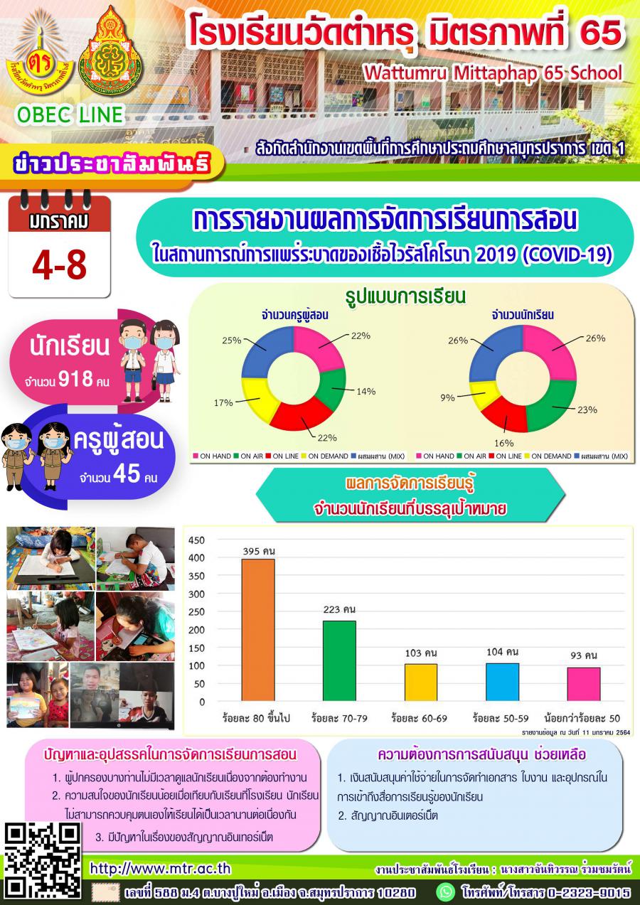 การรายงานผลการจัดการเรียนการสอนในสถานการณ์การแพร่ระบาดของเชื้อไวรัสโคโรนา 2019 (COVID-19) วันที่ 4-8 มกราคม 2564