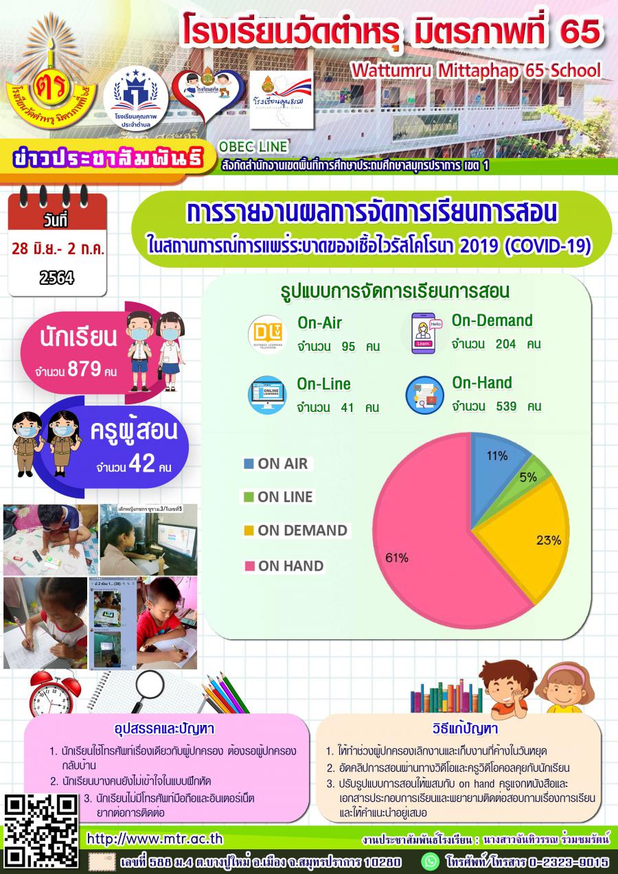 การรายงานผลการจัดการเรียนการสอน ในสถานการณ์การแพร่ระบาดของเชื้อไวรัสโคโรนา 2019 ในระหว่างวันที่ 28 มิถุนายน - 2 กรกฎาคม 2564