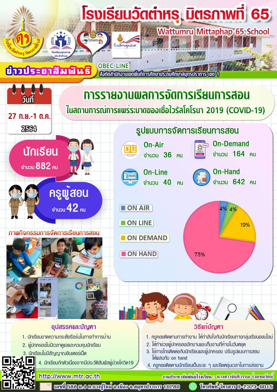 การรายงานผลการจัดการเรียนการสอน ในสถานการณ์การแพร่ระบาดของเชื้อไวรัสโคโรนา 2019 ในระหว่างวันที่ 27 กันยายน-1 ตุลาคม 2564
