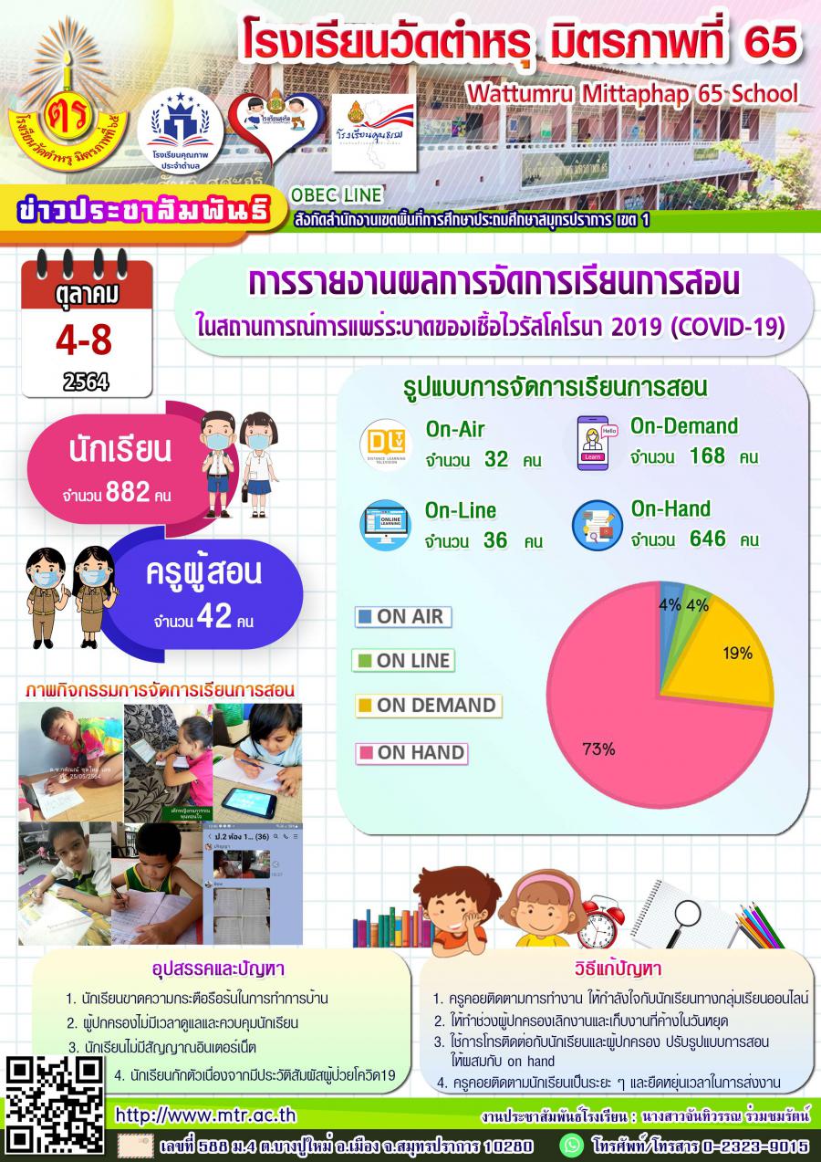 การรายงานผลการจัดการเรียนการสอน ในสถานการณ์การแพร่ระบาดของเชื้อไวรัสโคโรนา 2019 ในระหว่างวันที่ 4-8 ตุลาคม 2564